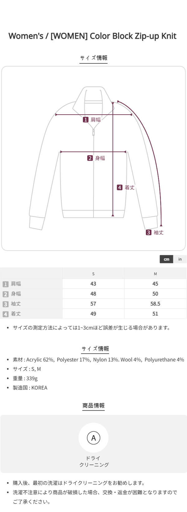 [WOMEN] Color Block Zip-up Knit CHARCOAL