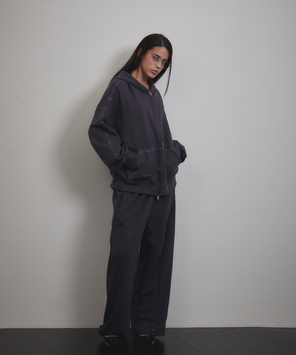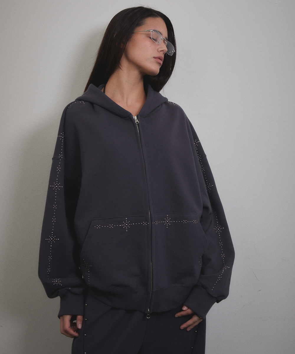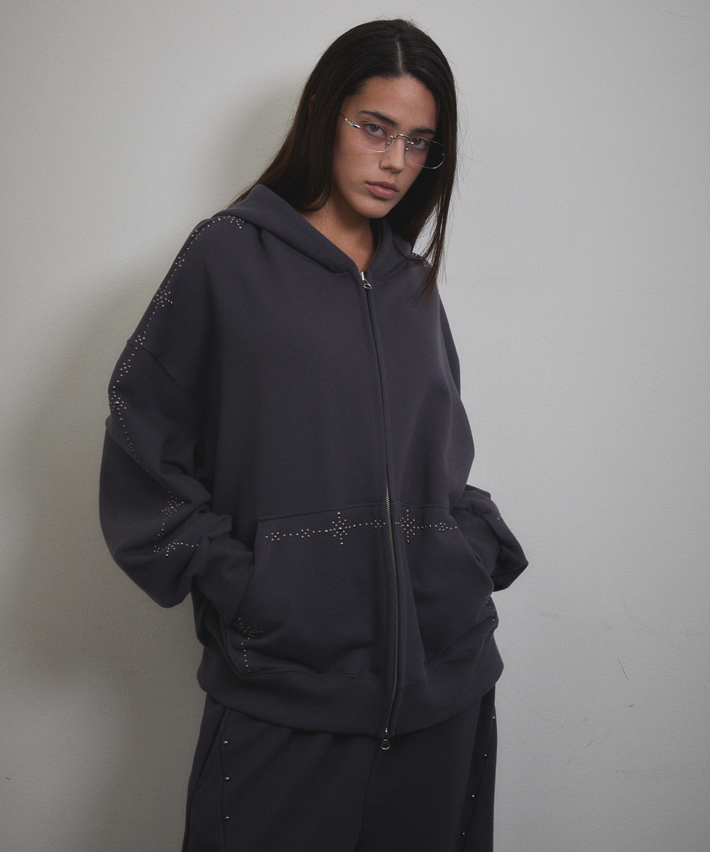 Stud Line Hood Zip-up (CHARCOAL)