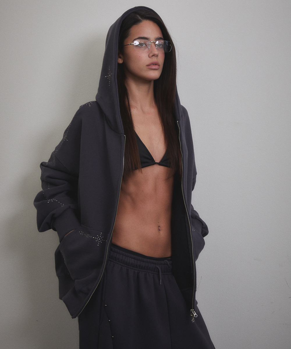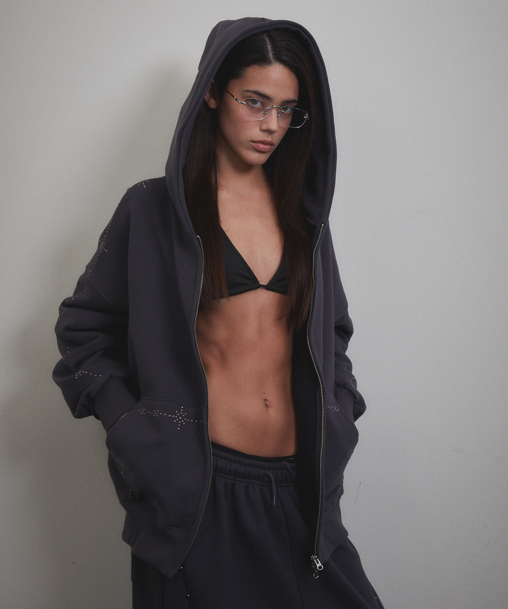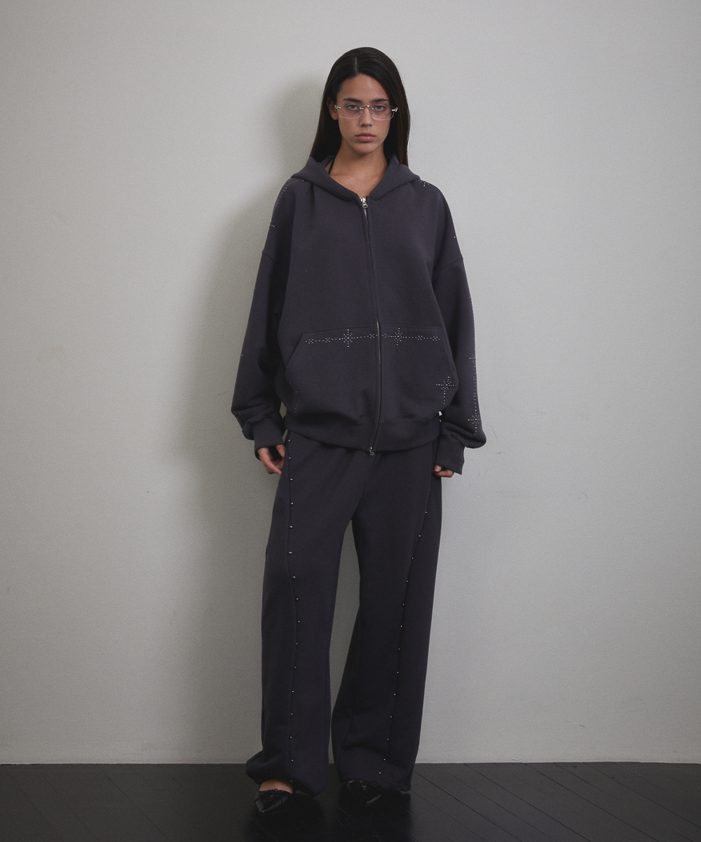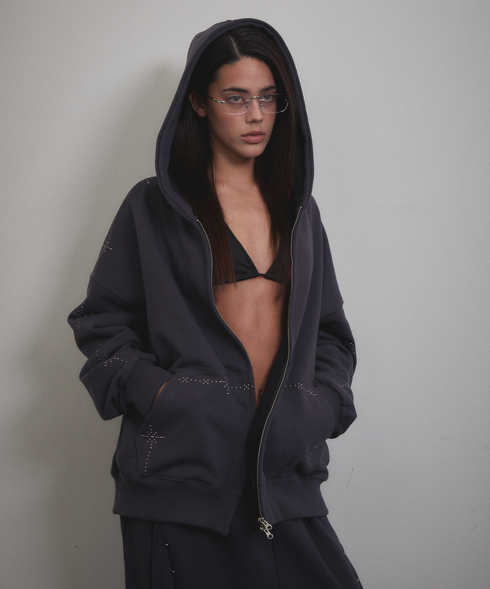 Stud Line Hood Zip-up (CHARCOAL)
