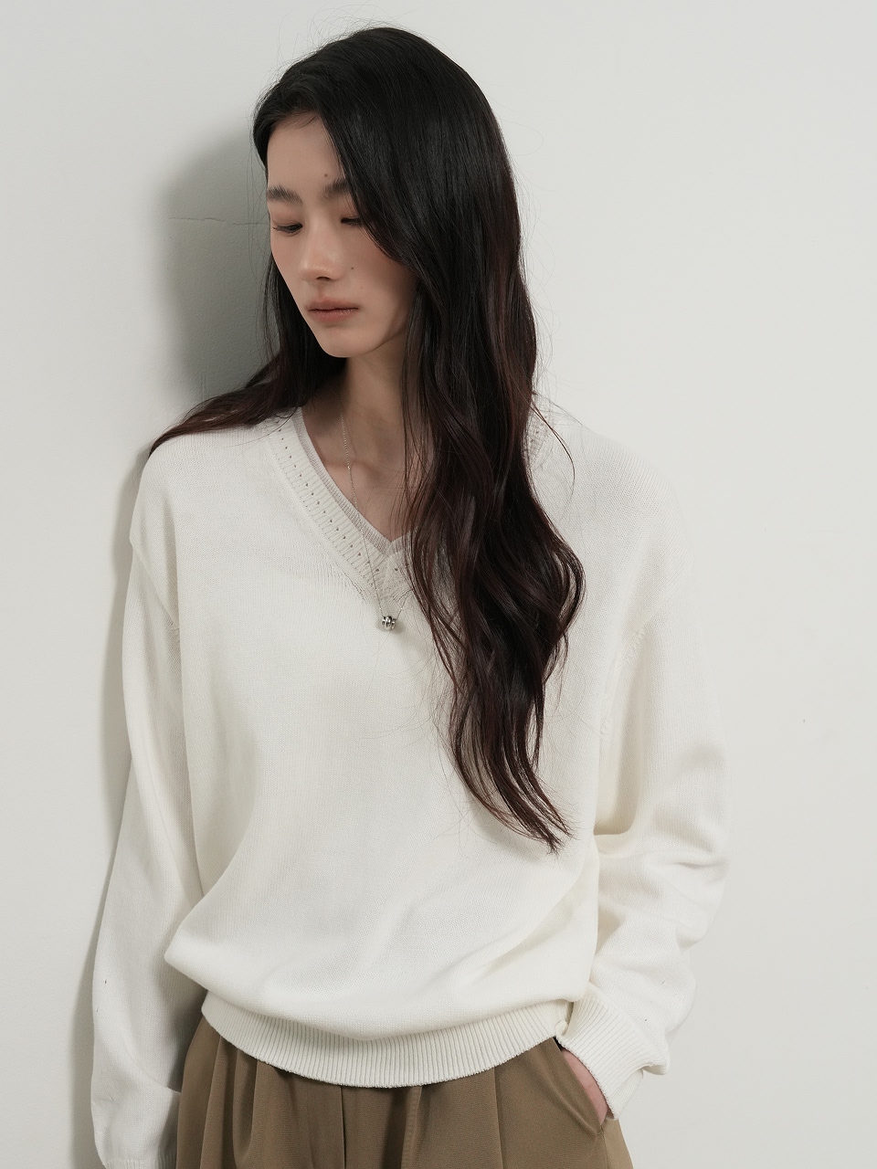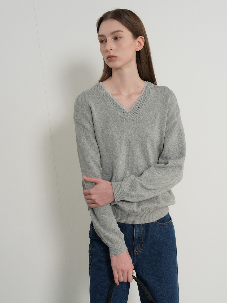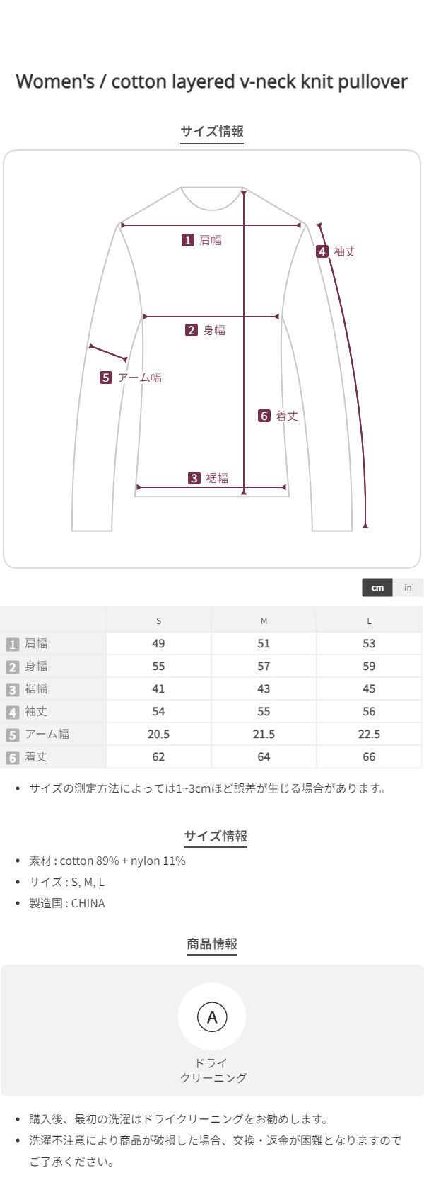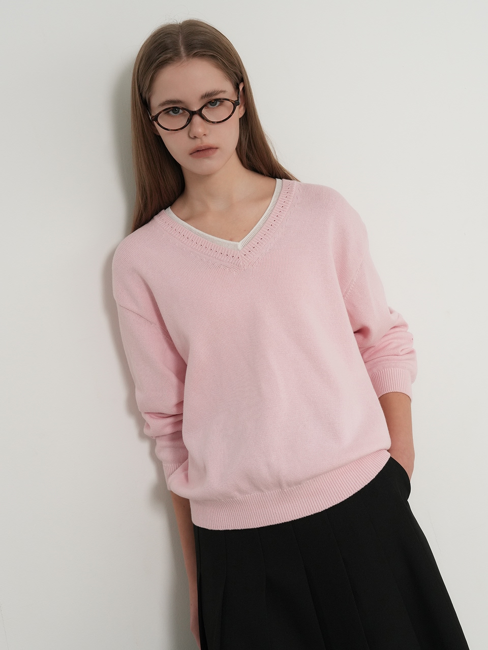 cotton layered v-neck knit pullover