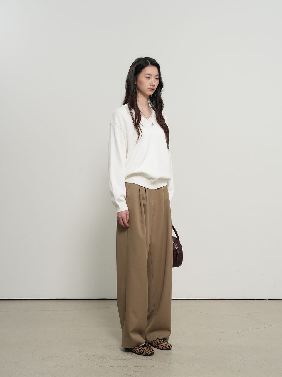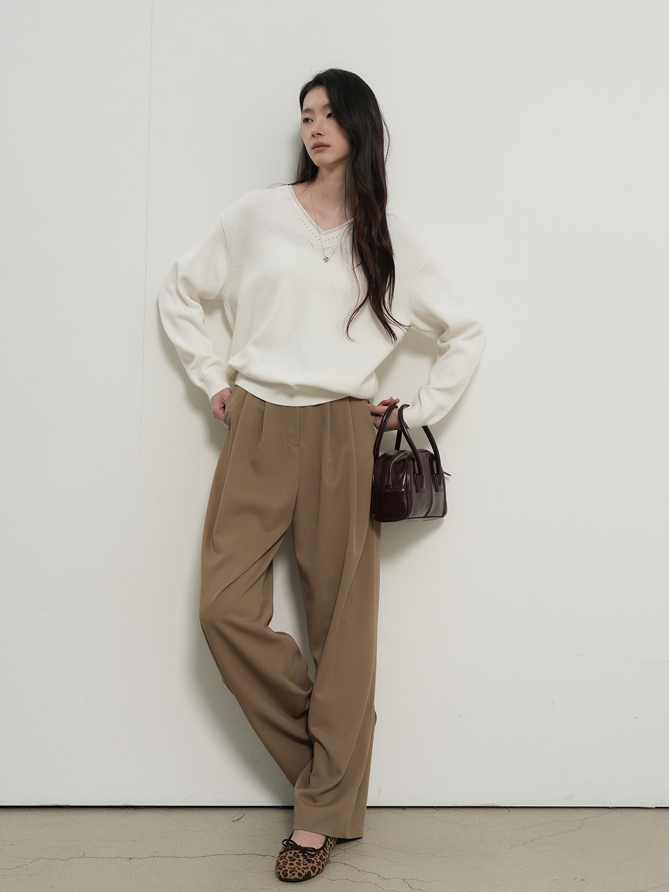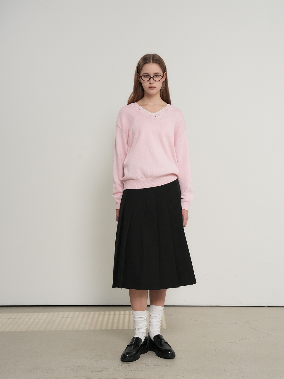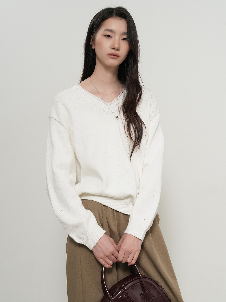 cotton layered v-neck knit pullover