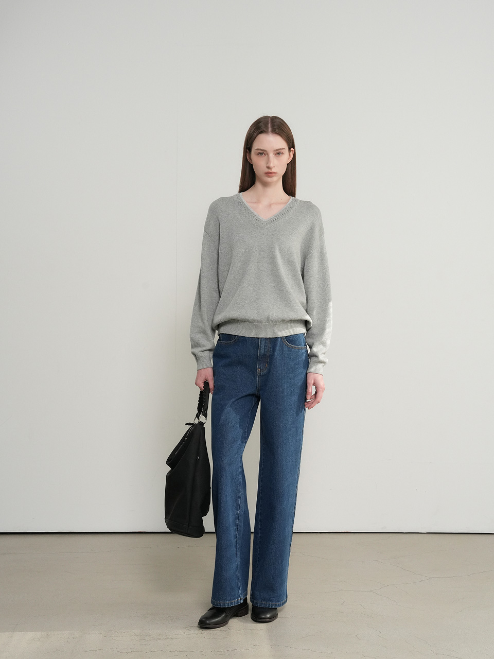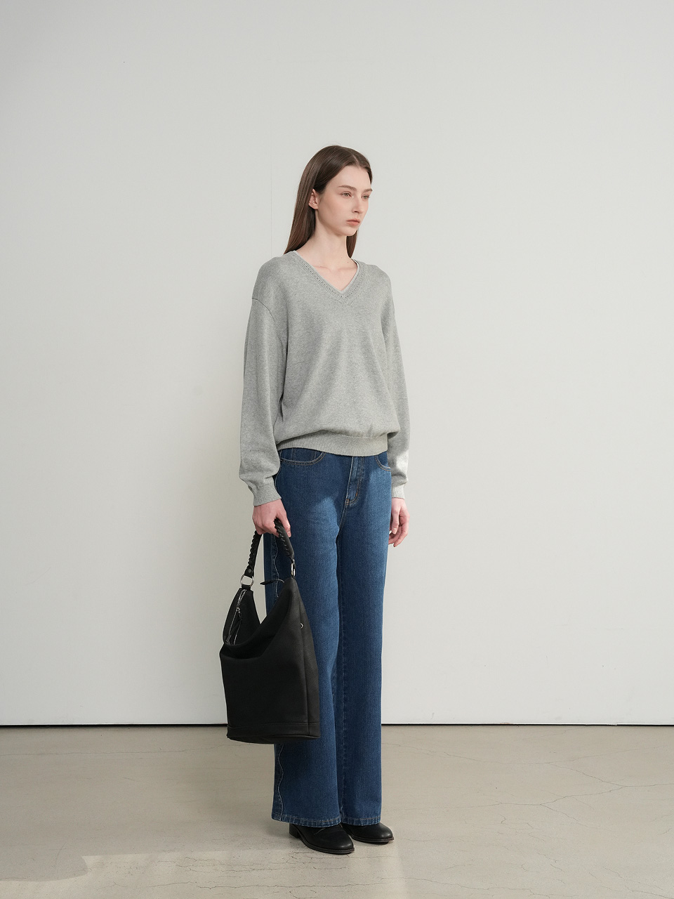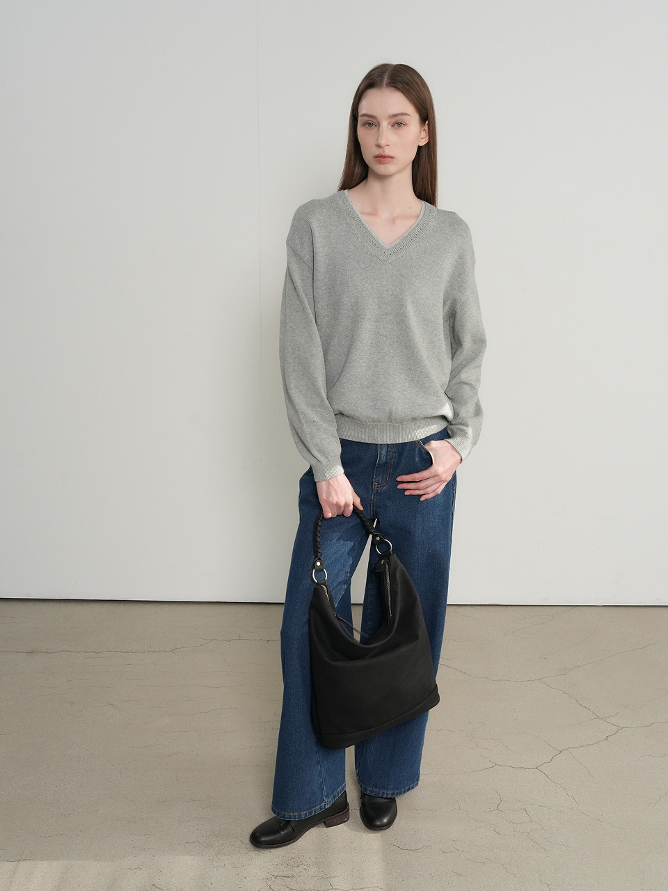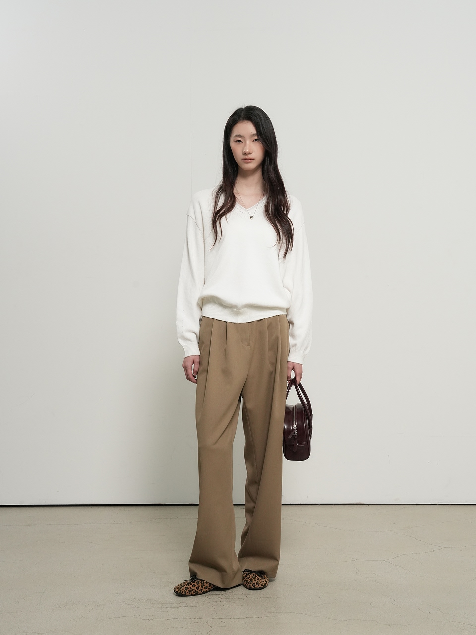 cotton layered v-neck knit pullover