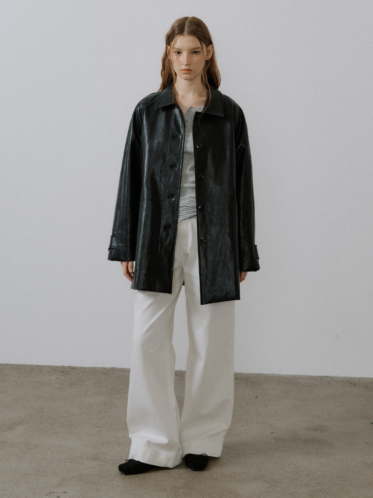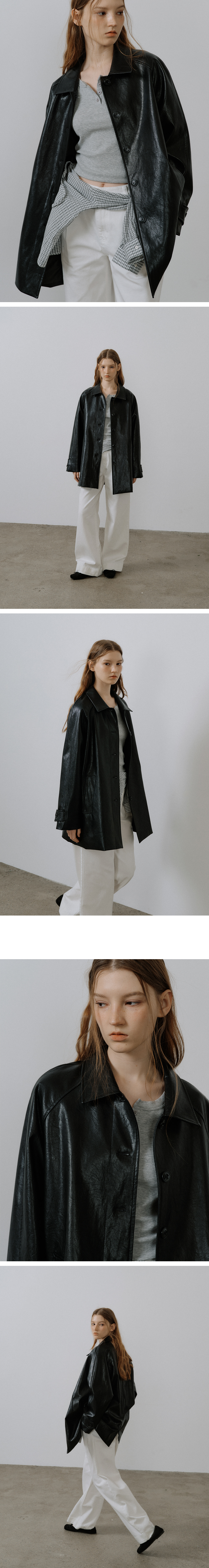 Raglan leather half coat [FRSP05CT02]_Black