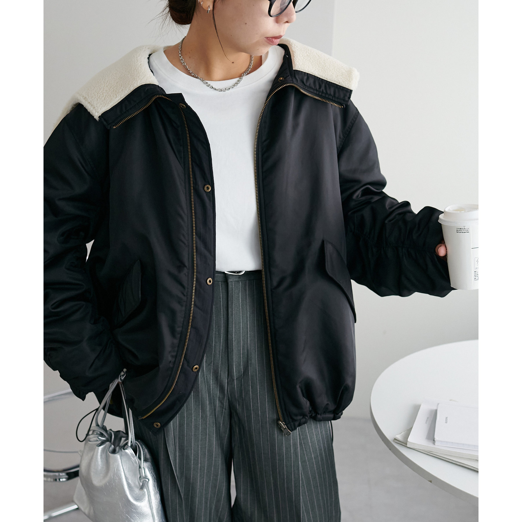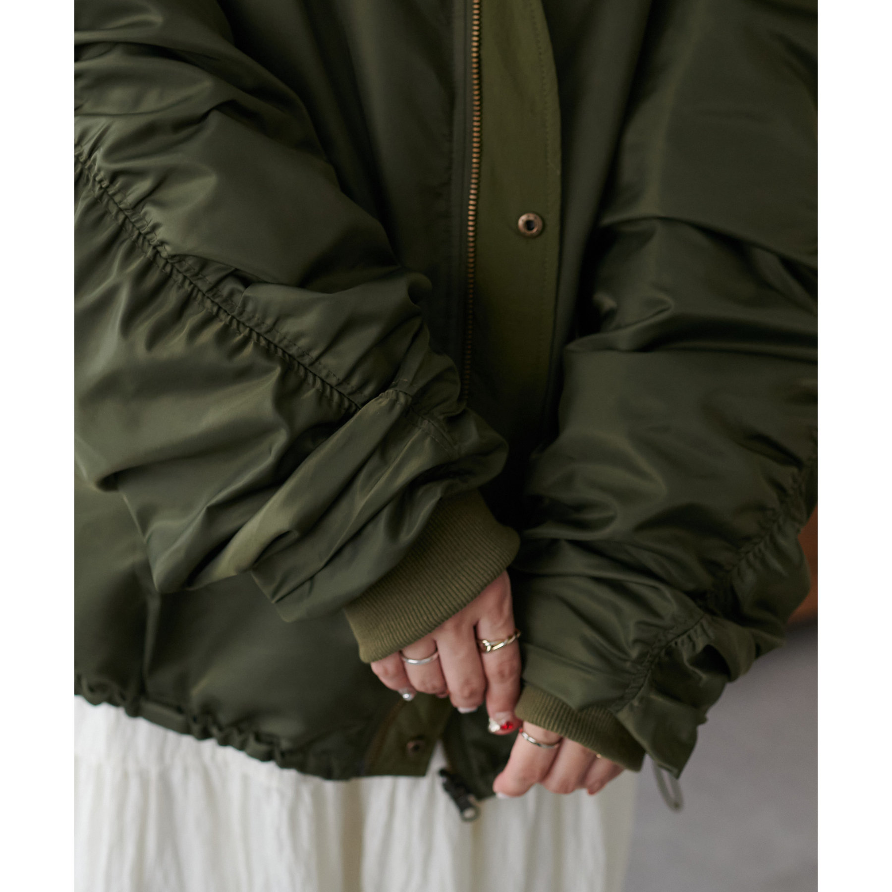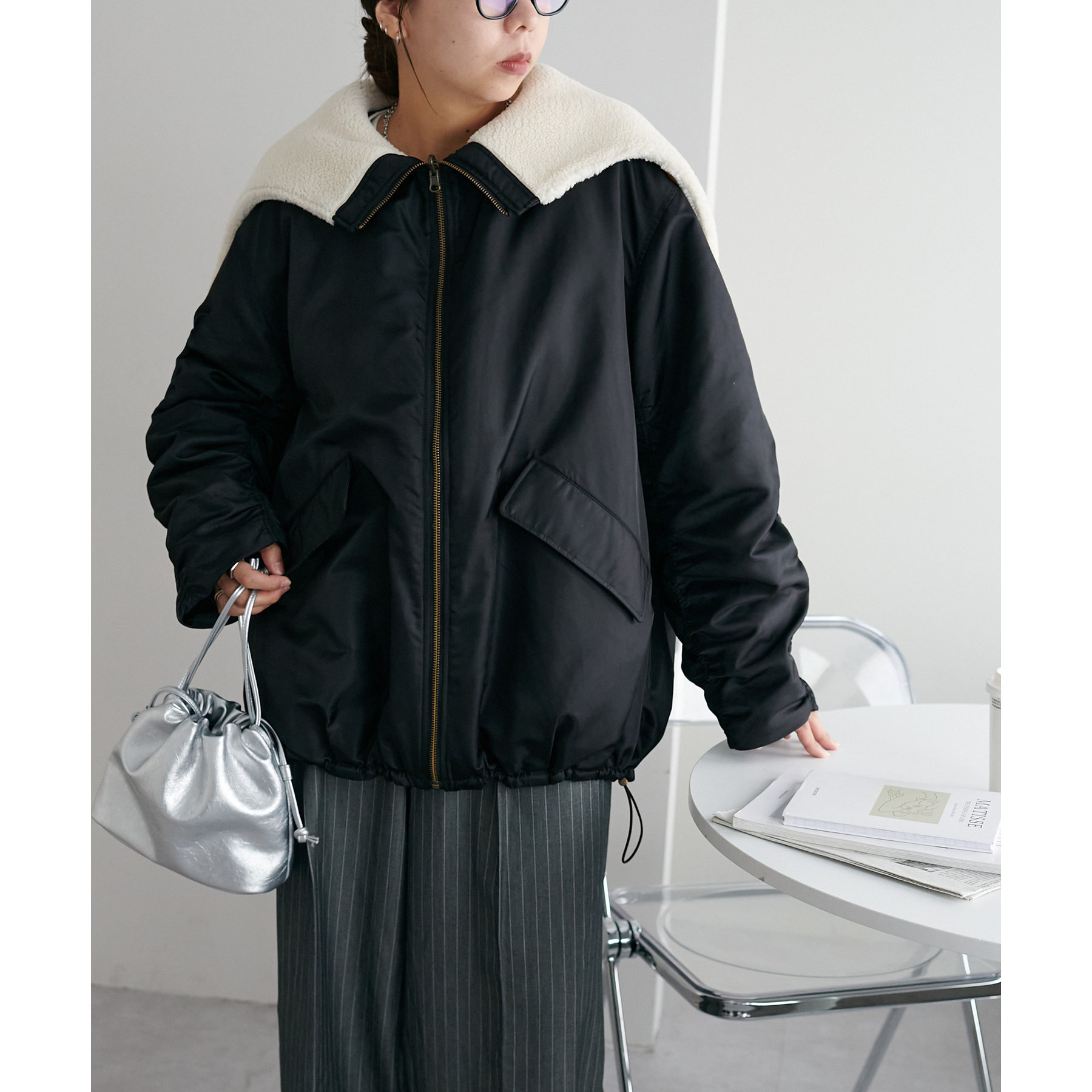 オーバーサイズですが、軽い着心地なのでリラックスして着用できます◎ダブルジップで抜け感が足せるので、低身長も着られてる感を抑えて楽しめます。