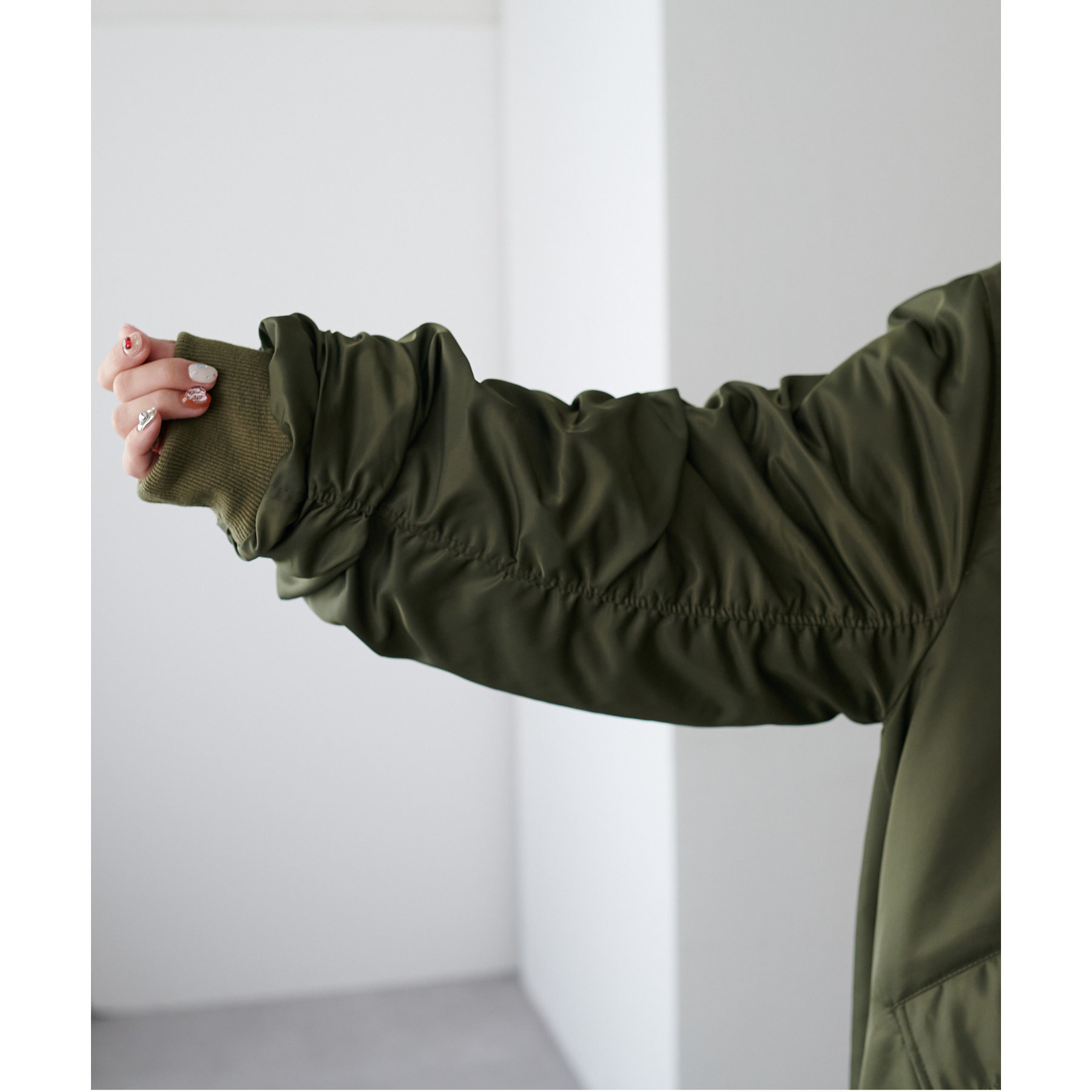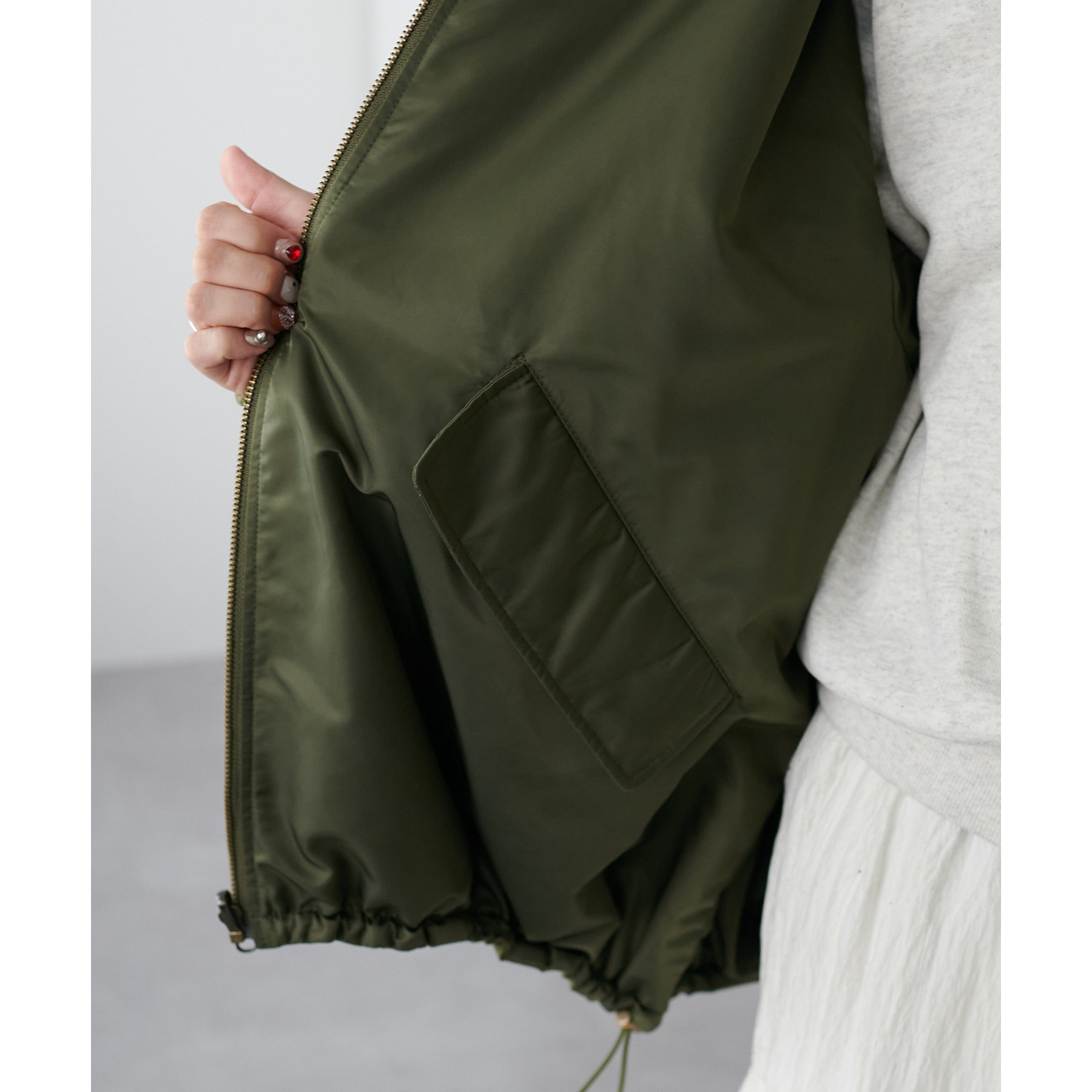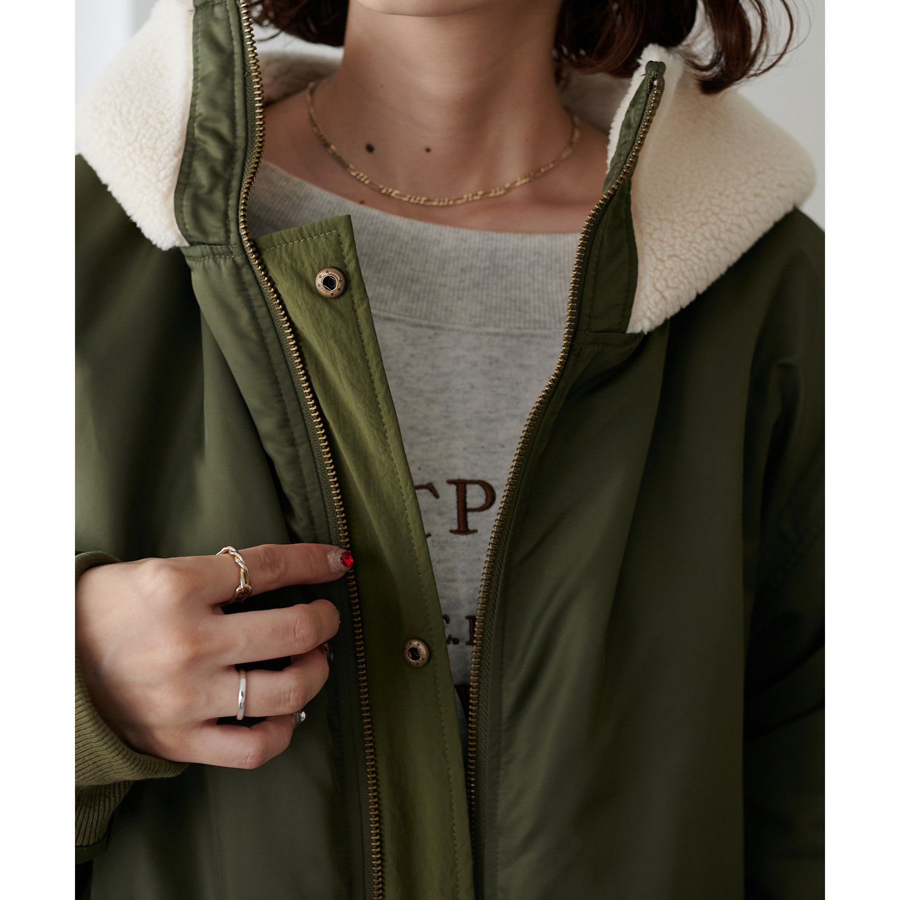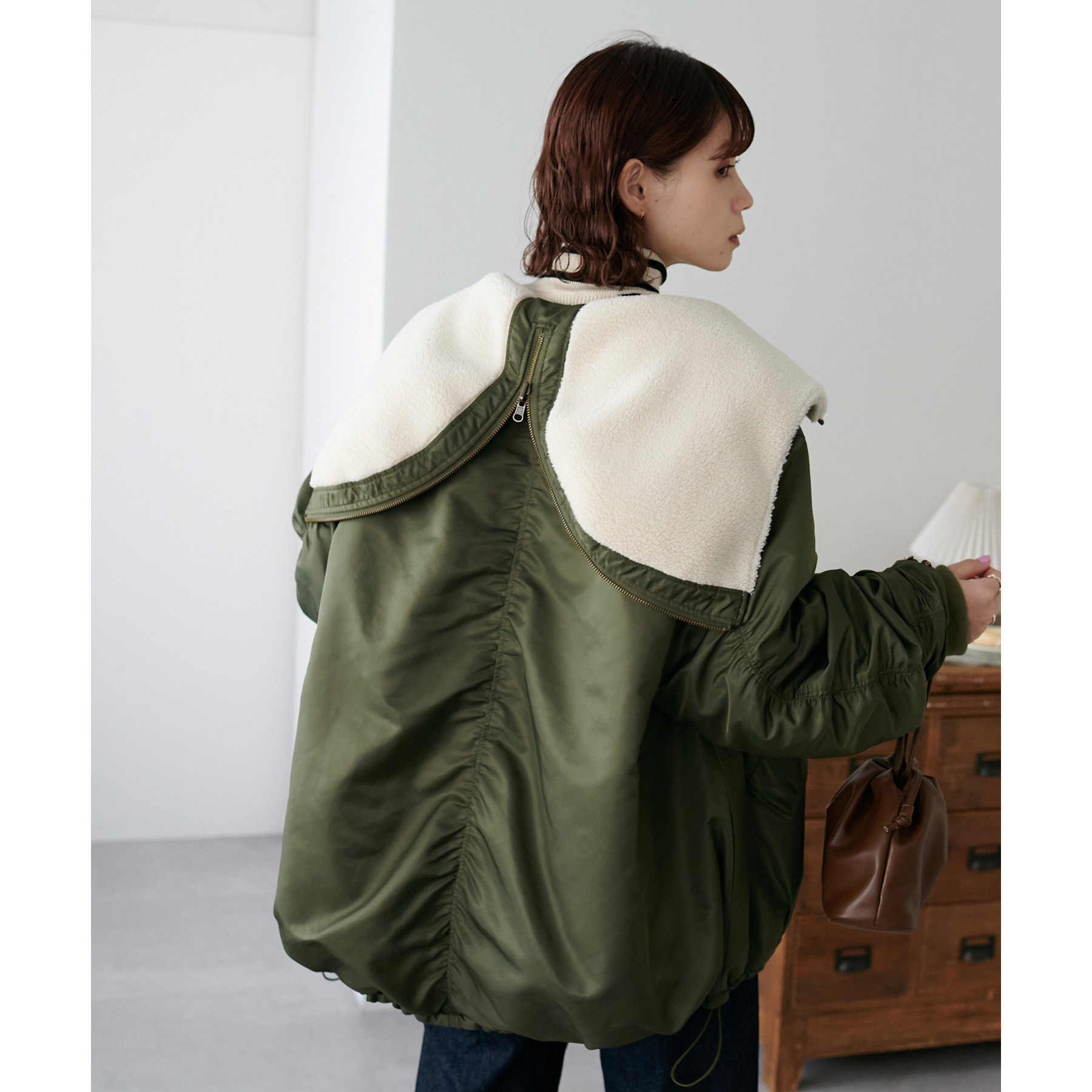 オーバーサイズですが、軽い着心地なのでリラックスして着用できます◎ダブルジップで抜け感が足せるので、低身長も着られてる感を抑えて楽しめます。