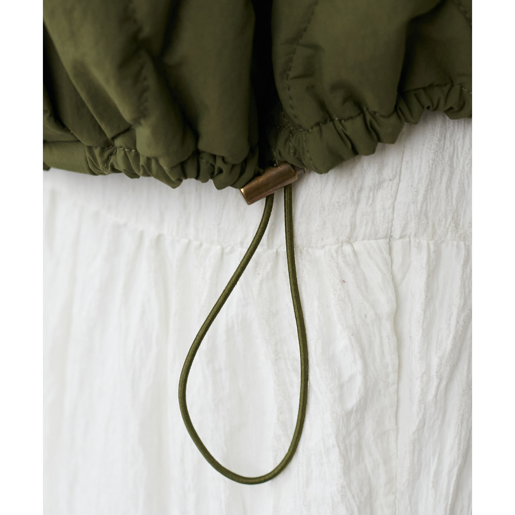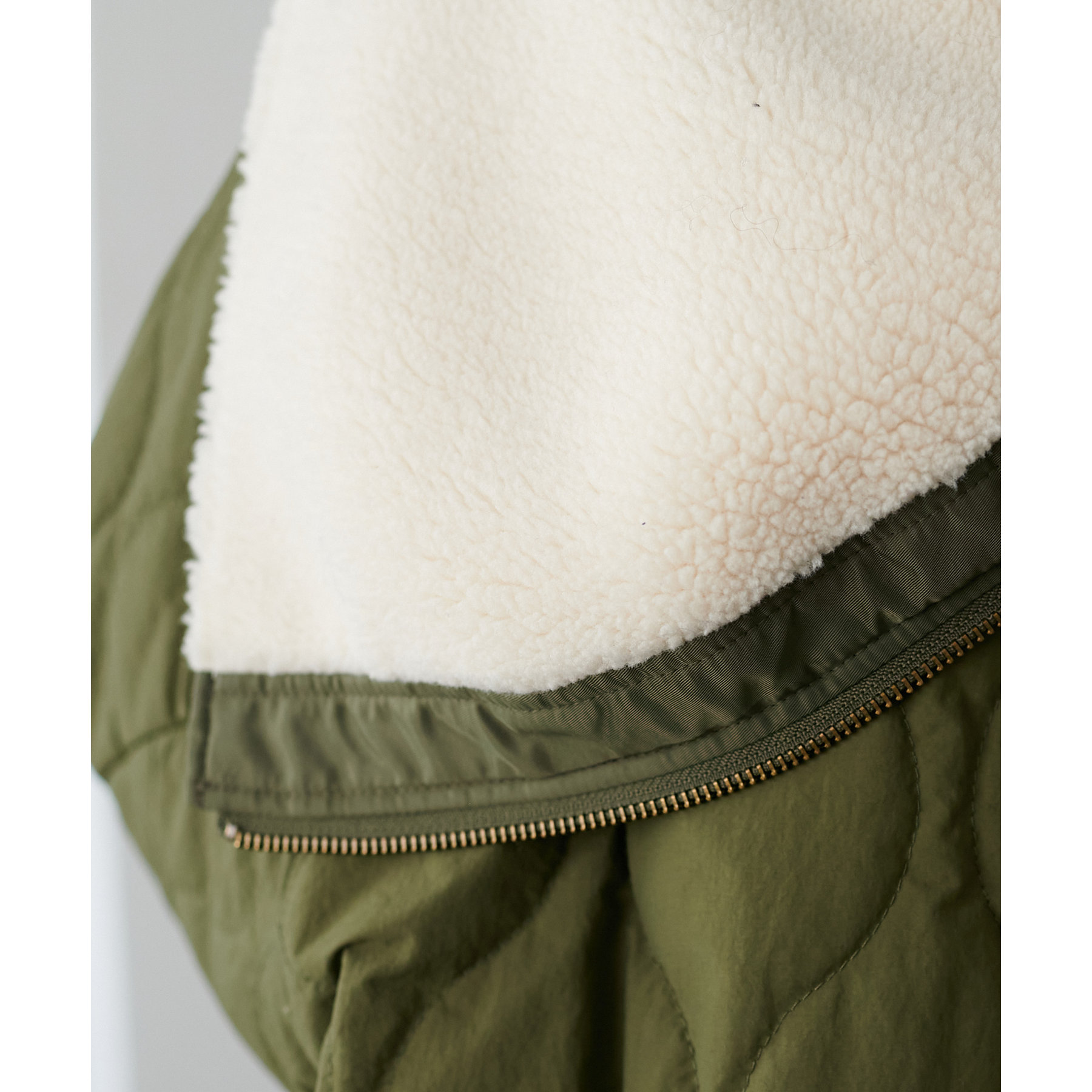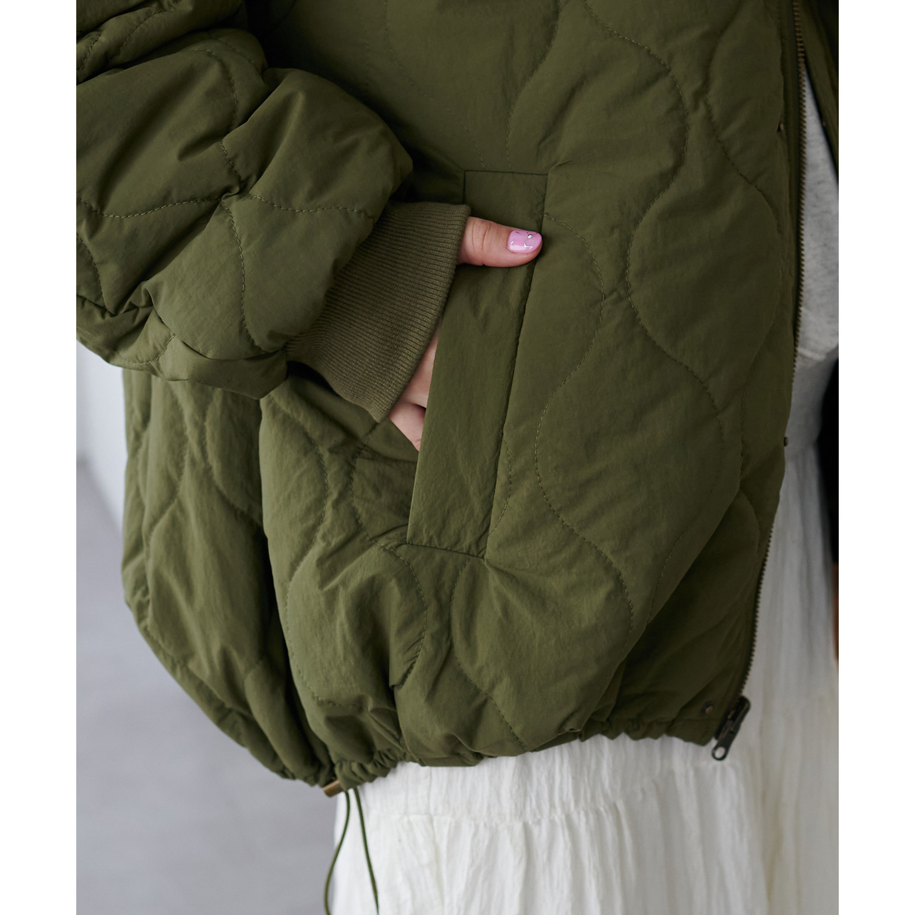 カジュアル見えを楽しめるキルティングと程よく光沢感があのある生地。