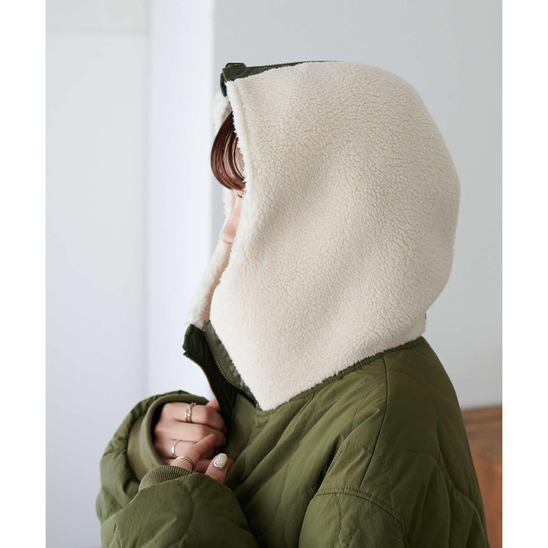 フードはボアを使用し暖かく着ていただけます。