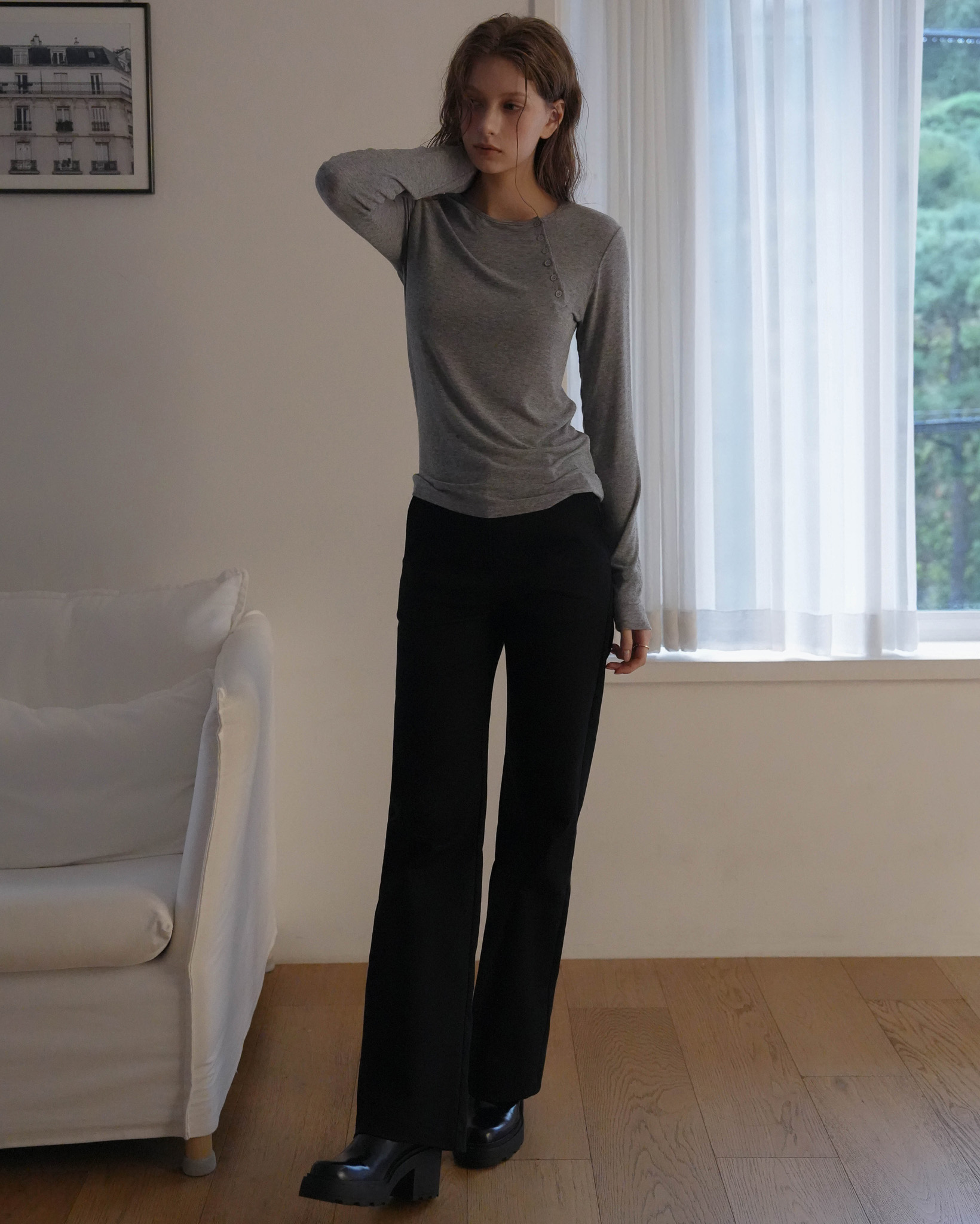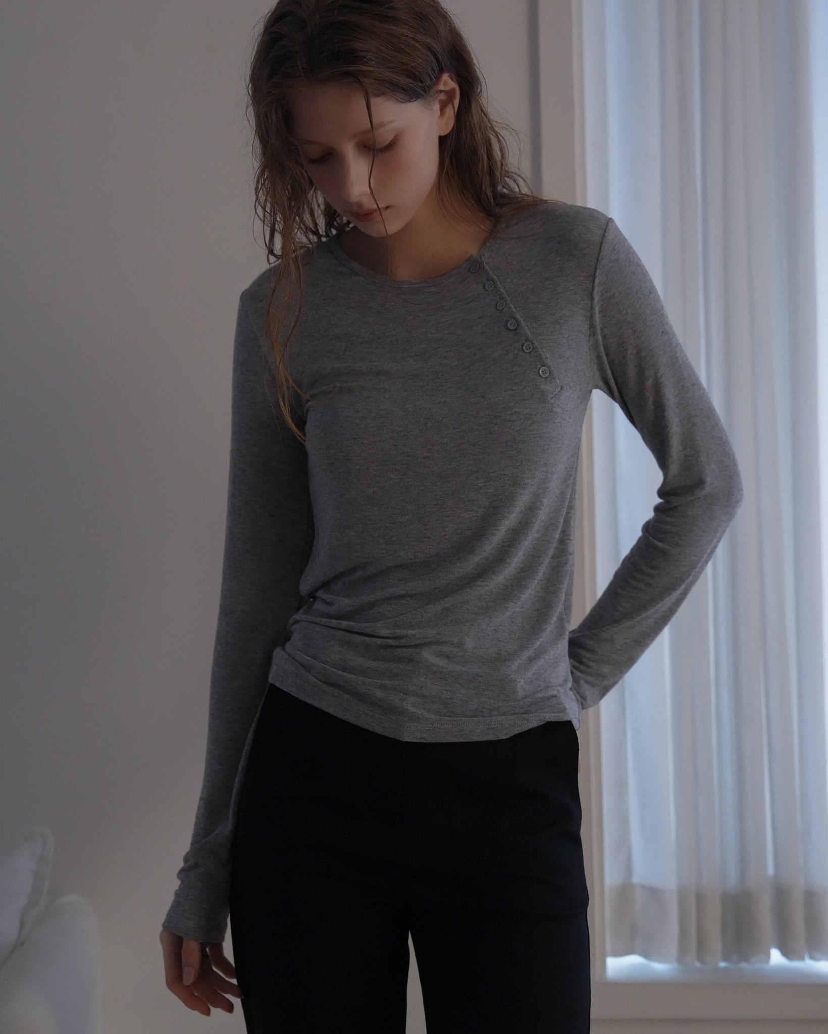 Side Button Long Sleeve [Charcoal]