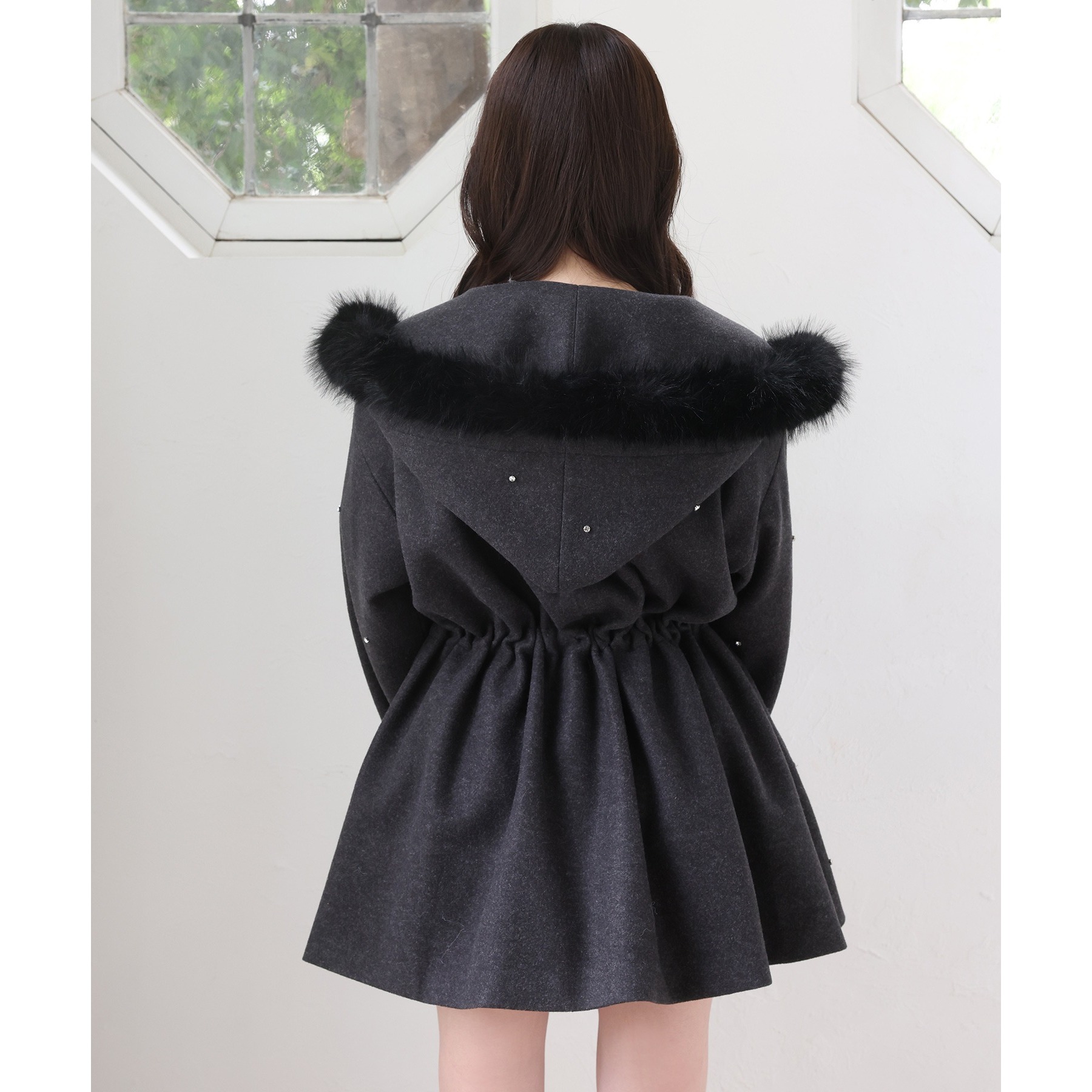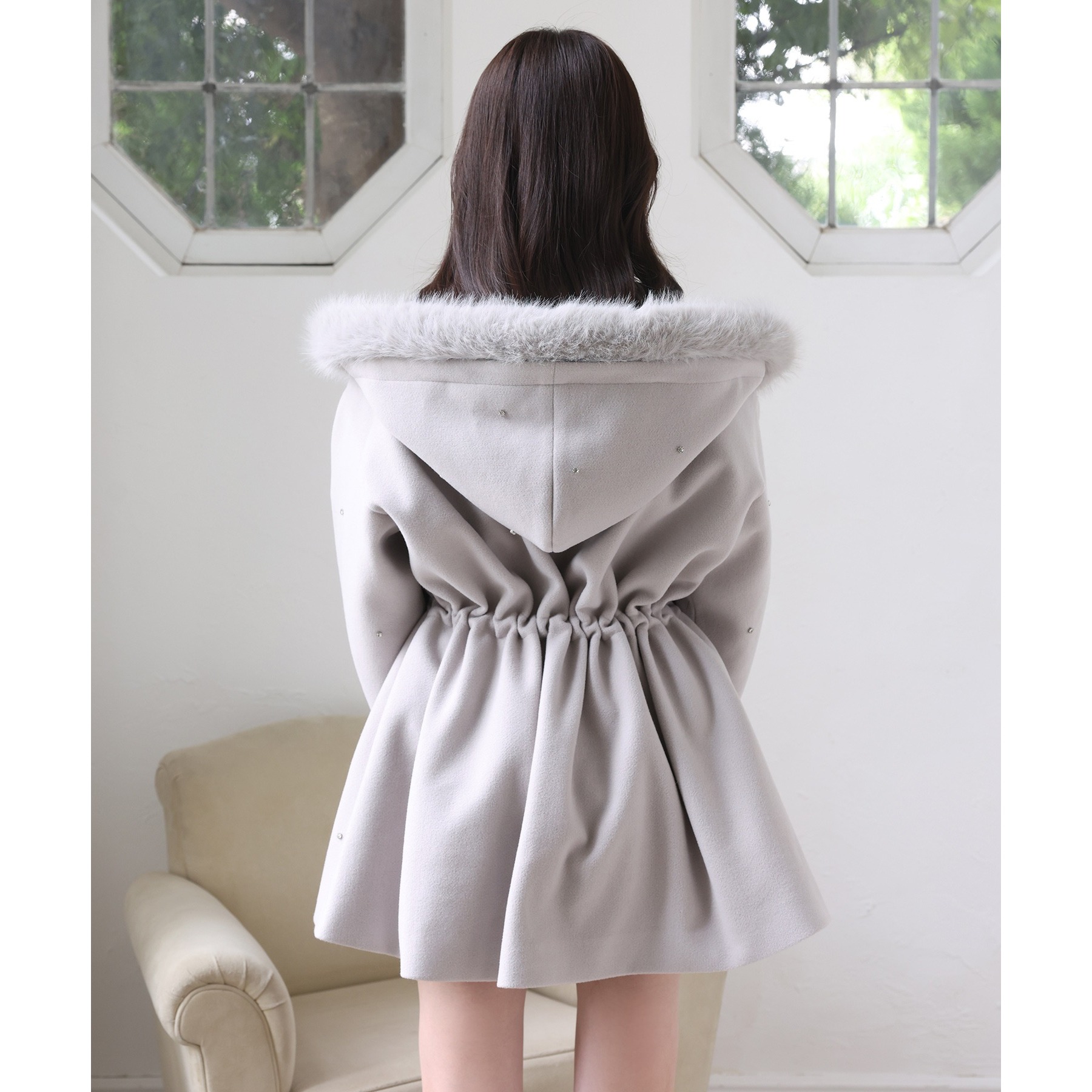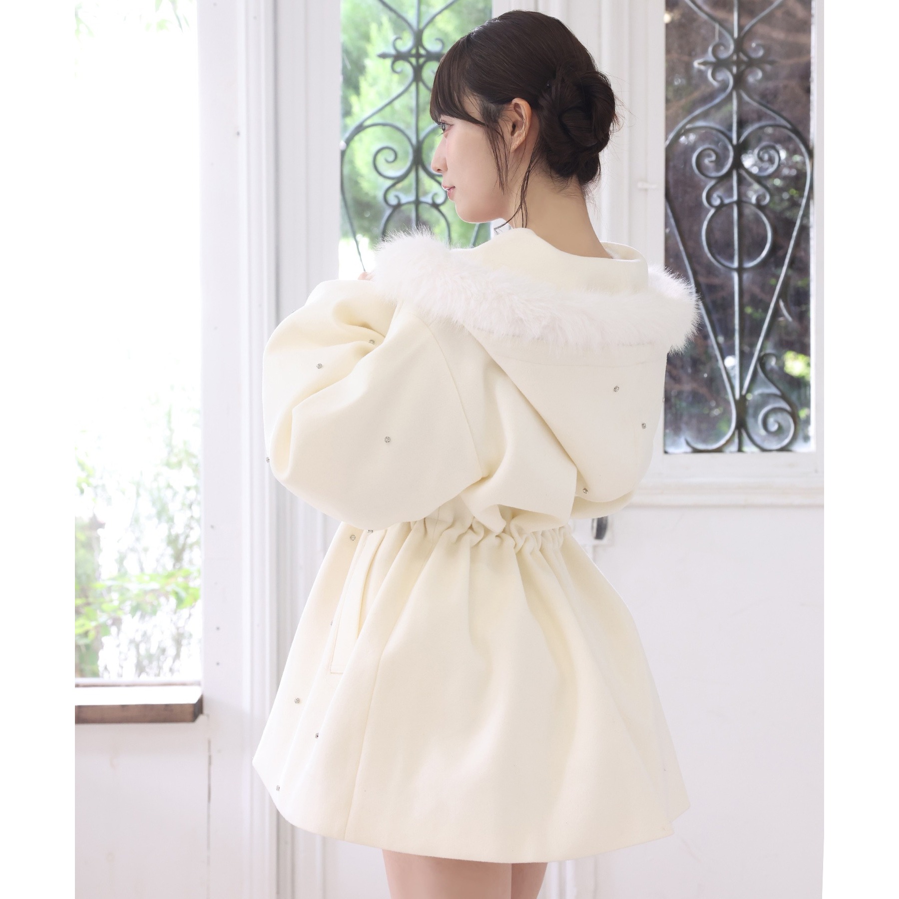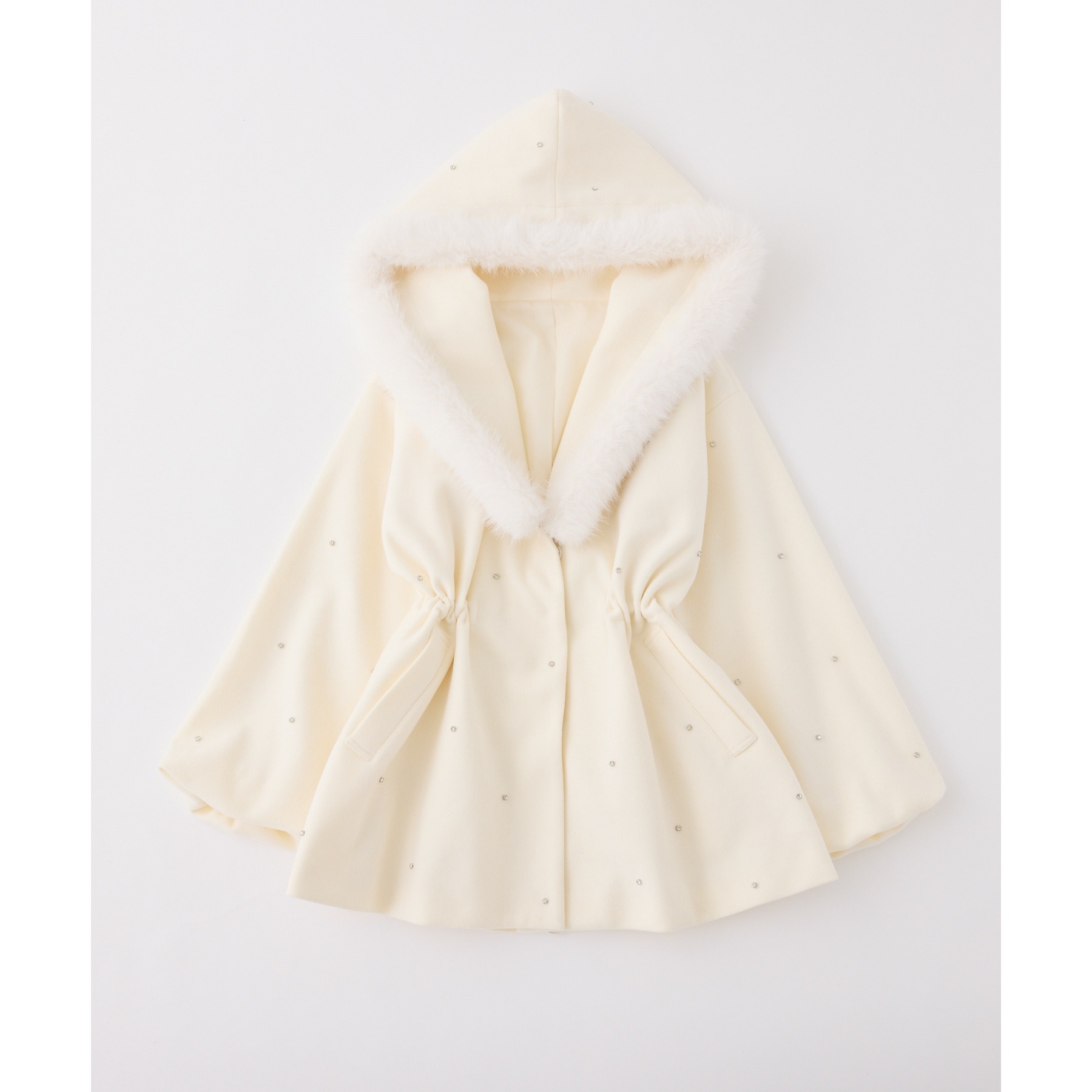 フードにはふんわりファー付きで、顔まわりを華やかに演出。