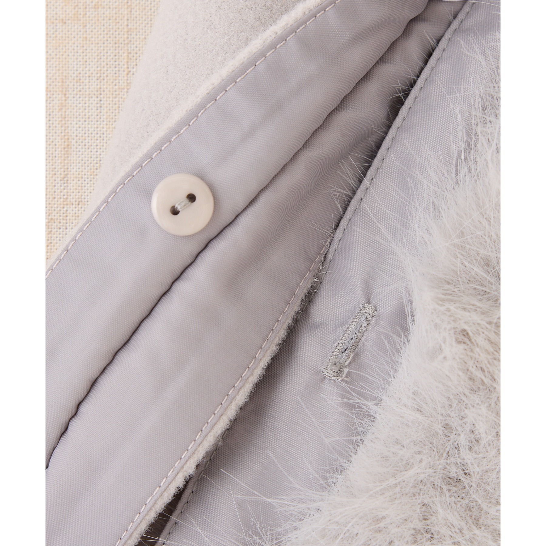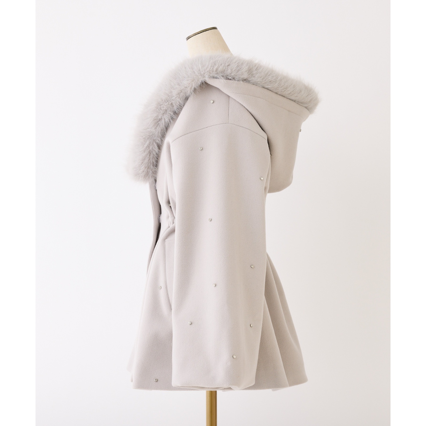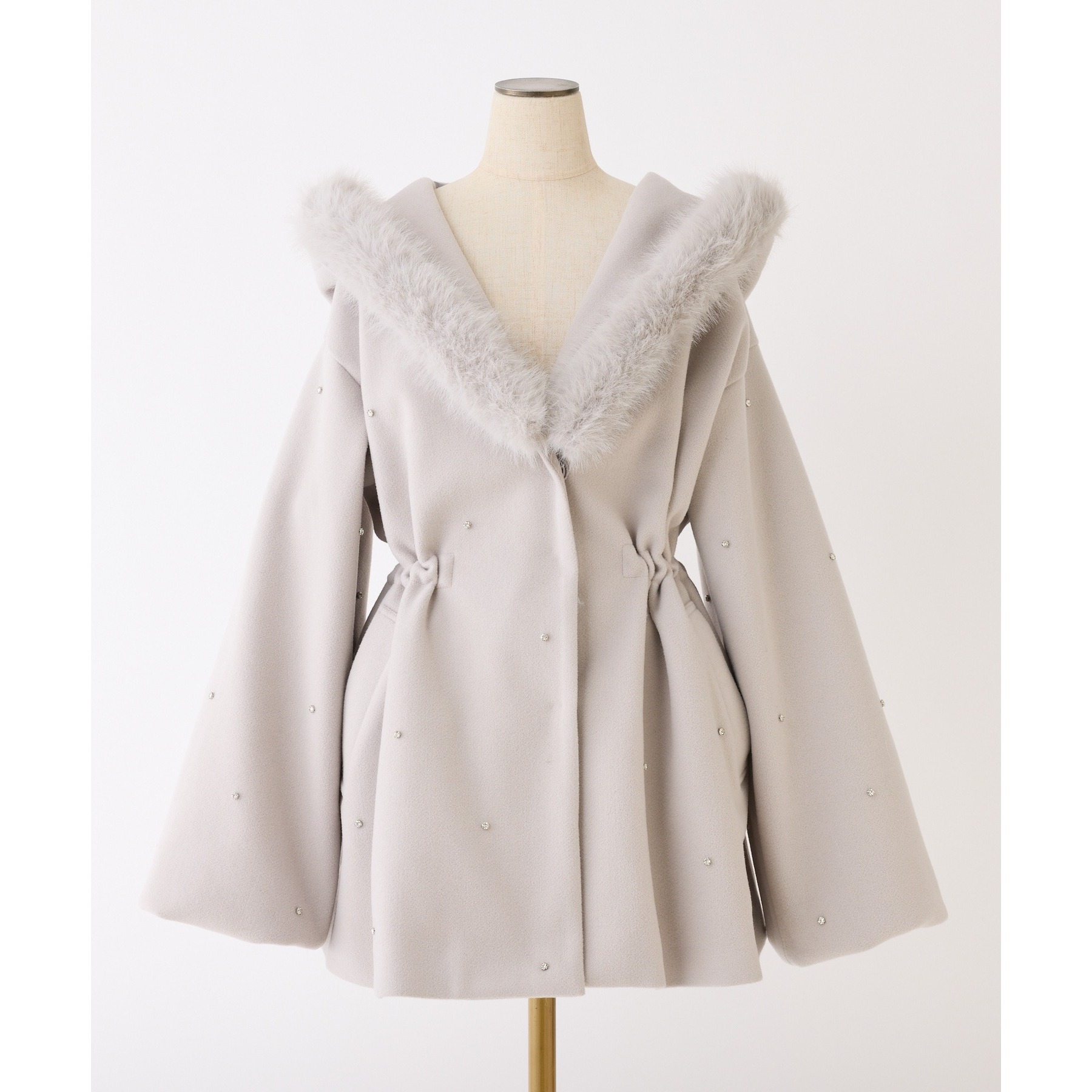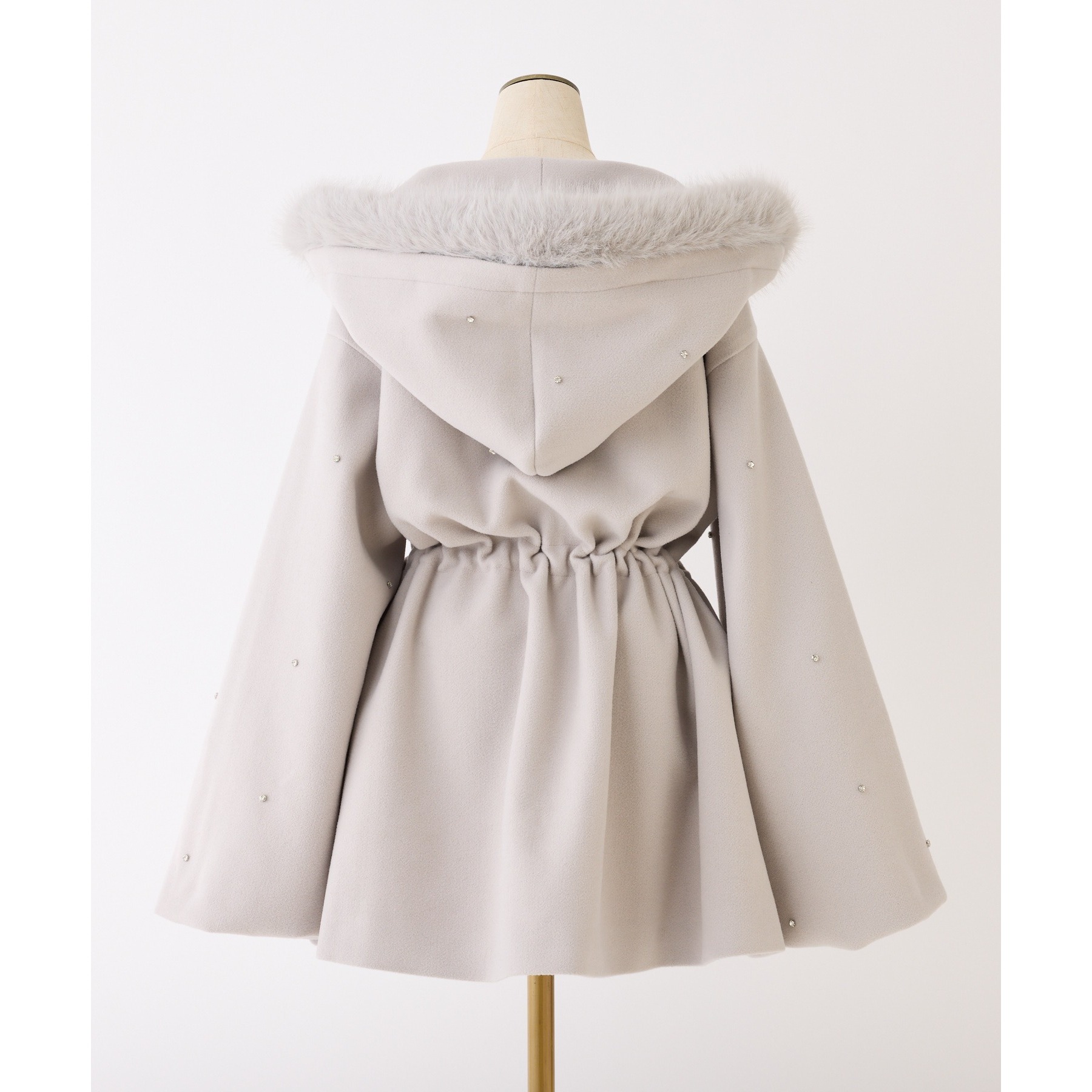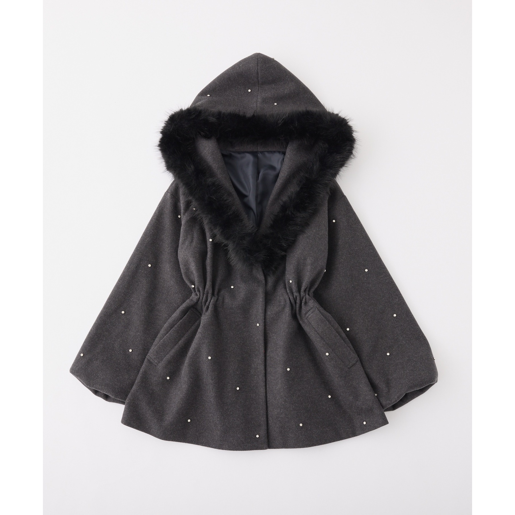 フードにはふんわりファー付きで、顔まわりを華やかに演出。