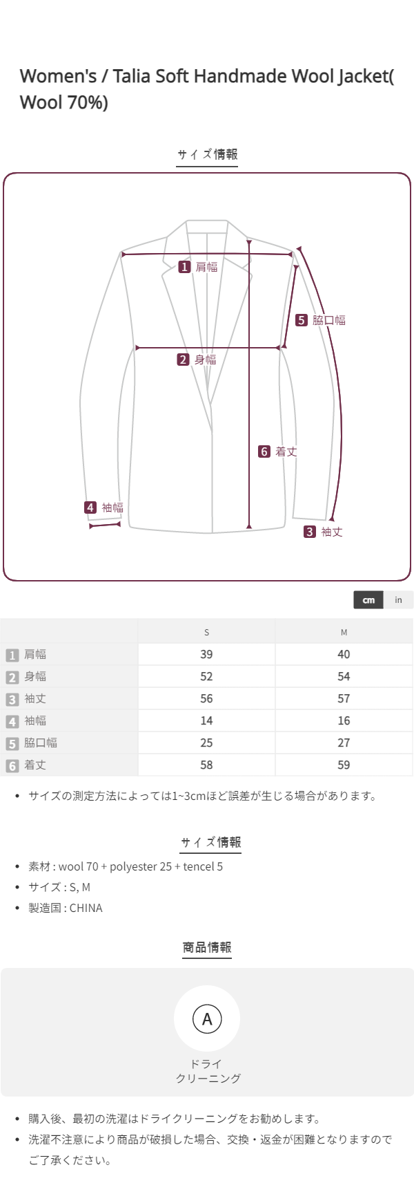 HEIGHT 168cm / BUST 81cm / WAIST 58cm / HIP 83cm