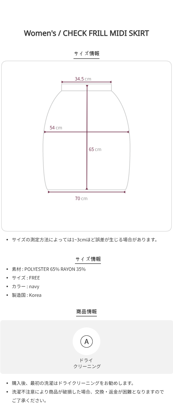 LENGTH 65 WAIST 34.5 HIP 54 HEM 70