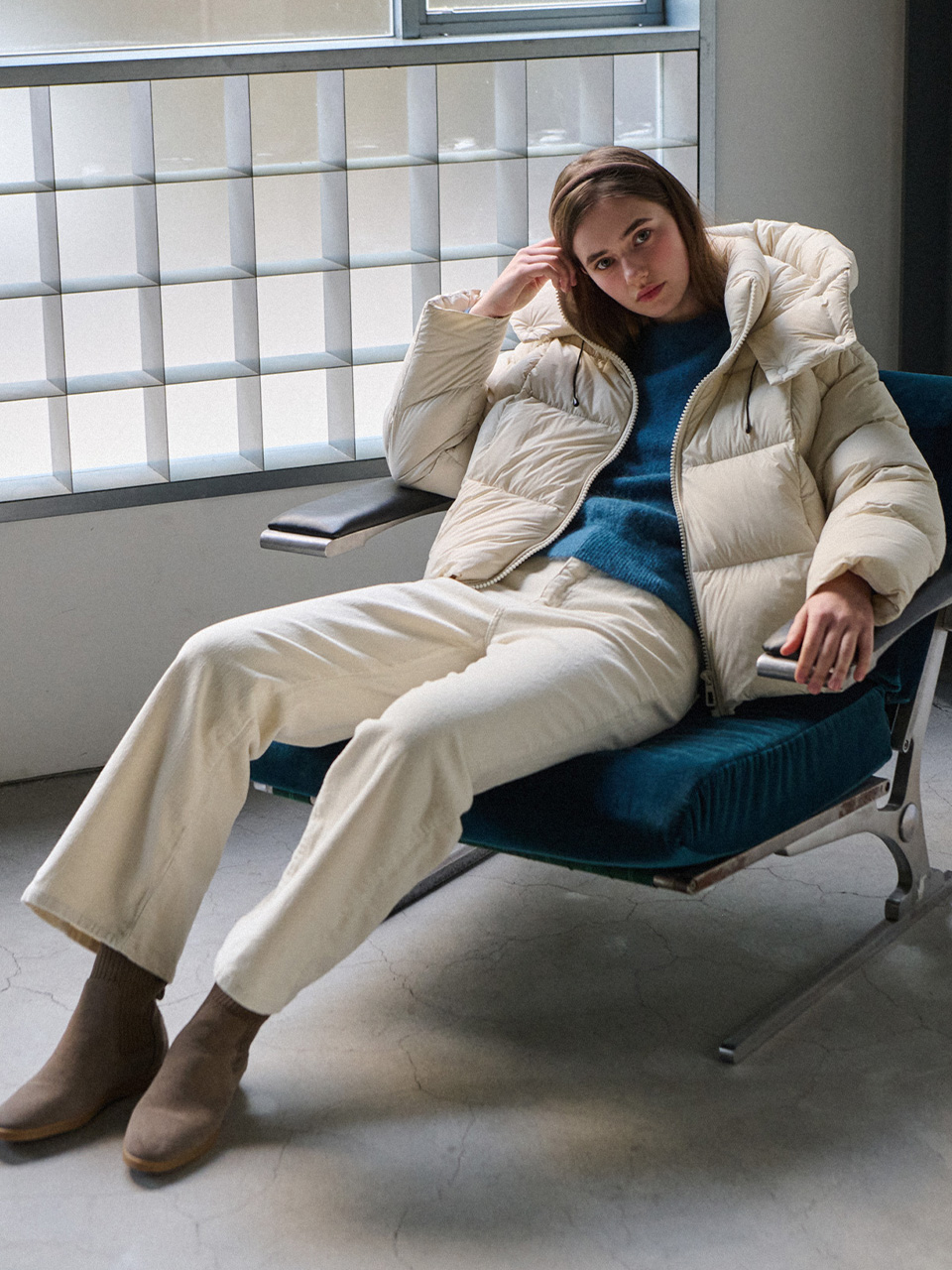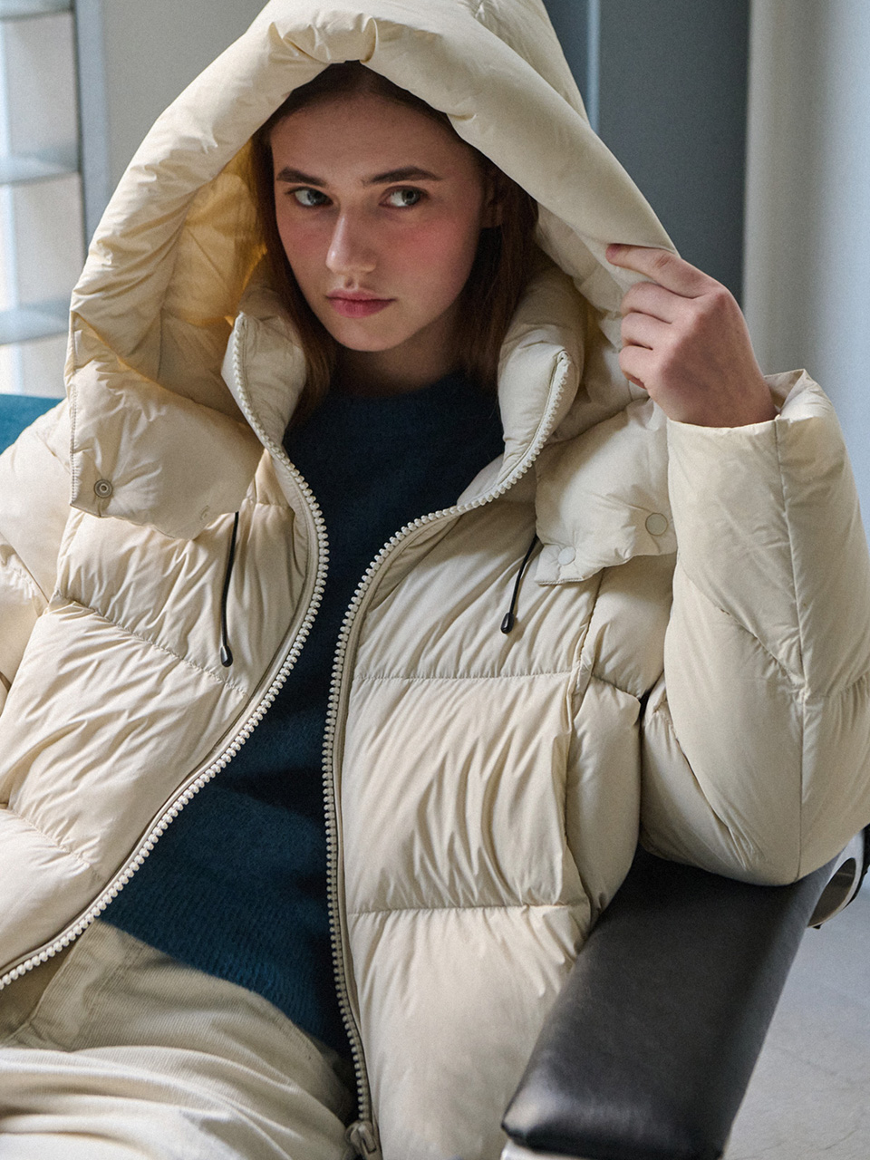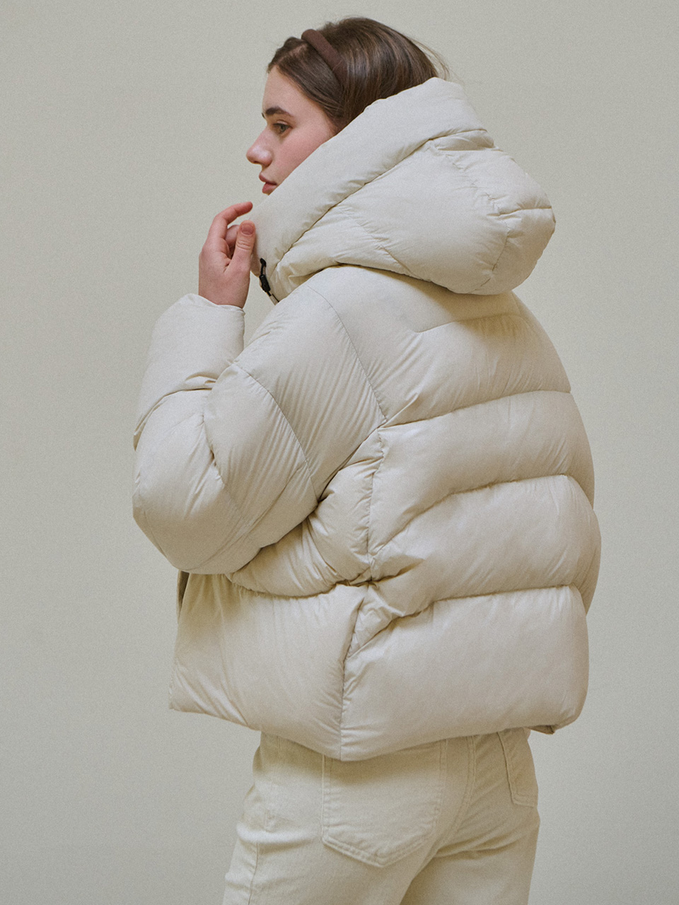 [Limited quantity] Duck down hood puffer - Ivory