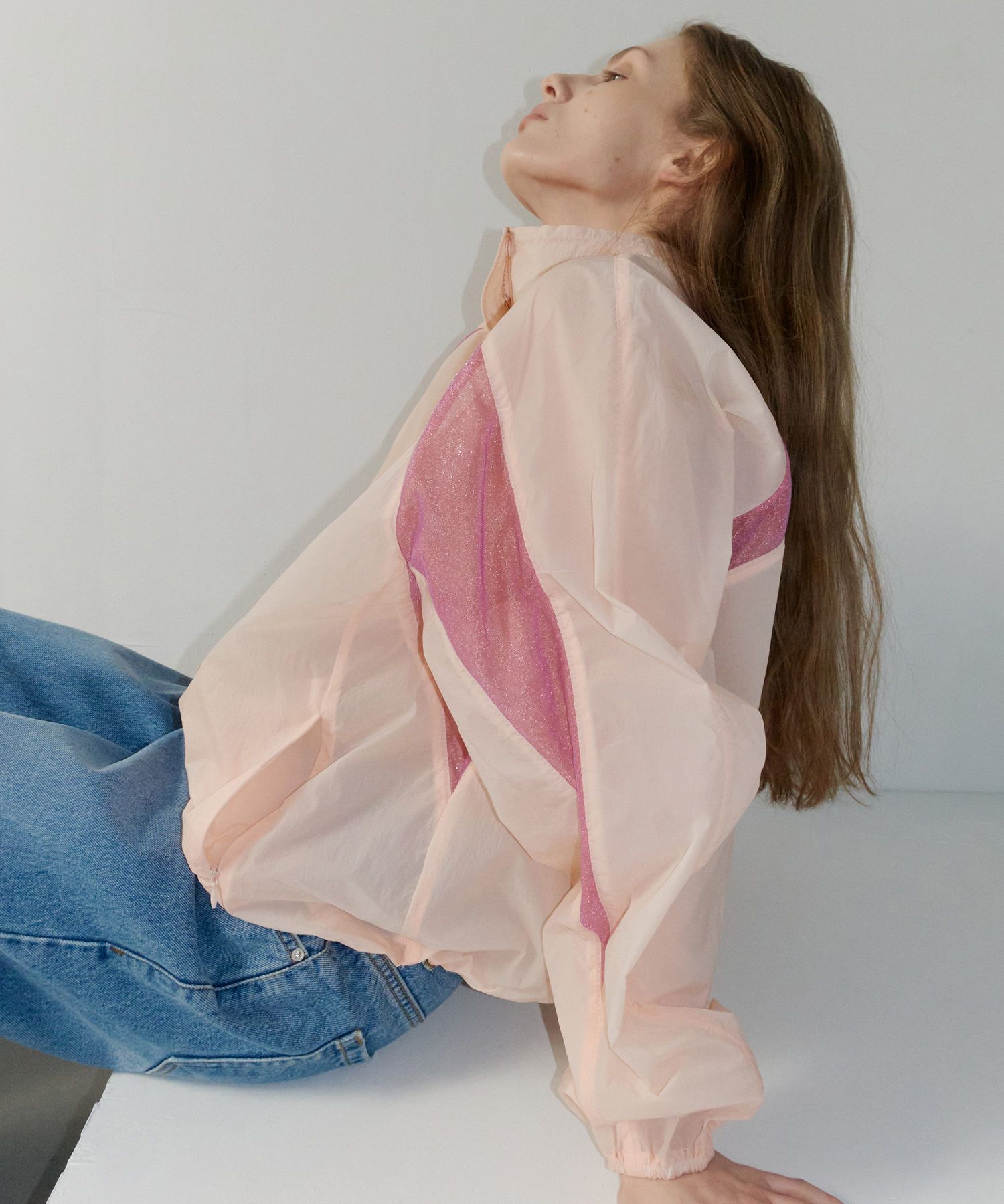 INCISION NYLON BLOUSON JUMPER_LIGHT PEACH/PURPLE