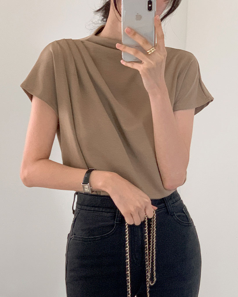 [made] Premium Beaute Half Neck Drape Tee