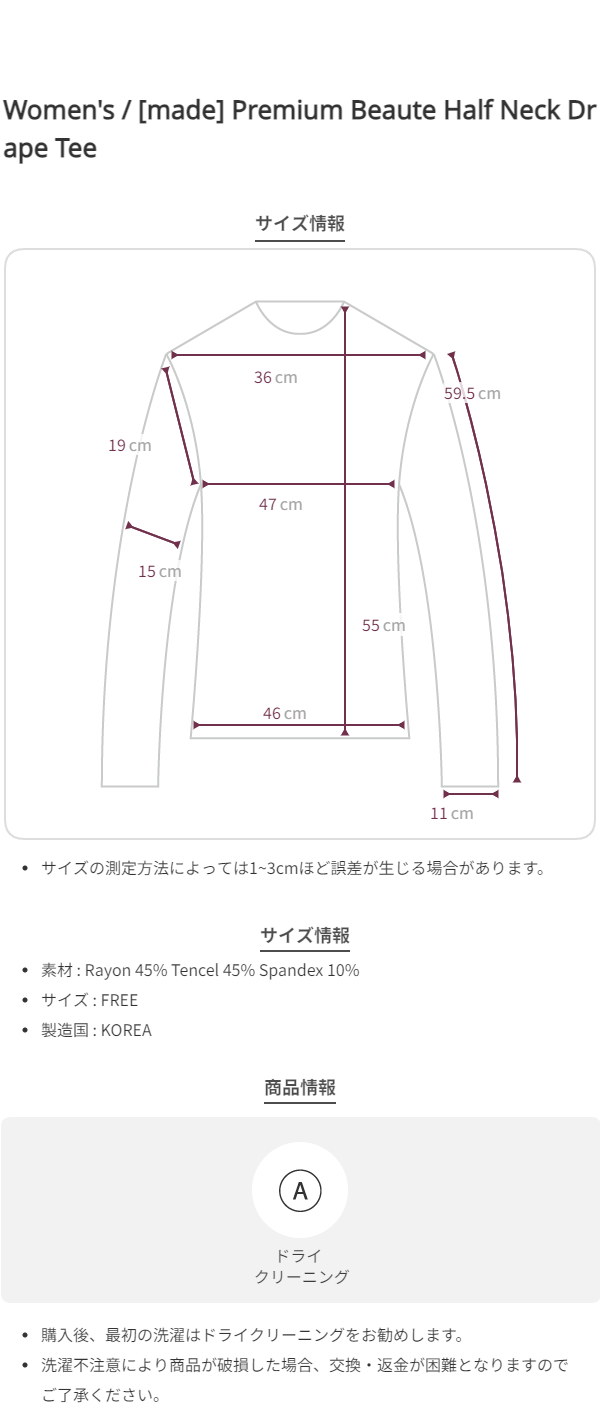 *レーヨン素材の特性上、プレスアイロンのご使用はご注意ください。スチームアイロンのご使用を推奨し、スチームを当てる際は少し離して行ってください。