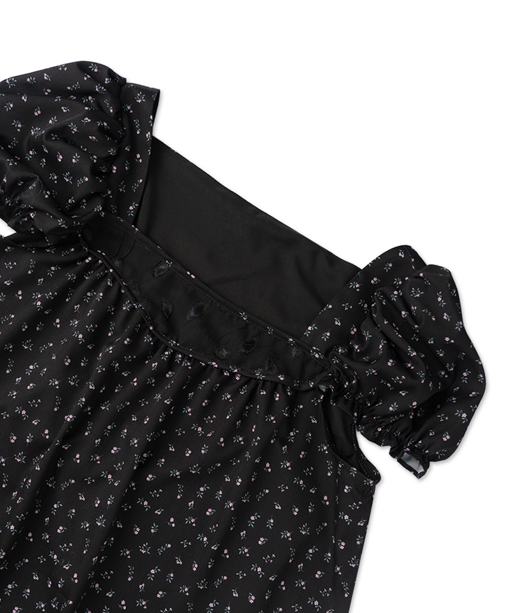フロントのネックラインにあしらわれたレースがさりげないポイントとなり、シンプルなデザインに繊細さと愛らしさをプラスします。