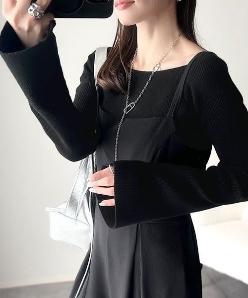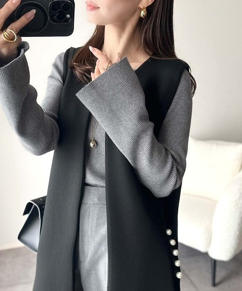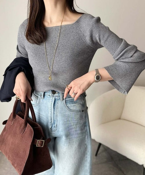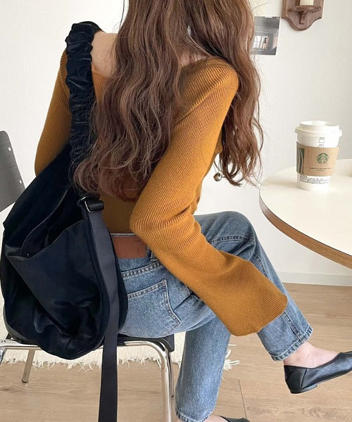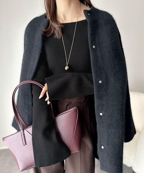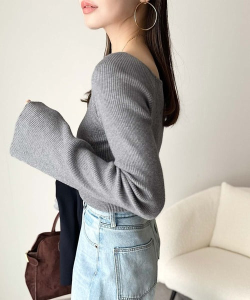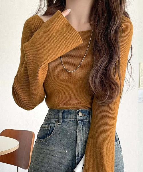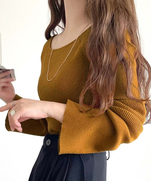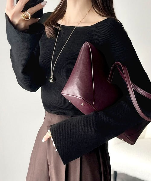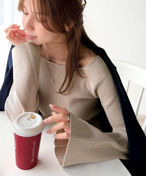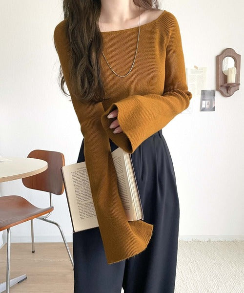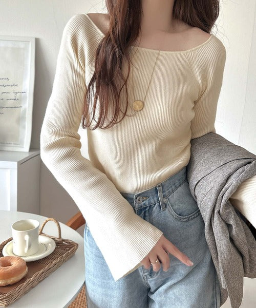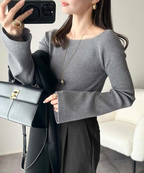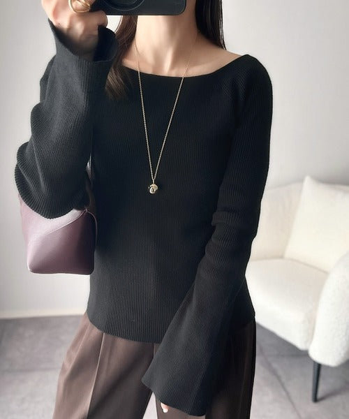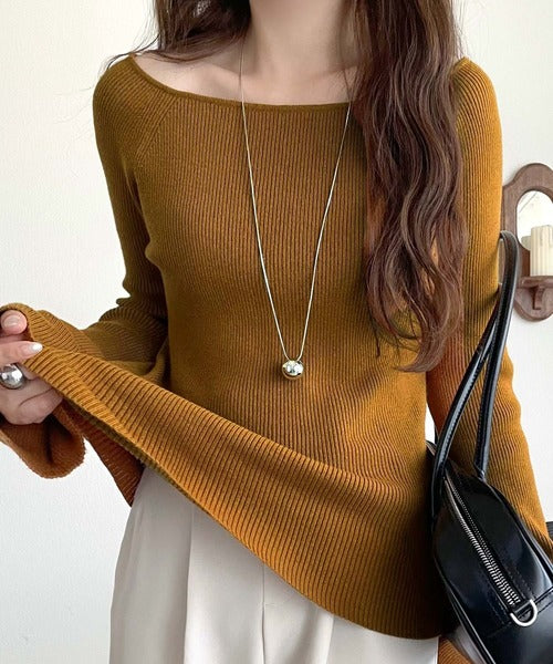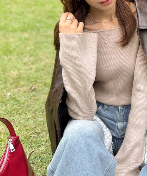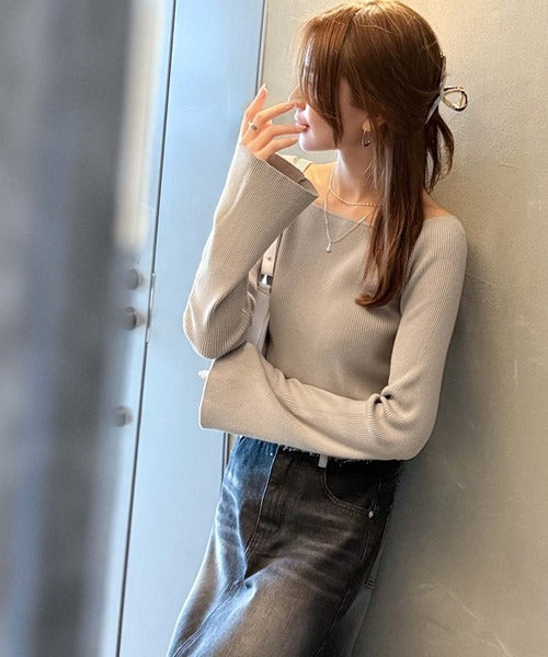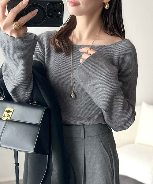 デコルテ美人を叶える、大人の上品アイテム♪ボートネックリブニットトップス(長袖) ce1260447