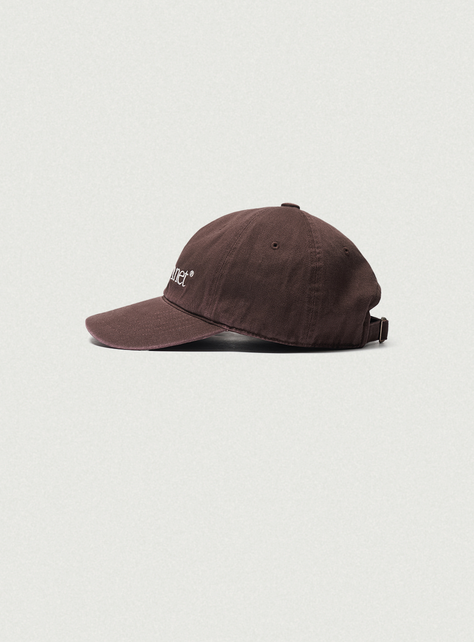 ブラウンカラーの柔らかな質感が際立つコットン生地 調節可能なストラップとアンストラクチャー仕様のボールキャップタイプ ファブリックカラーに備えたホワイトカラーを活用したロゴ刺繍ディテール コットン100% ブラウンコットン Baseball cap Unstructured Adjustable strap Logo embroidery