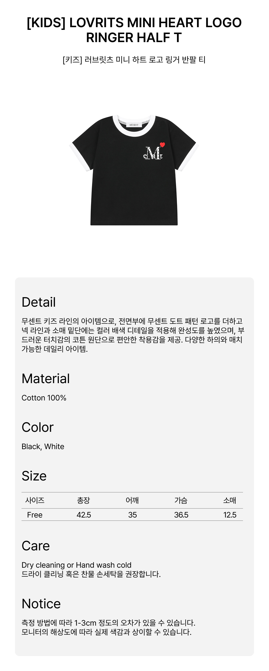 [KIDS] LOVRITS MINI HEART LOGO RINGER HALF T (2COLOR)