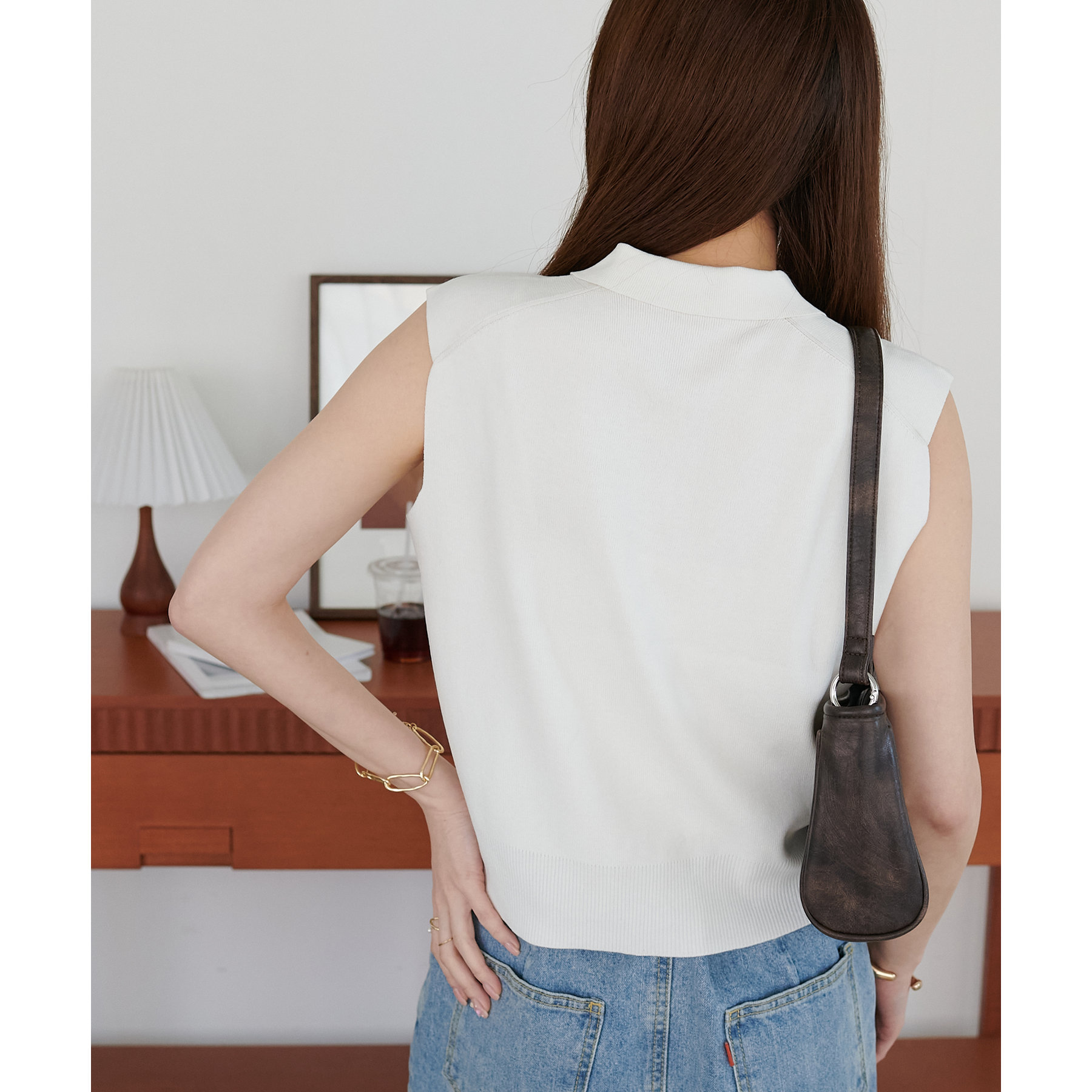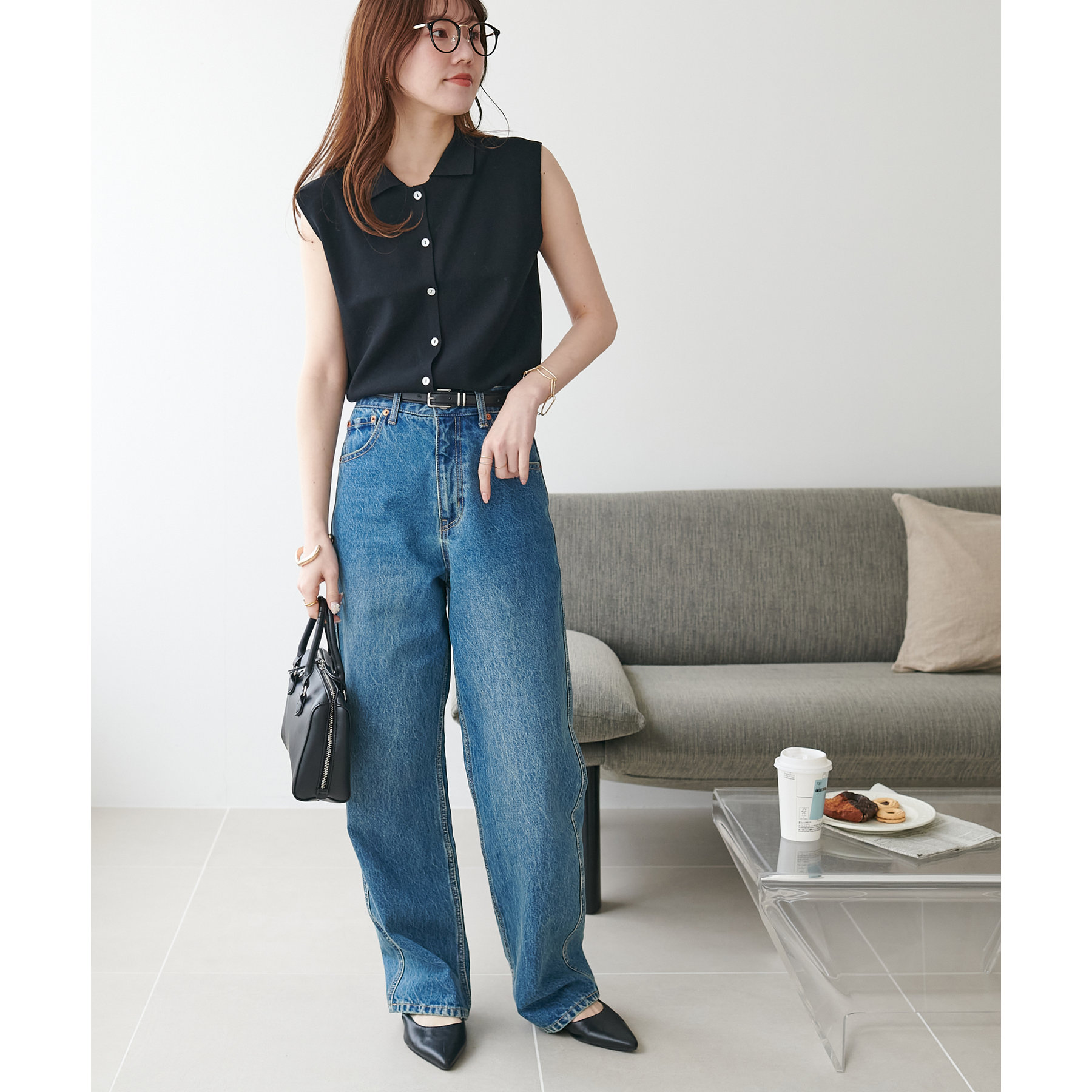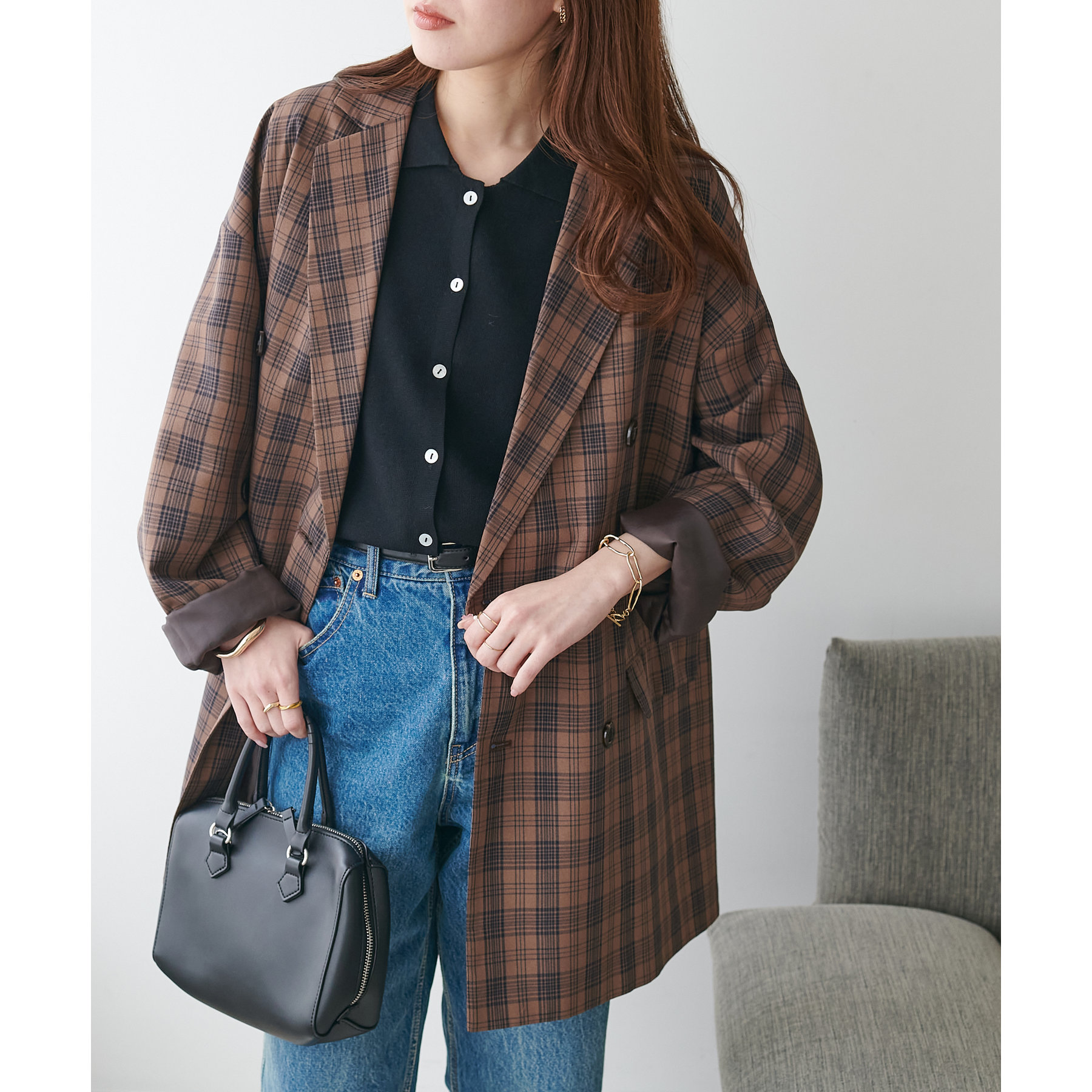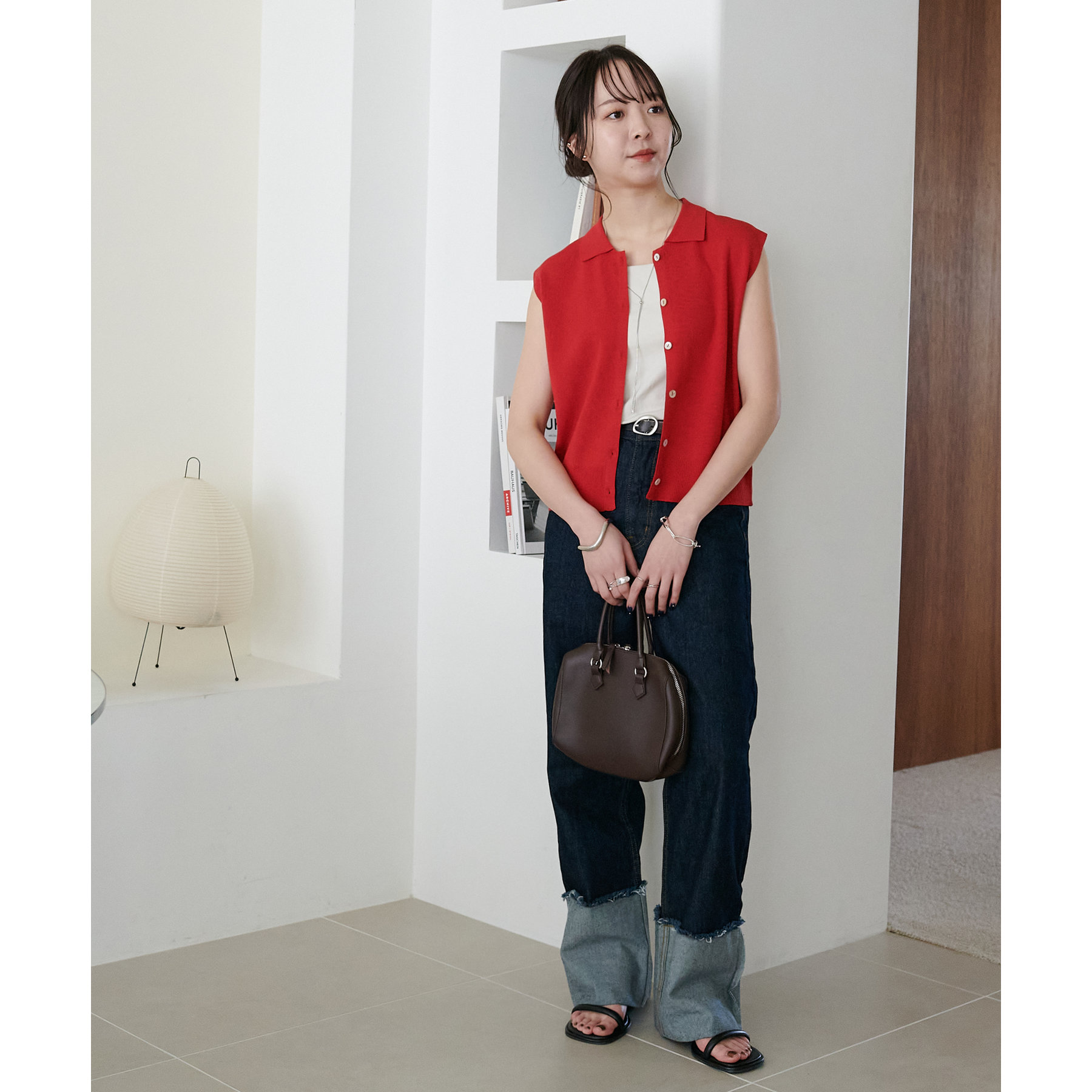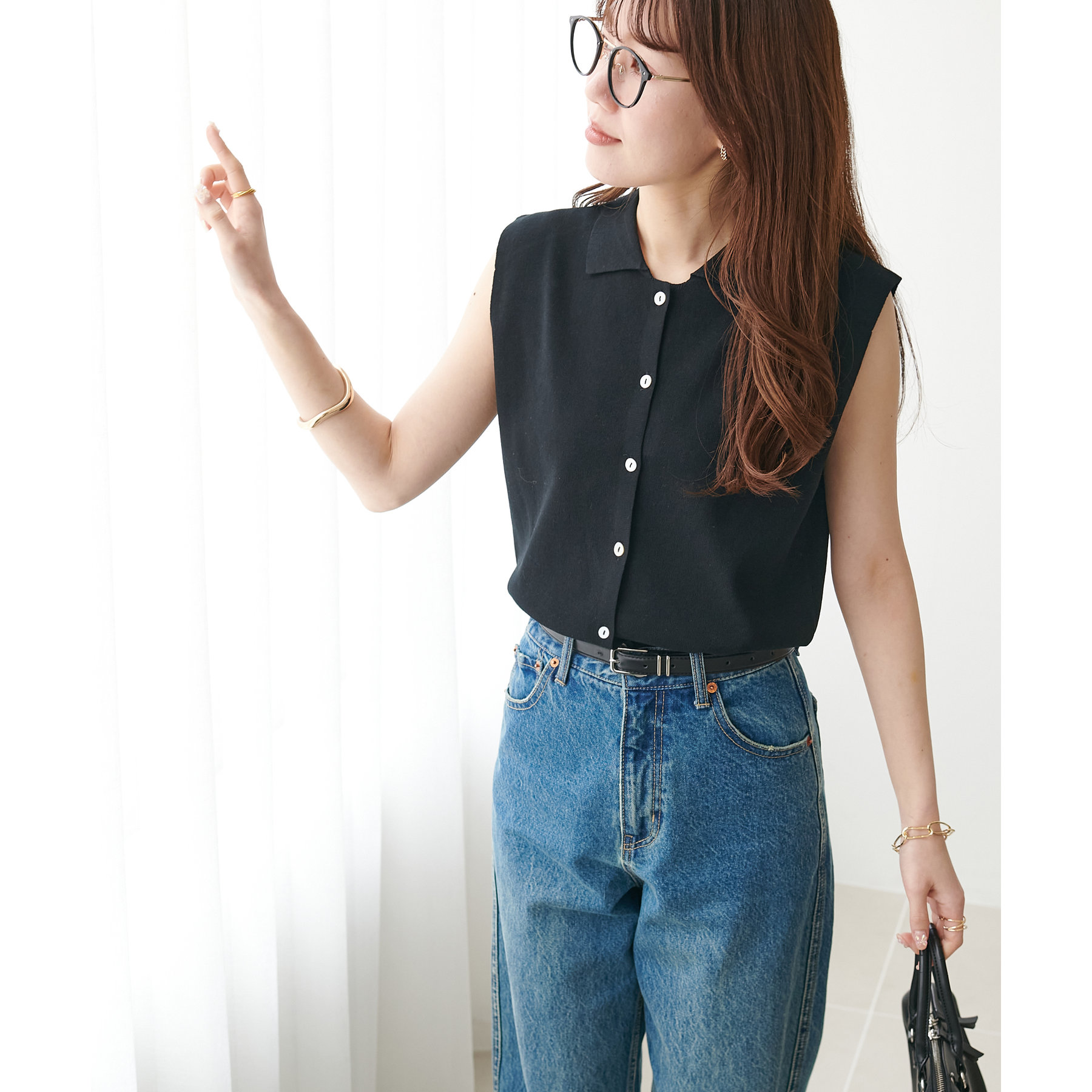 襟付きのデザインになっていることで、キレイメな印象になるのでデニムと合わせた大人カジュアルなコーデに取り入れたいです!