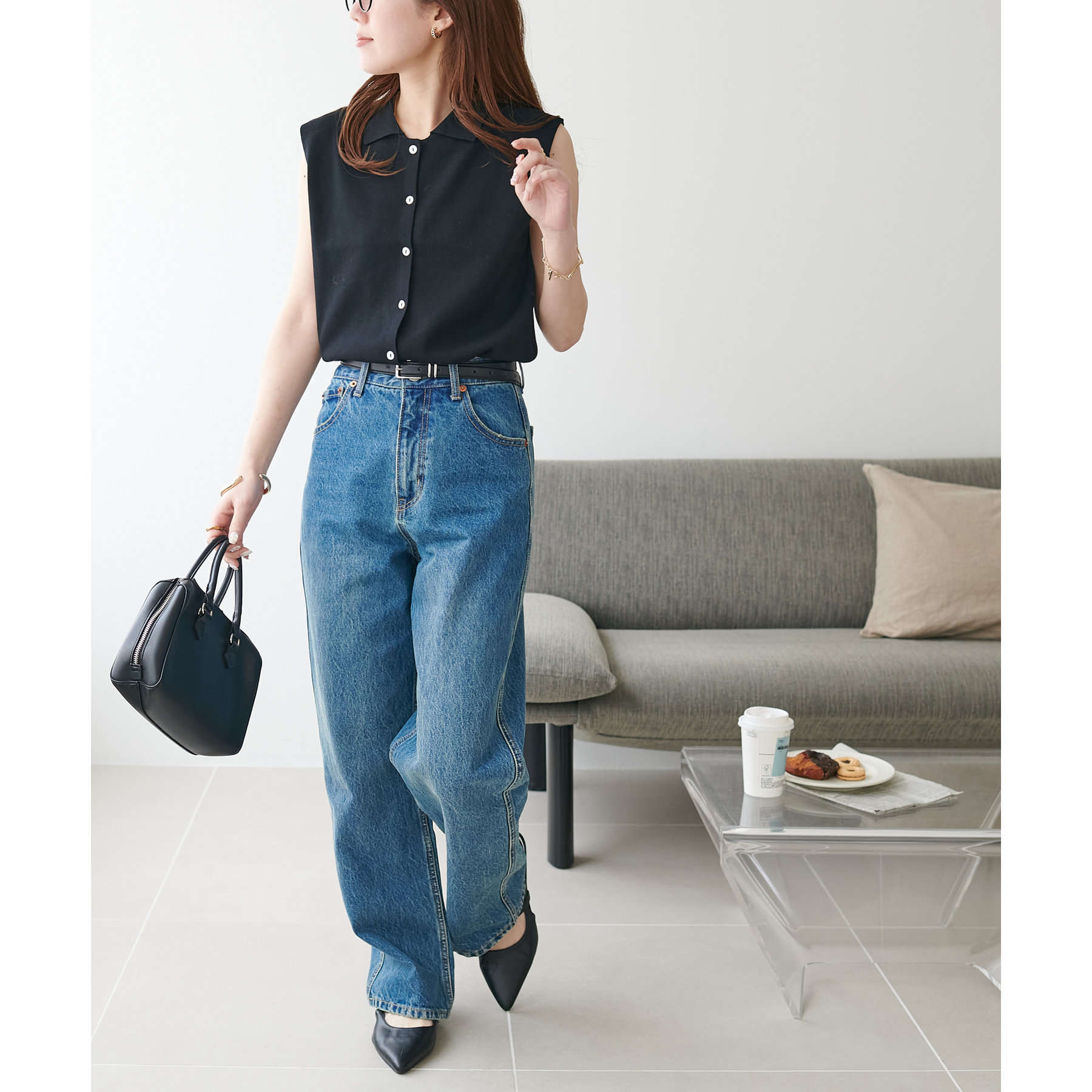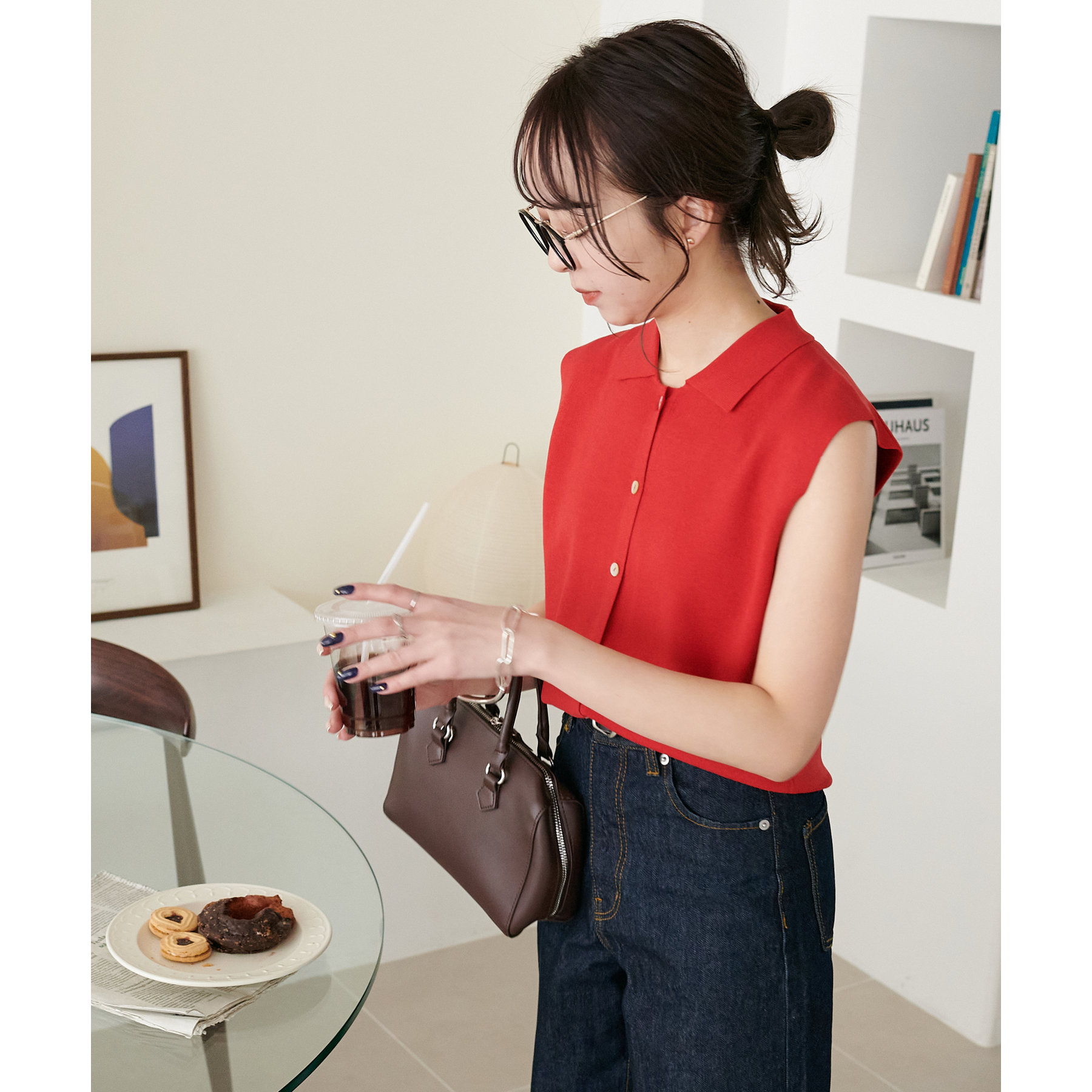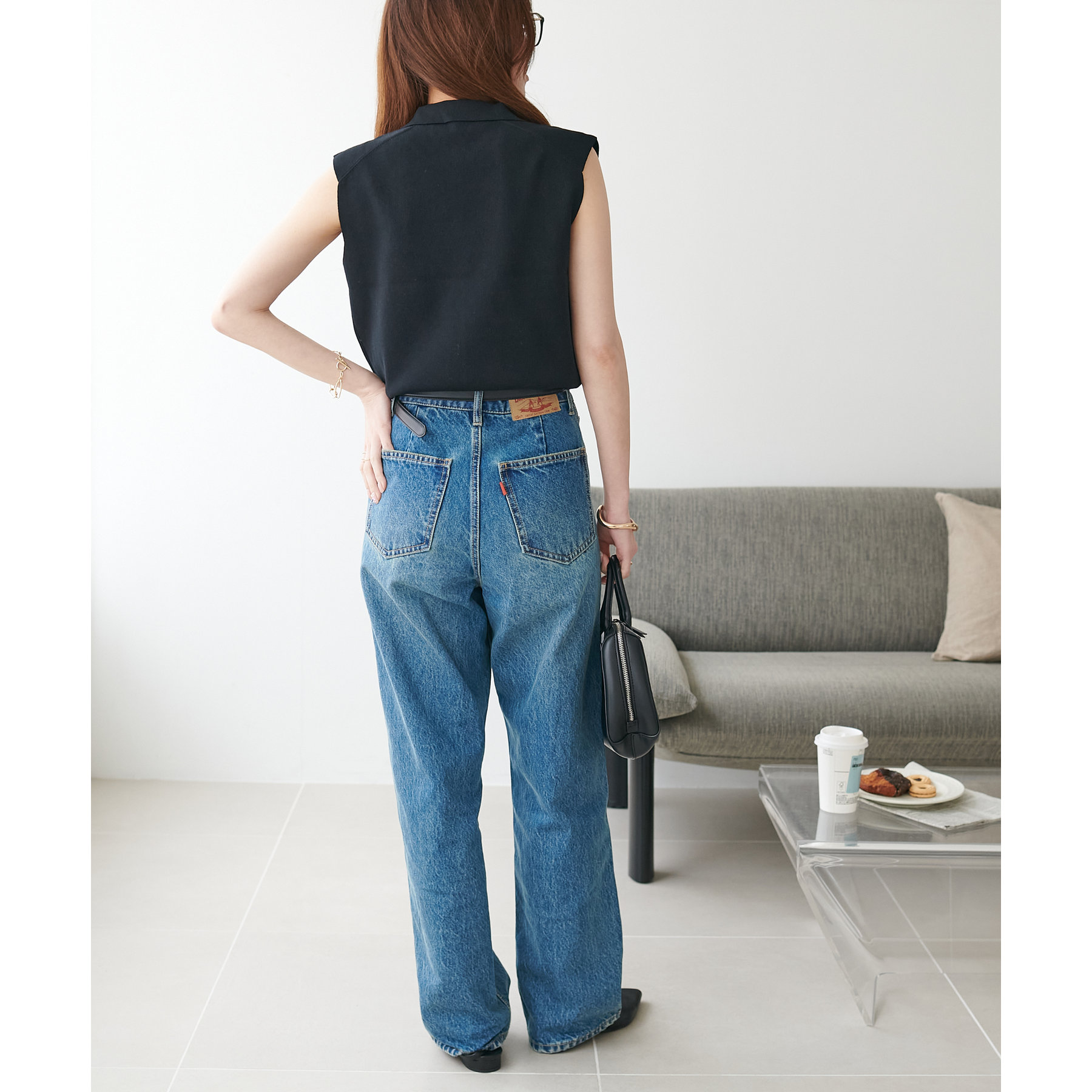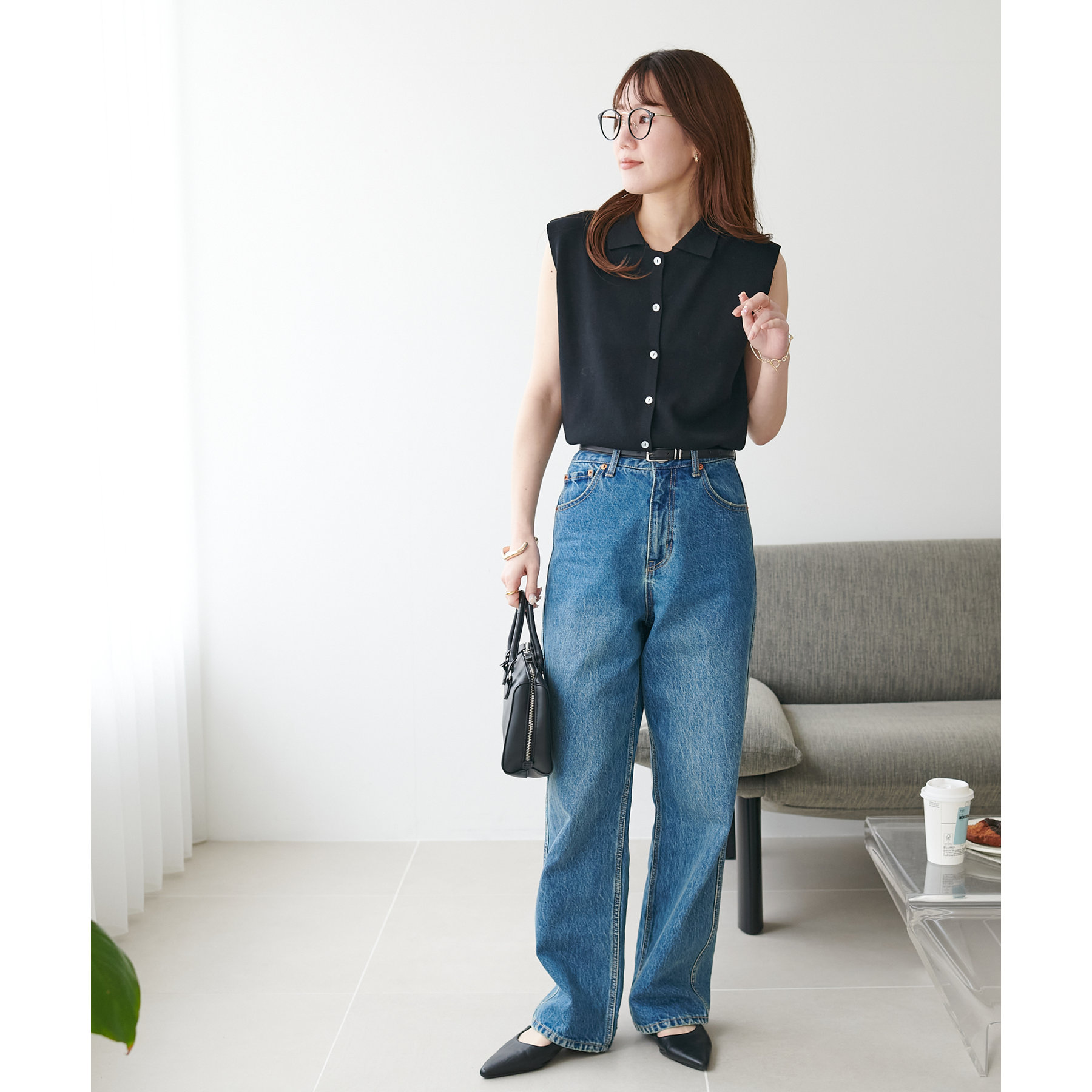 襟付きのデザインになっていることで、キレイメな印象になるのでデニムと合わせた大人カジュアルなコーデに取り入れたいです!