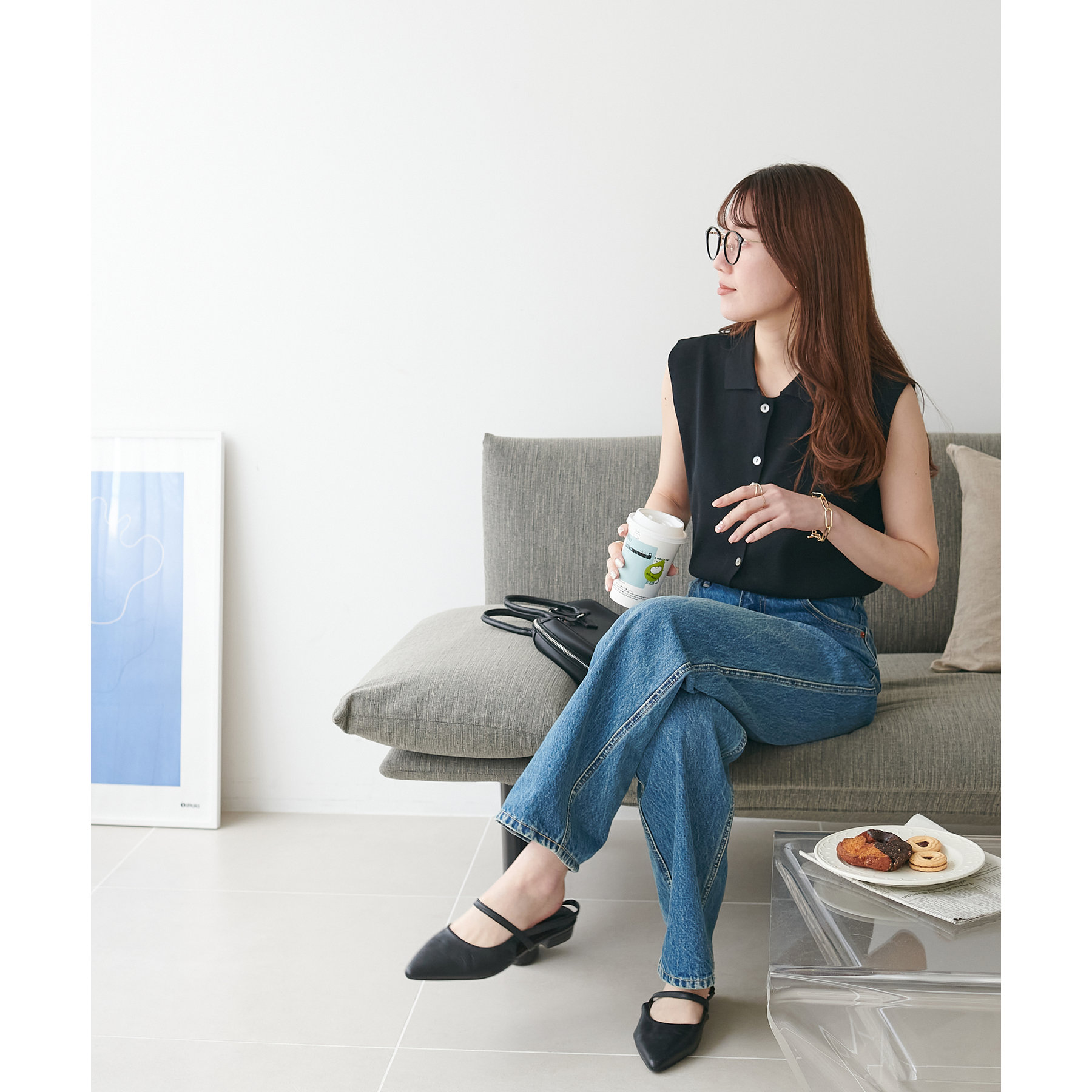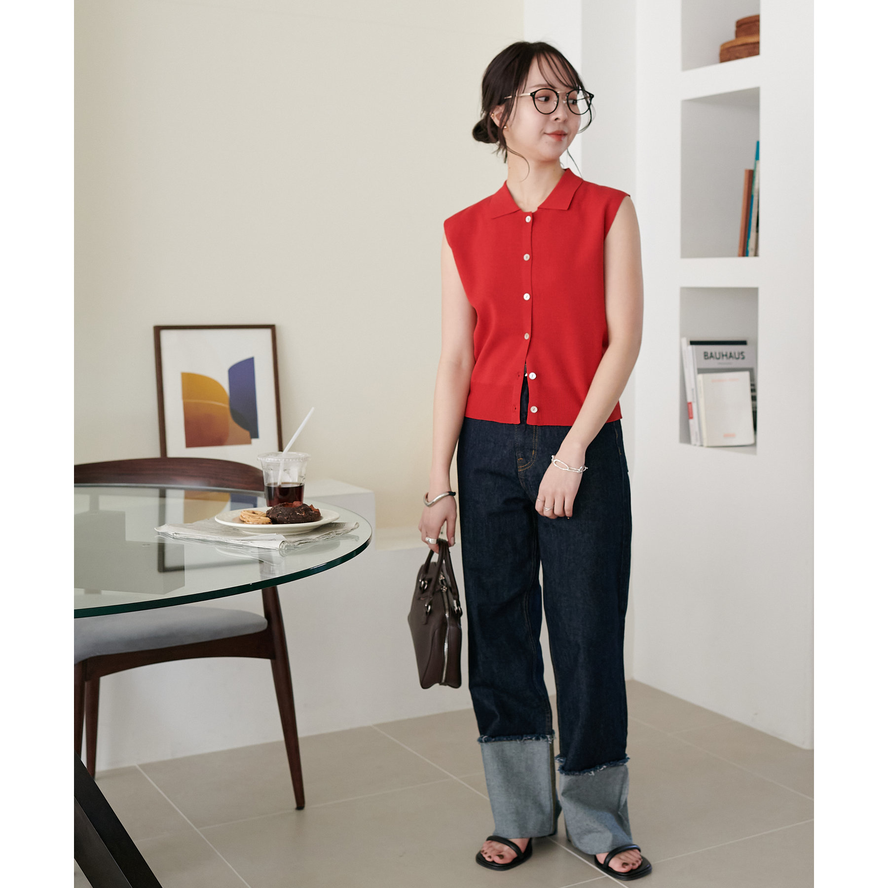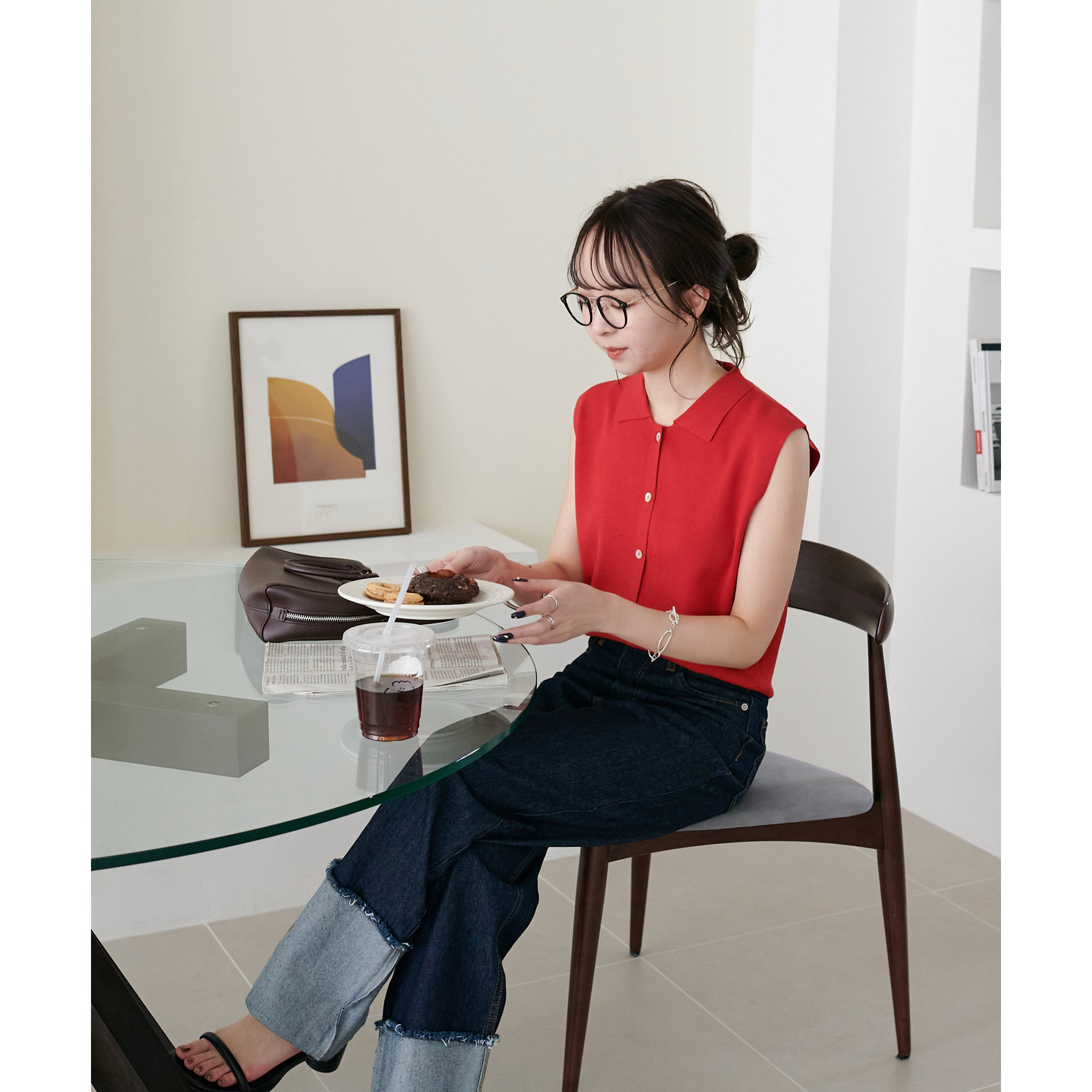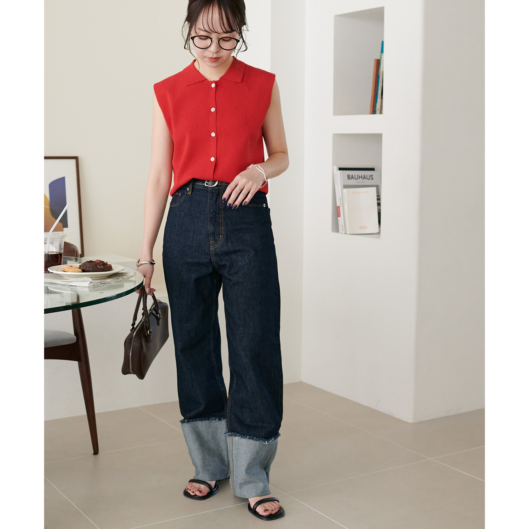 襟付きのデザインになっていることで、キレイメな印象になるのでデニムと合わせた大人カジュアルなコーデに取り入れたいです!