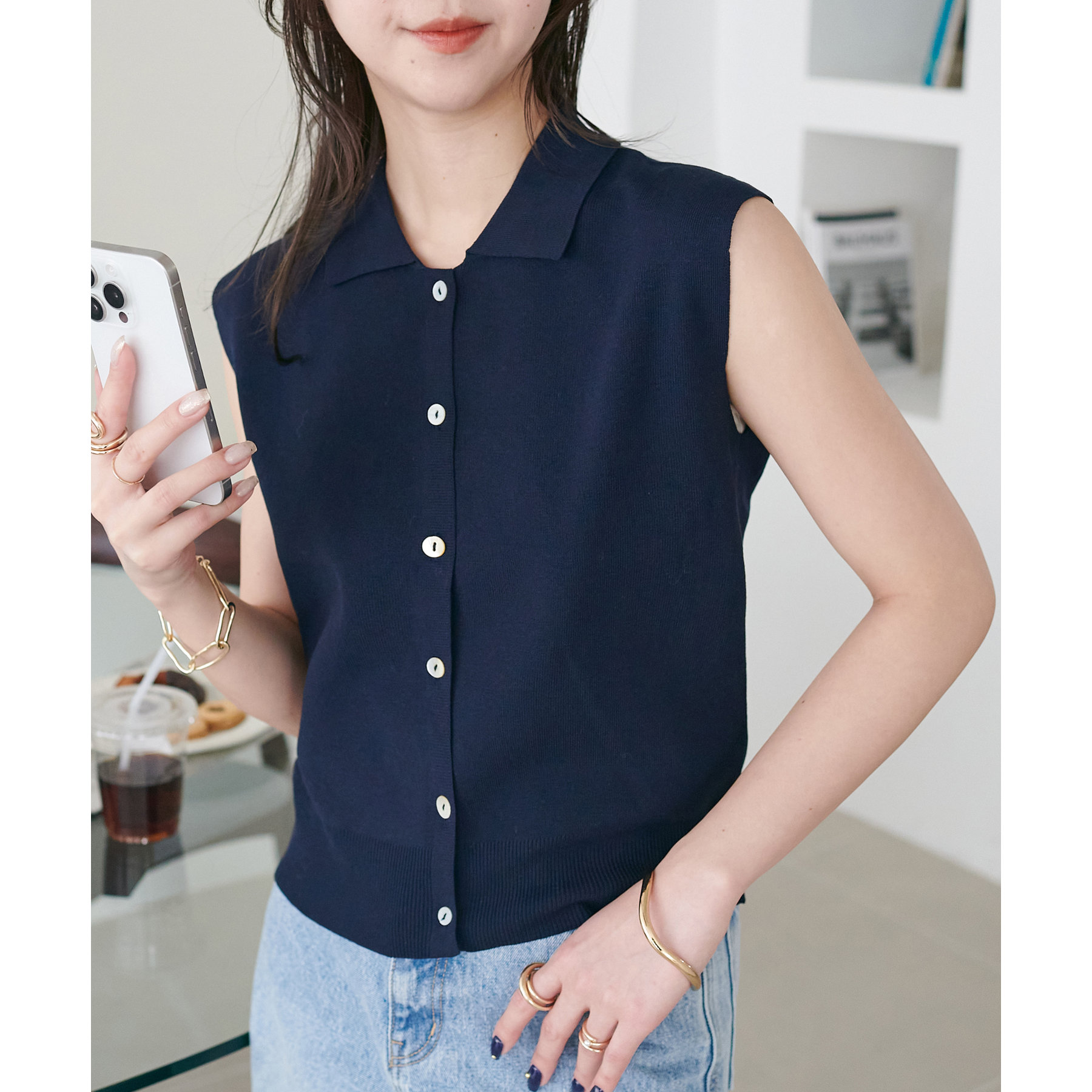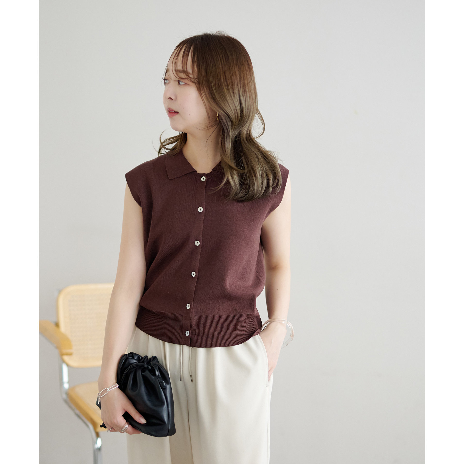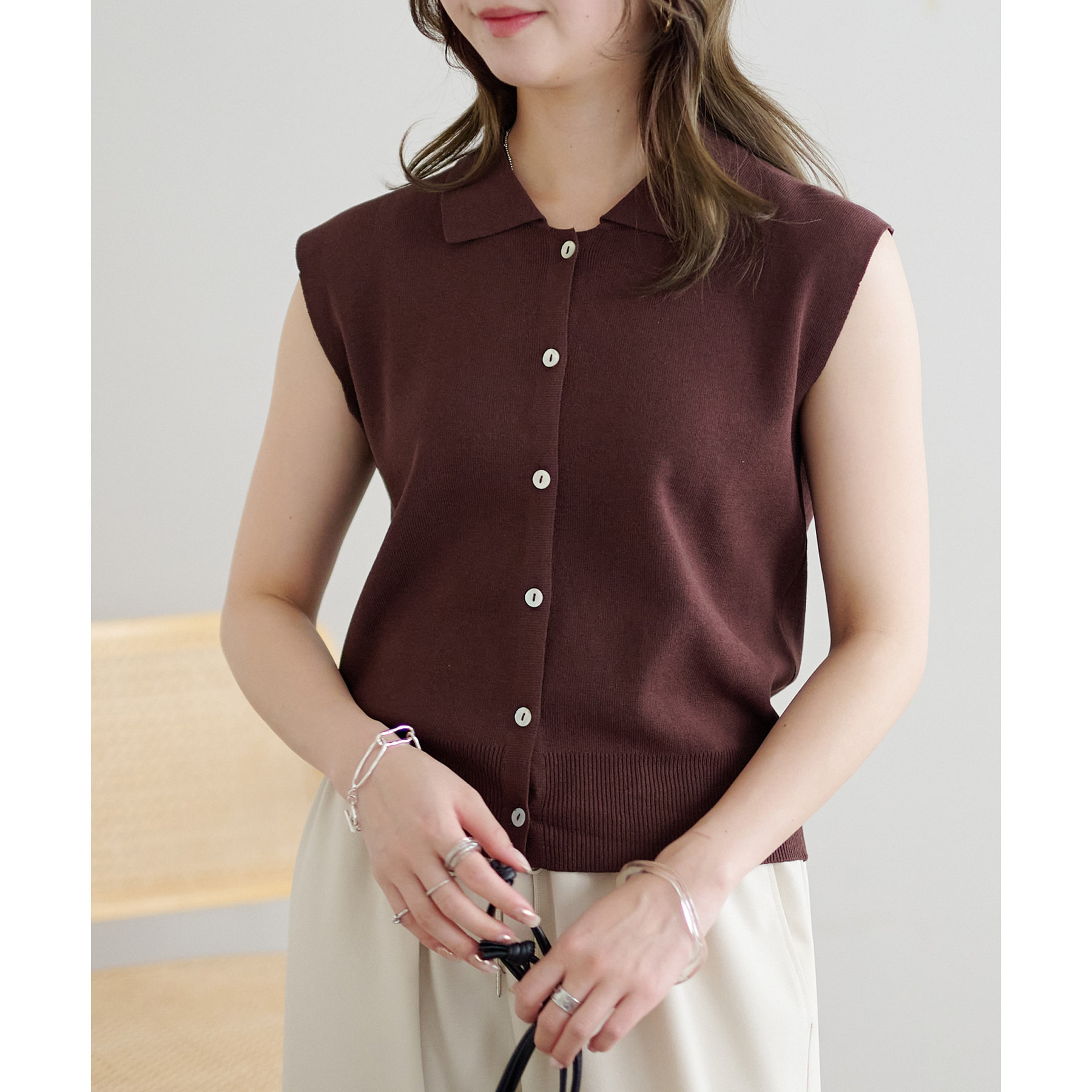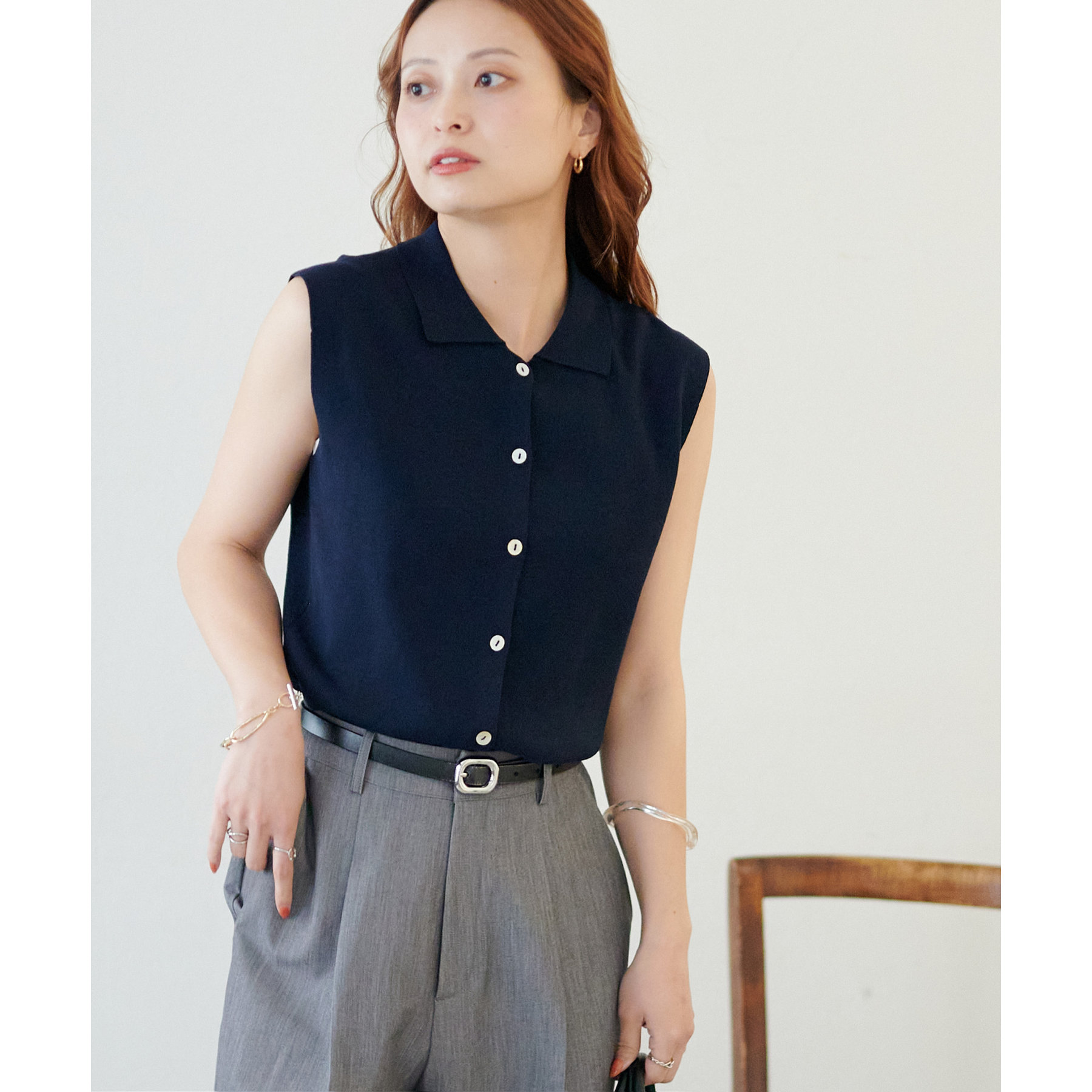 サラモチ衿付き前開きノースリーブ《WEB限定カラーあり》