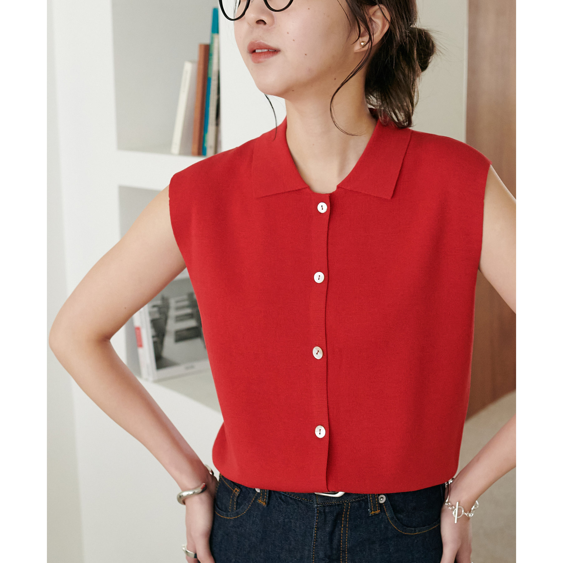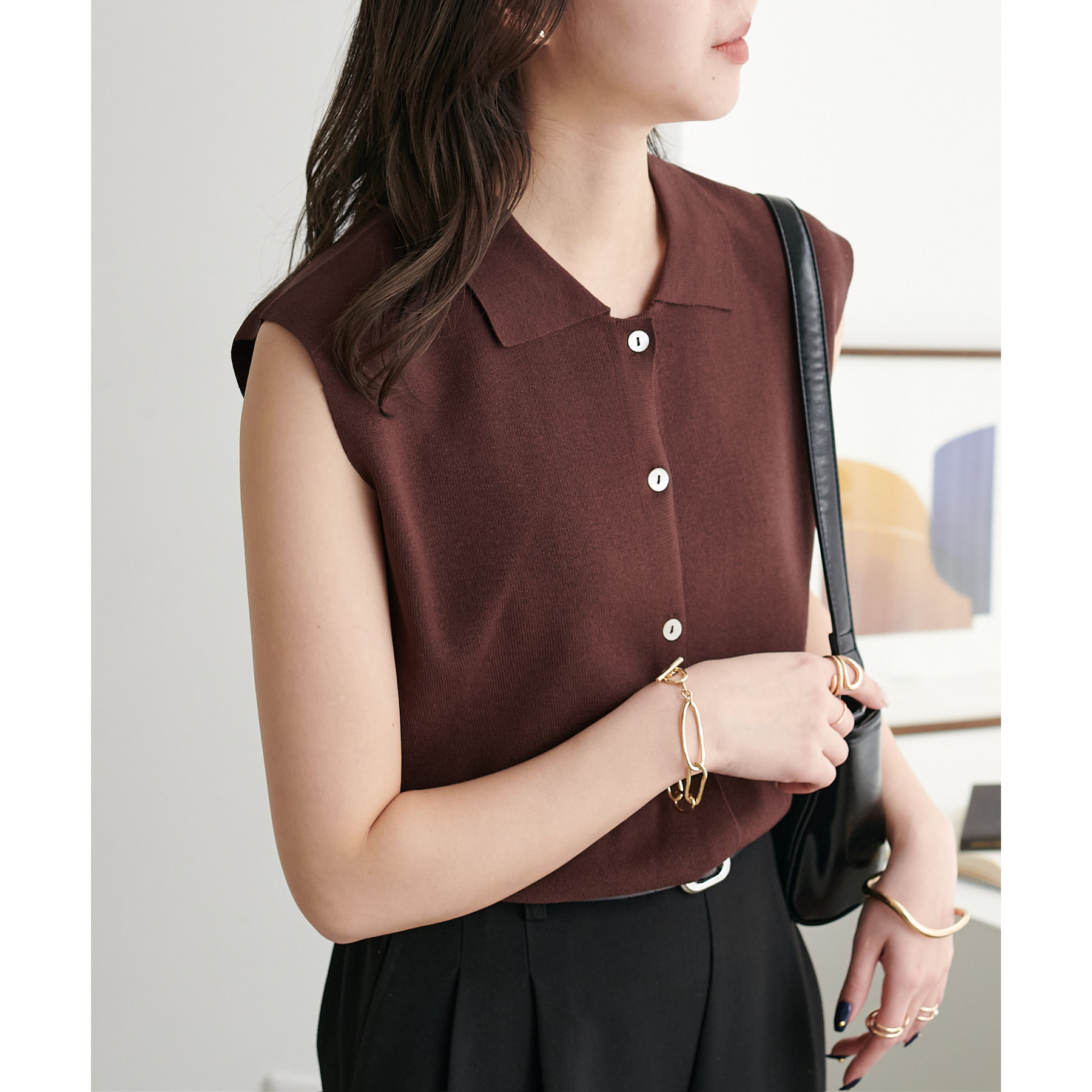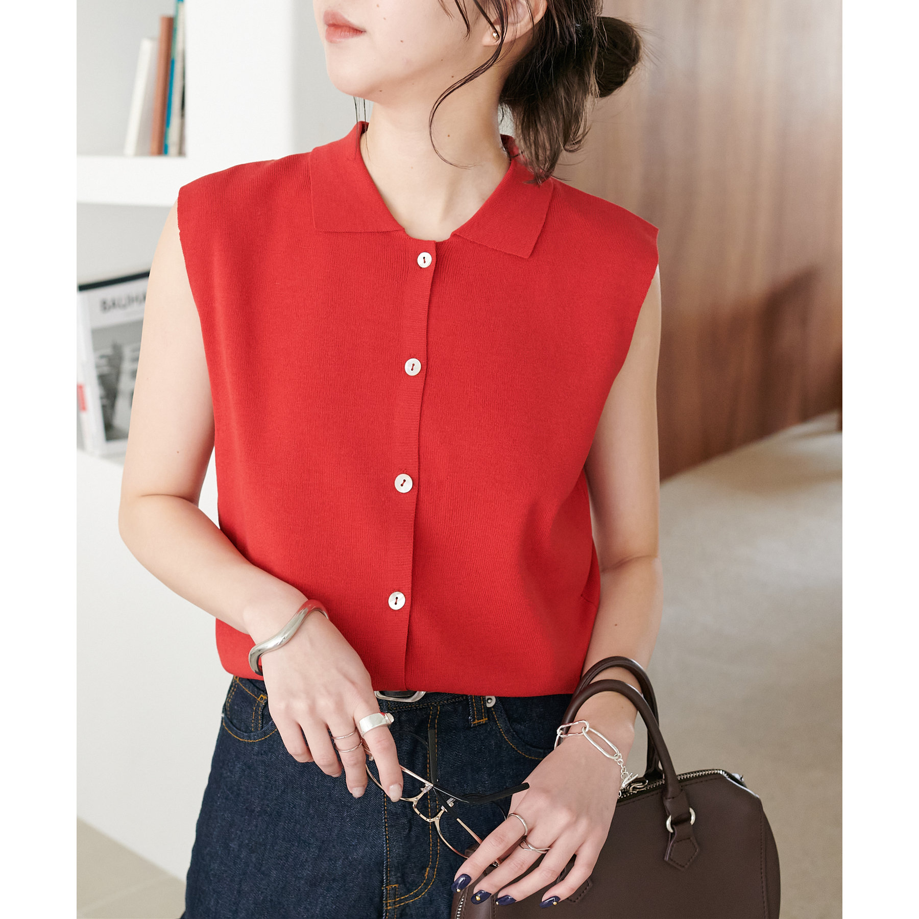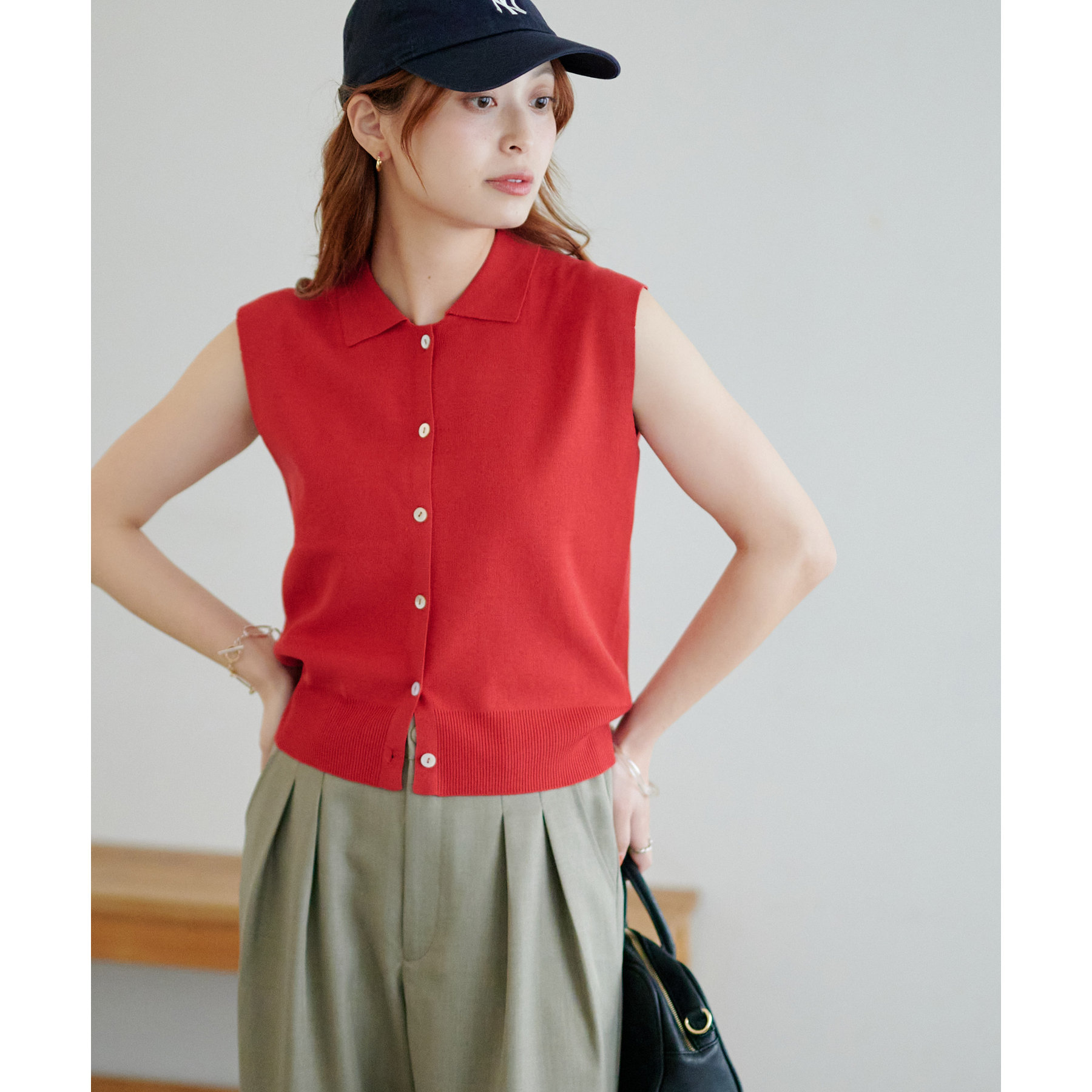 サラモチ衿付き前開きノースリーブ《WEB限定カラーあり》