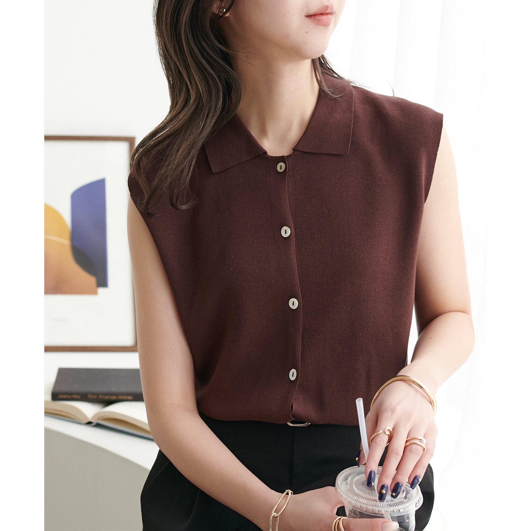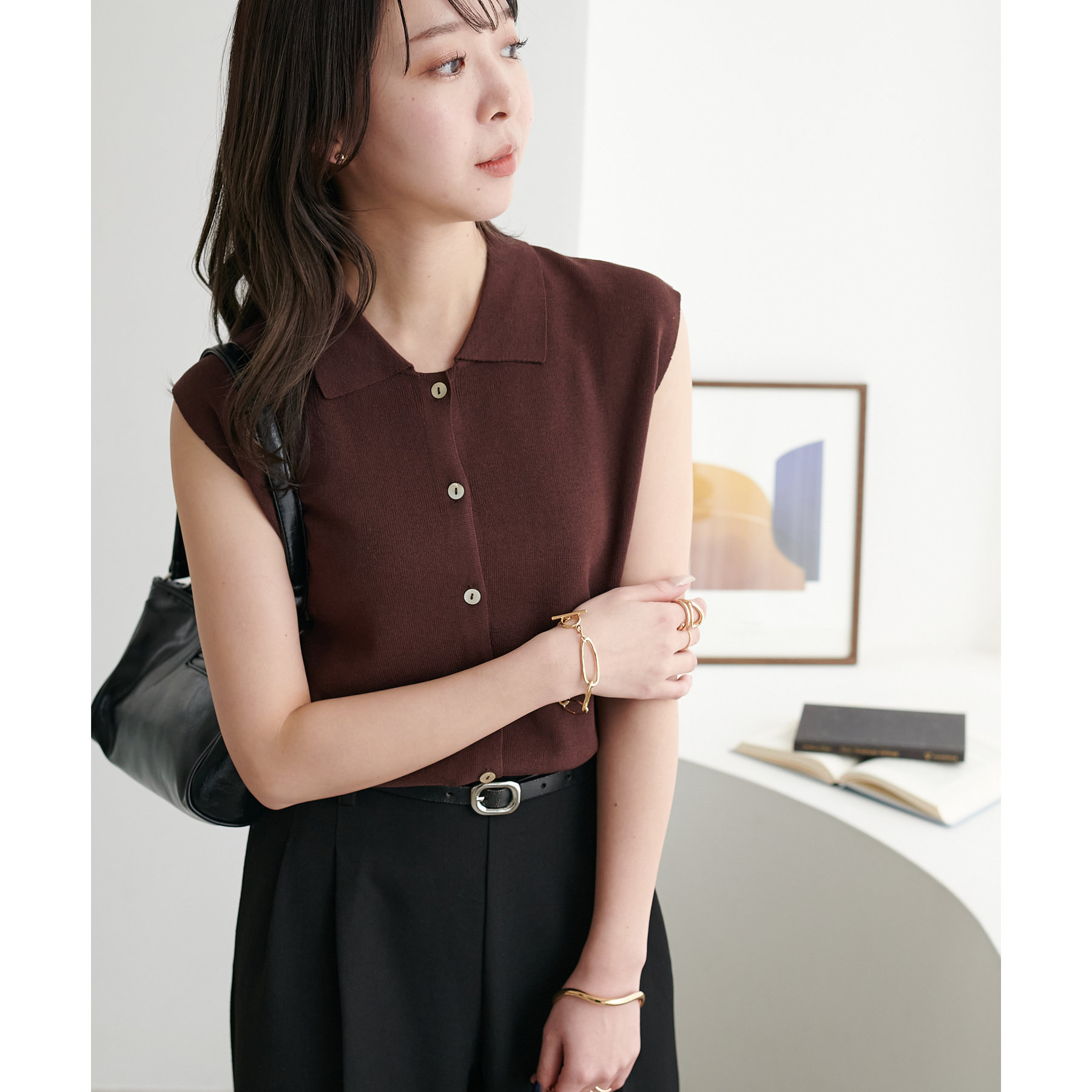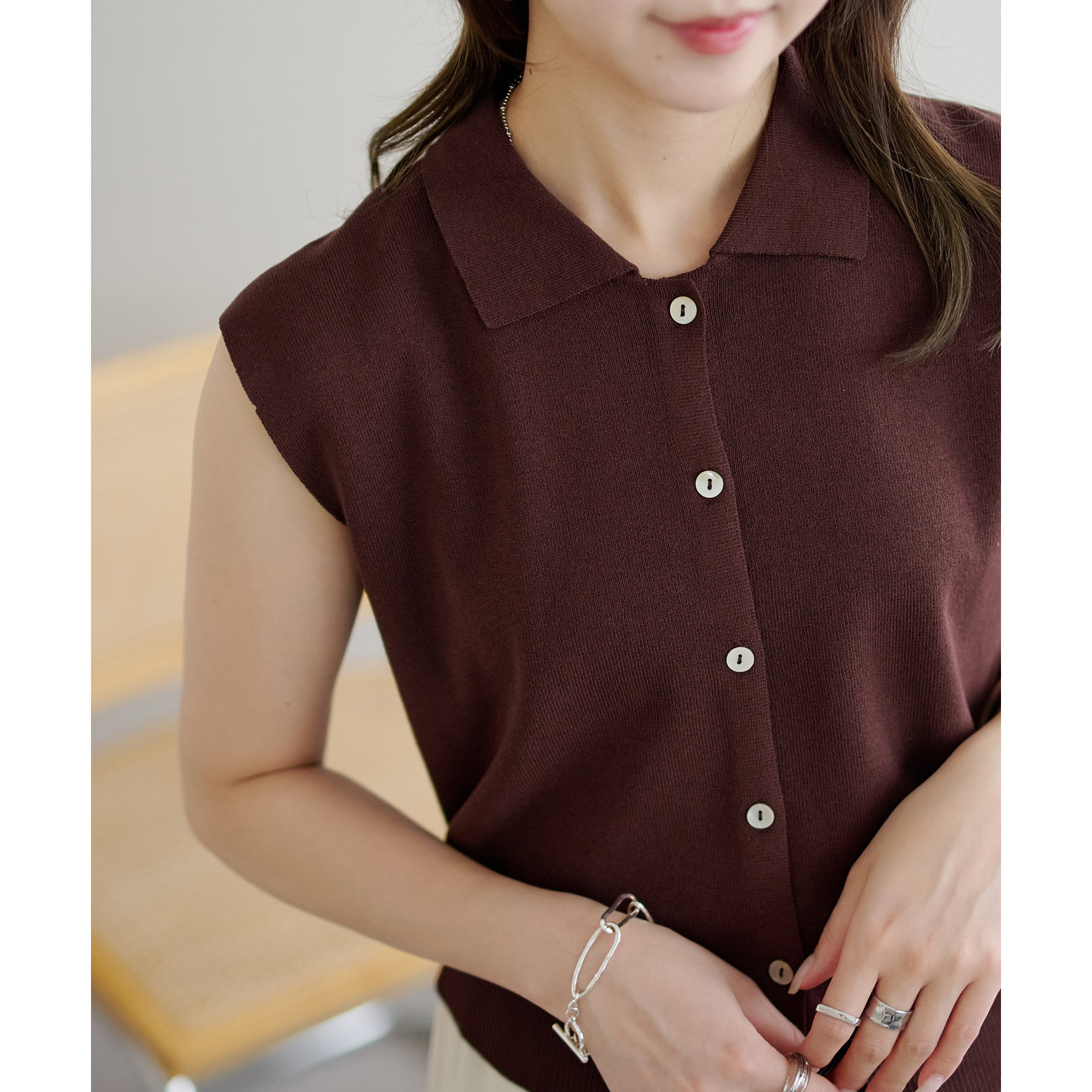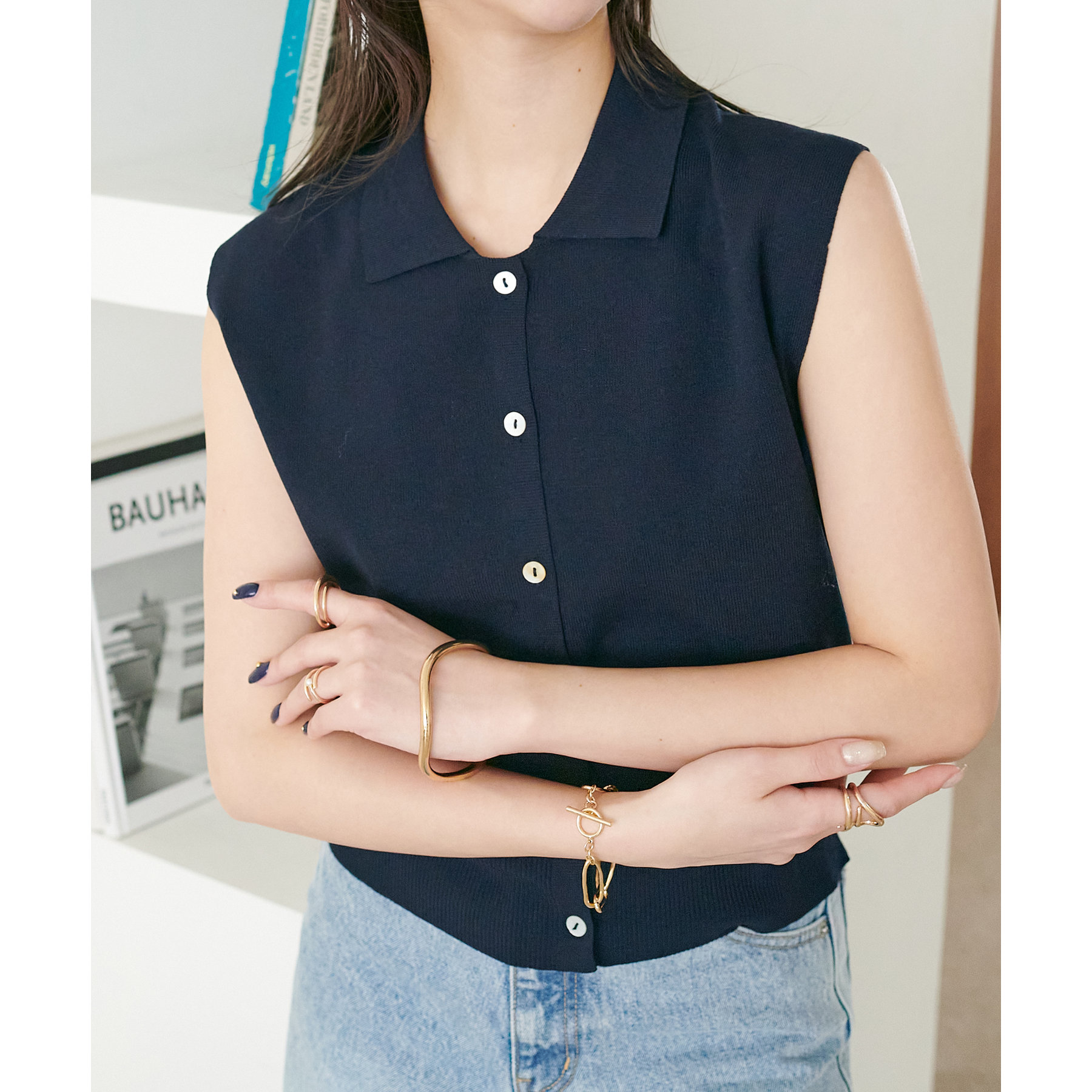 サラモチ衿付き前開きノースリーブ《WEB限定カラーあり》