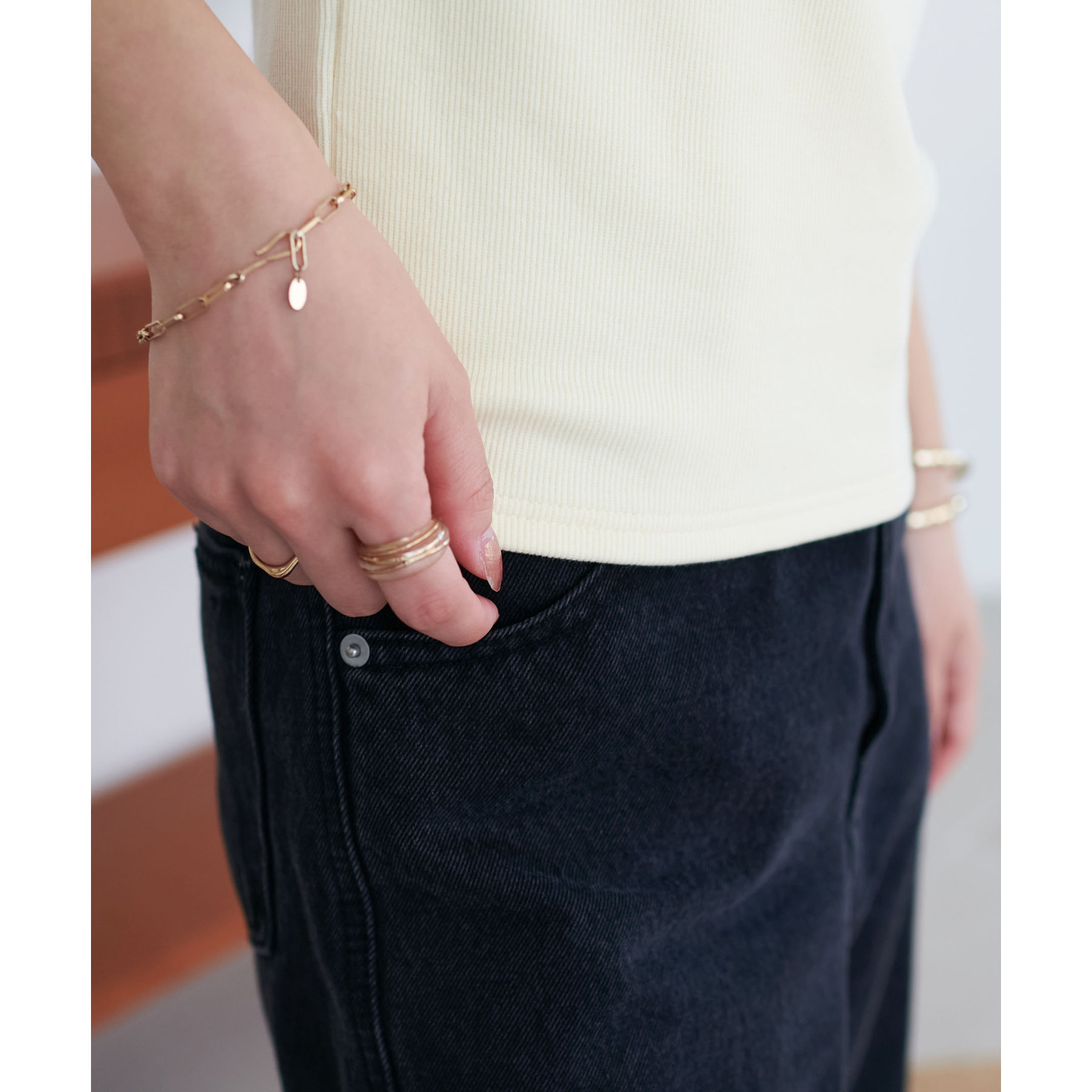 160cmスタッフ(Mサイズ着用):着丈はインもしやすく、アウトで着てももたつかない長さ。色違いで持っていて損なしの万能タンクです!