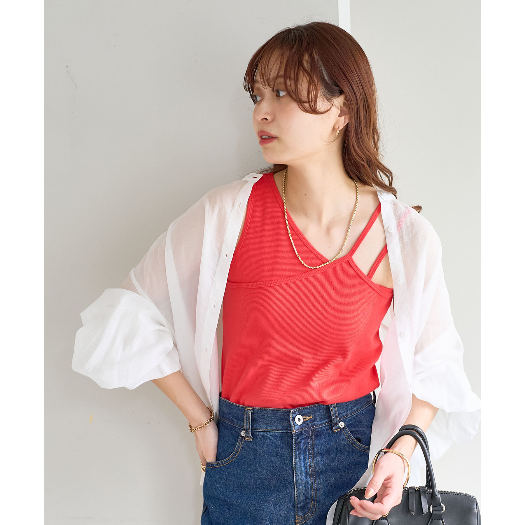 【WEB限定】ワンショルレイヤードカップ付タンクトップ