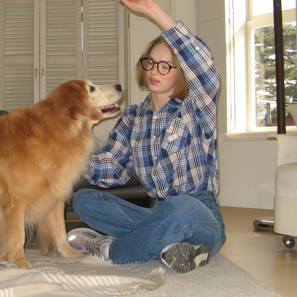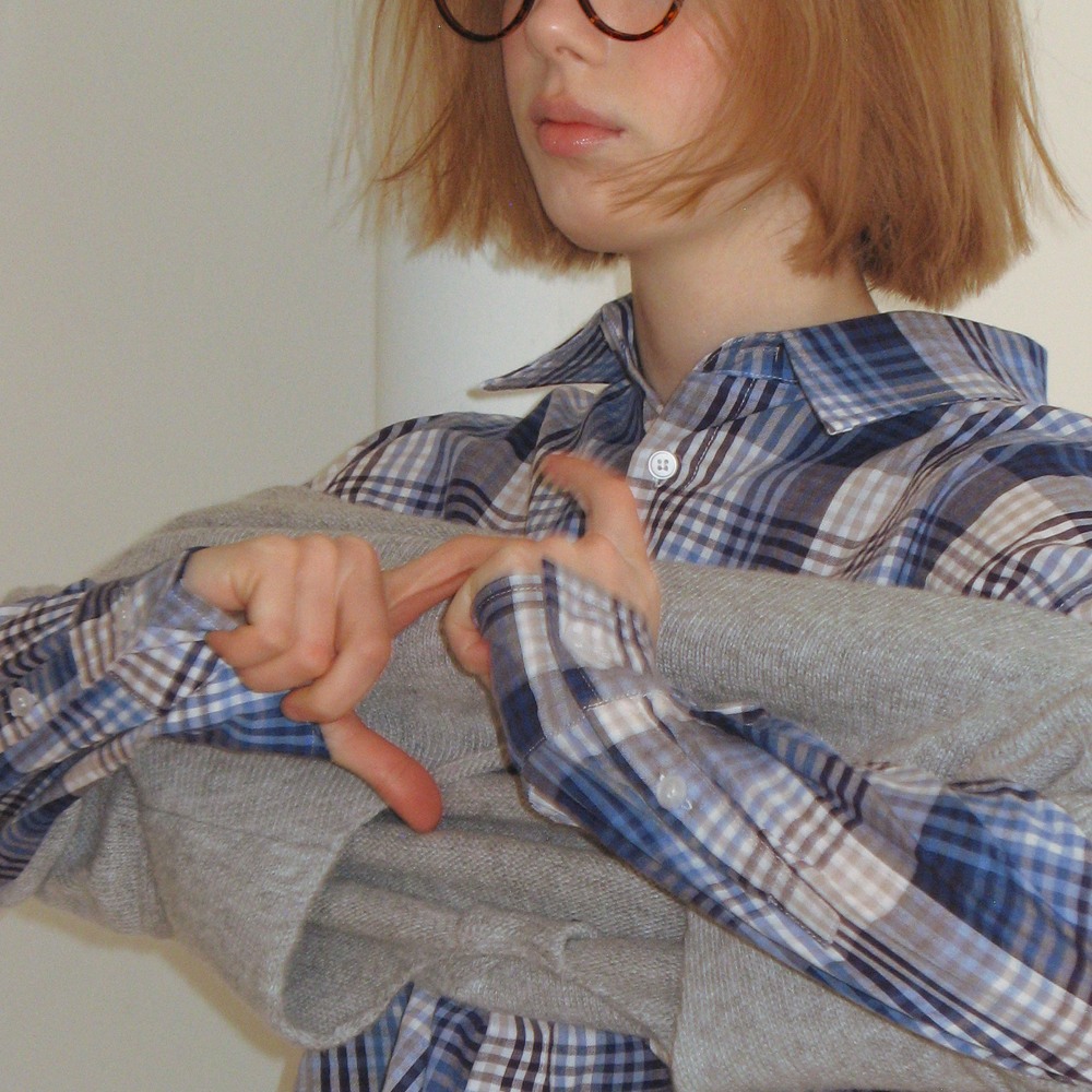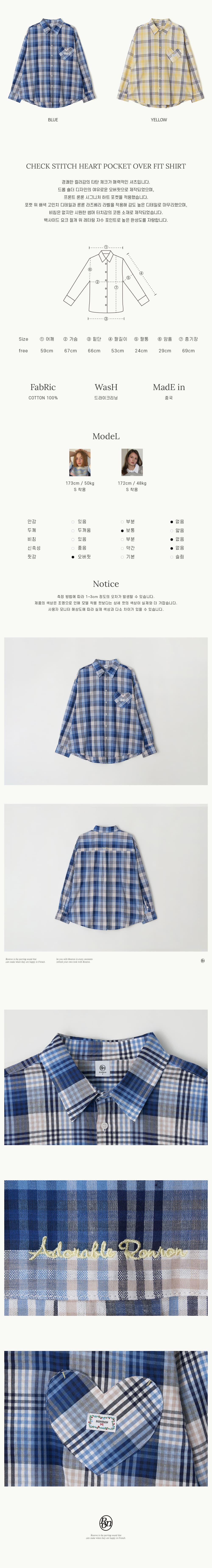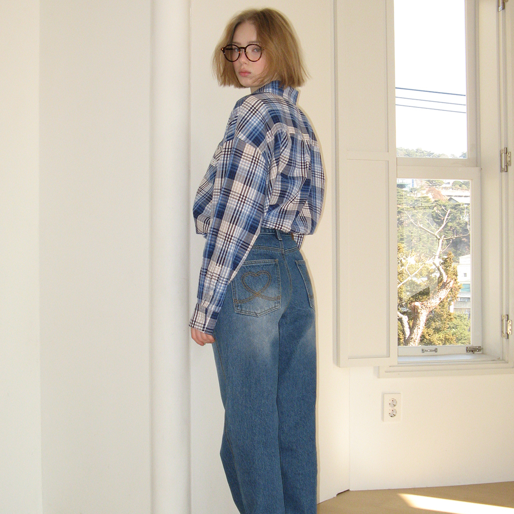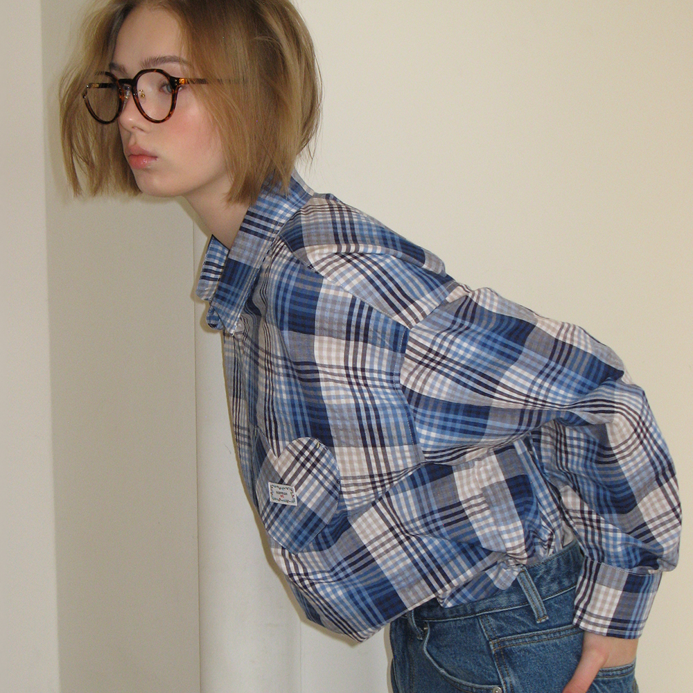 CHECK STITCH HEART POCKET OVER FIT SHIRT BLUE