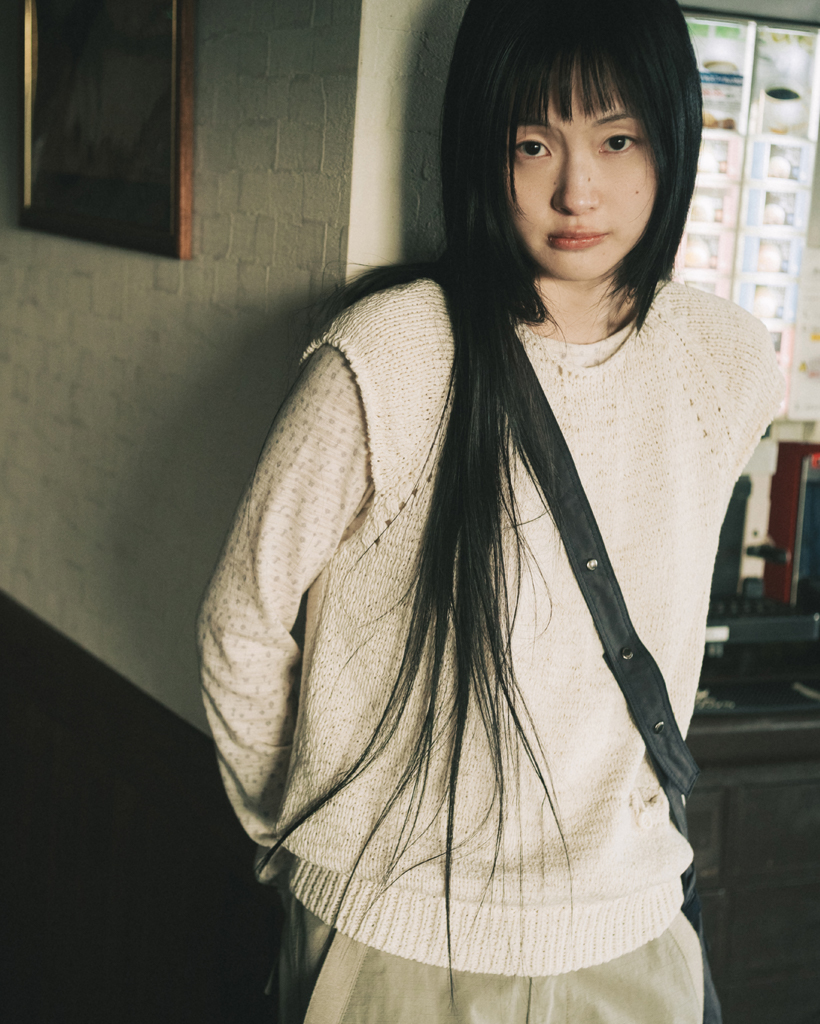 WEAVING POCKET CAP-SLEEVE KNIT, IVORY