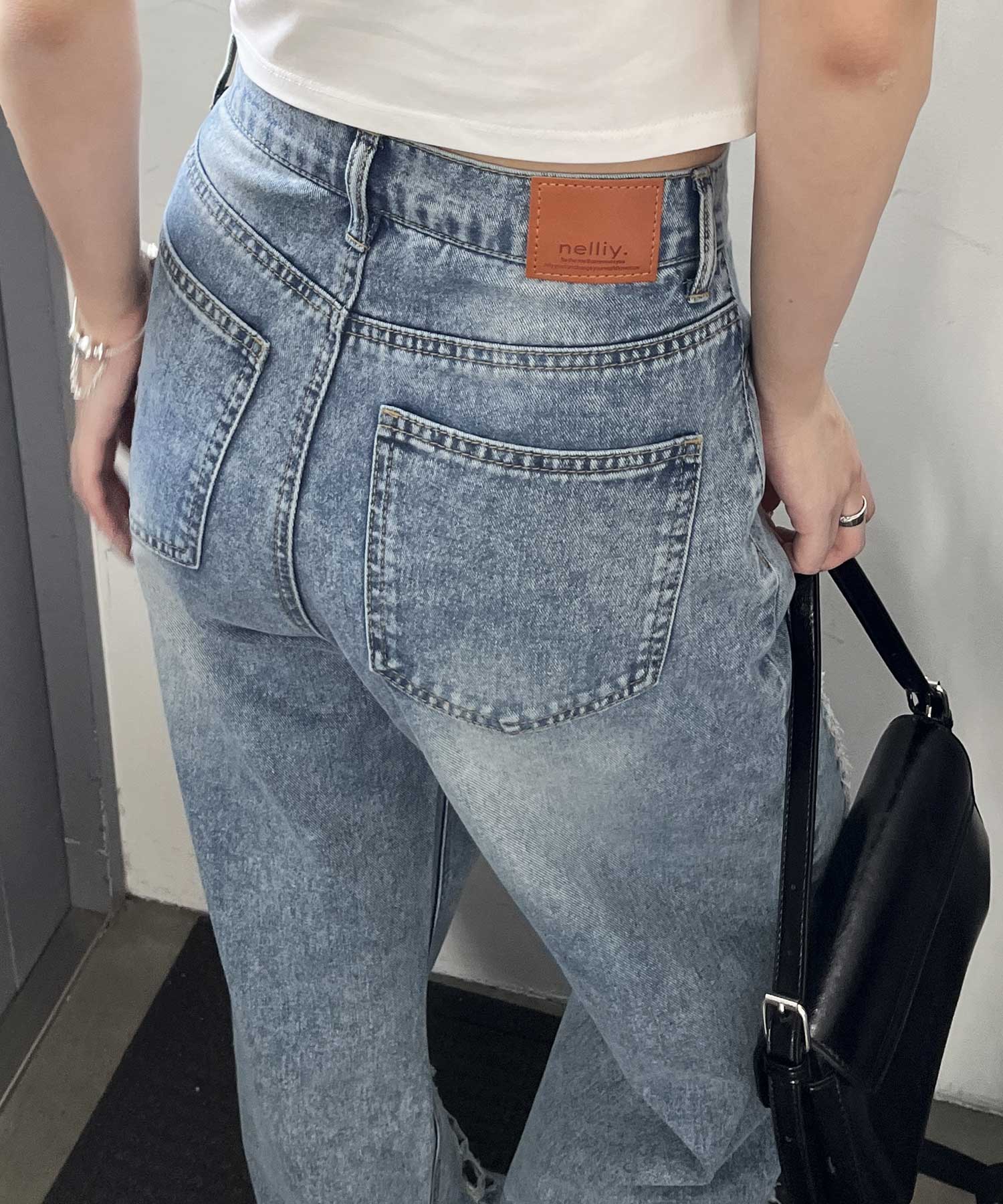 オリジナルパッチダメージワイドデニム