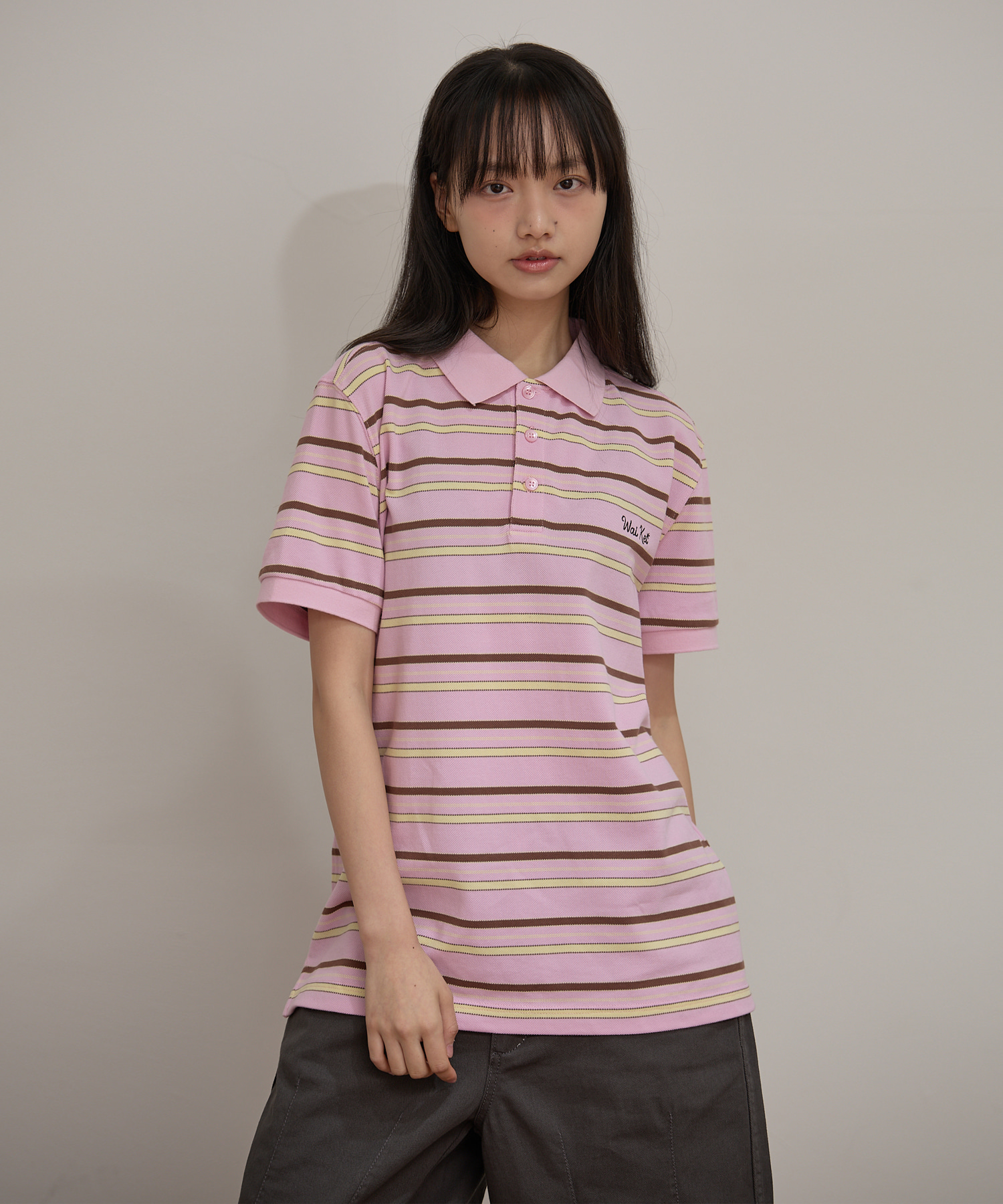 Stripe Logo Pique Half T-shirt PINK