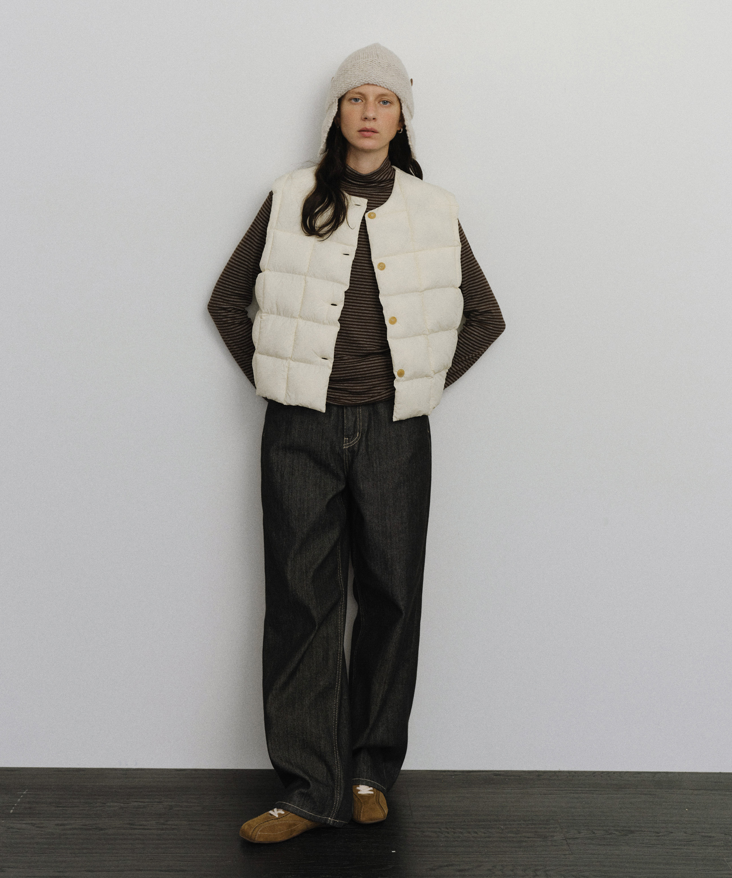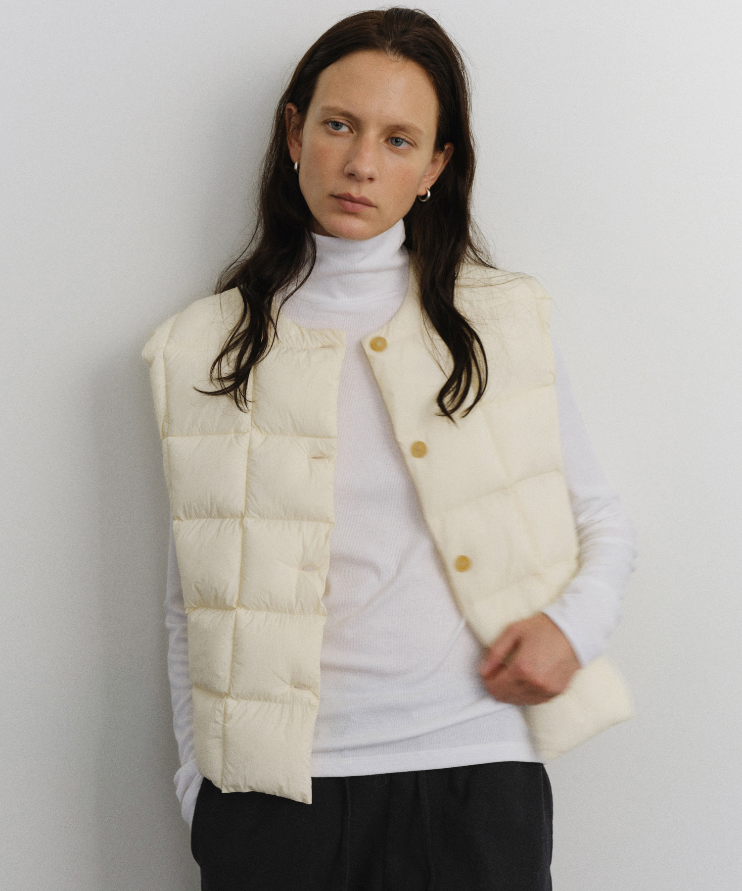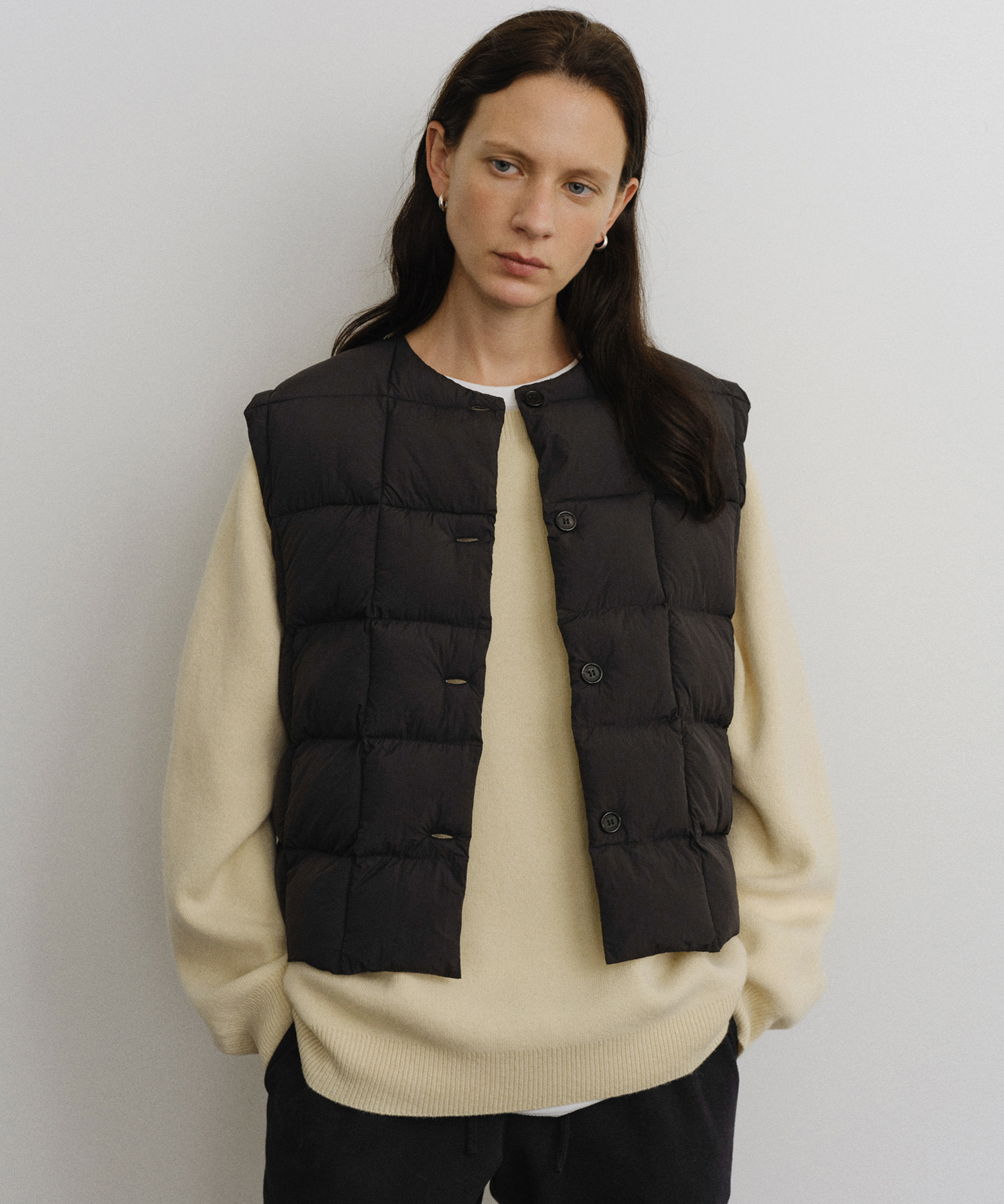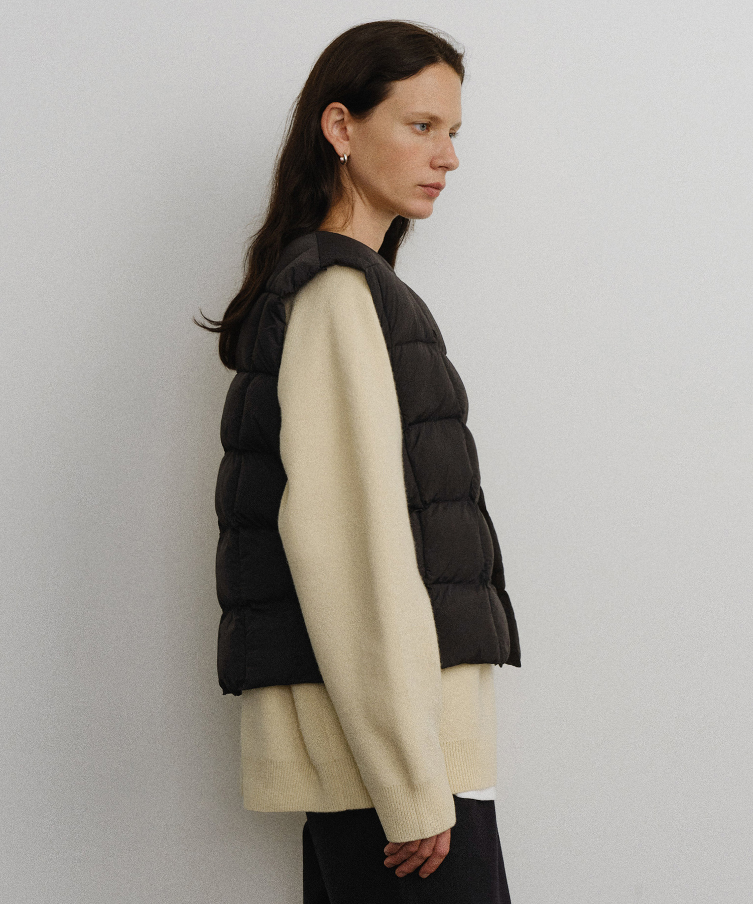 - 冬のアウターの中に重ねるインナーパディングとしても、季節の変わり目の単独アウターとしても使える実用的なアイテムです。