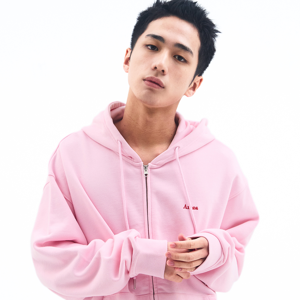 BASIC SMALL LOGO HOODIE ZIP UP PINK