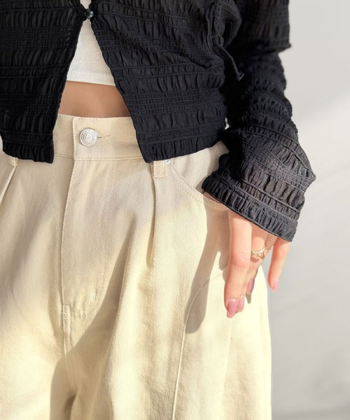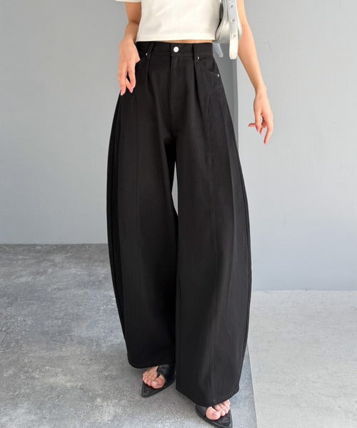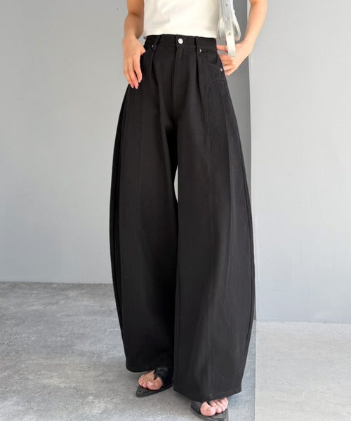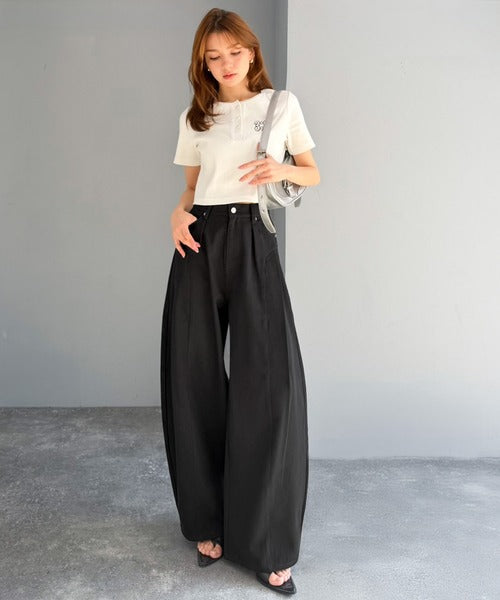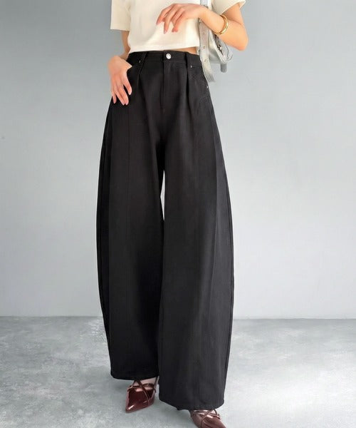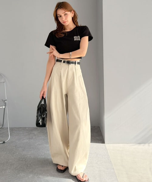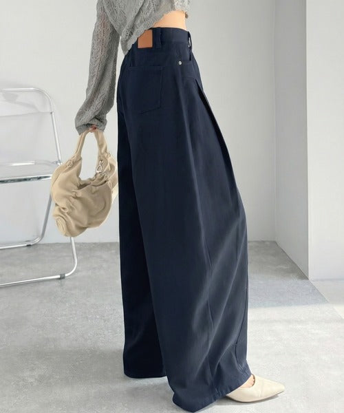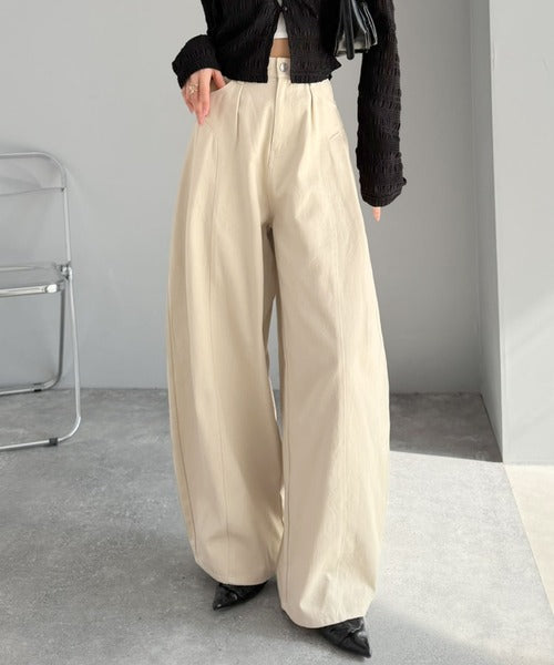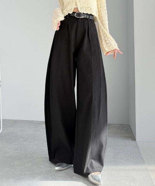 立体感のあるシルエットに仕上げた着回しの効くタックパンツ◎