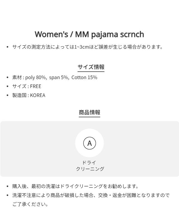 MM Pajama Set と同じ素材のヘアシュシュです。