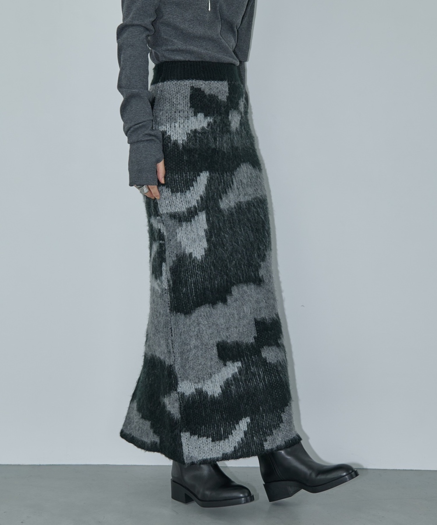 モヘアタッチランダムアートニットロングスカート