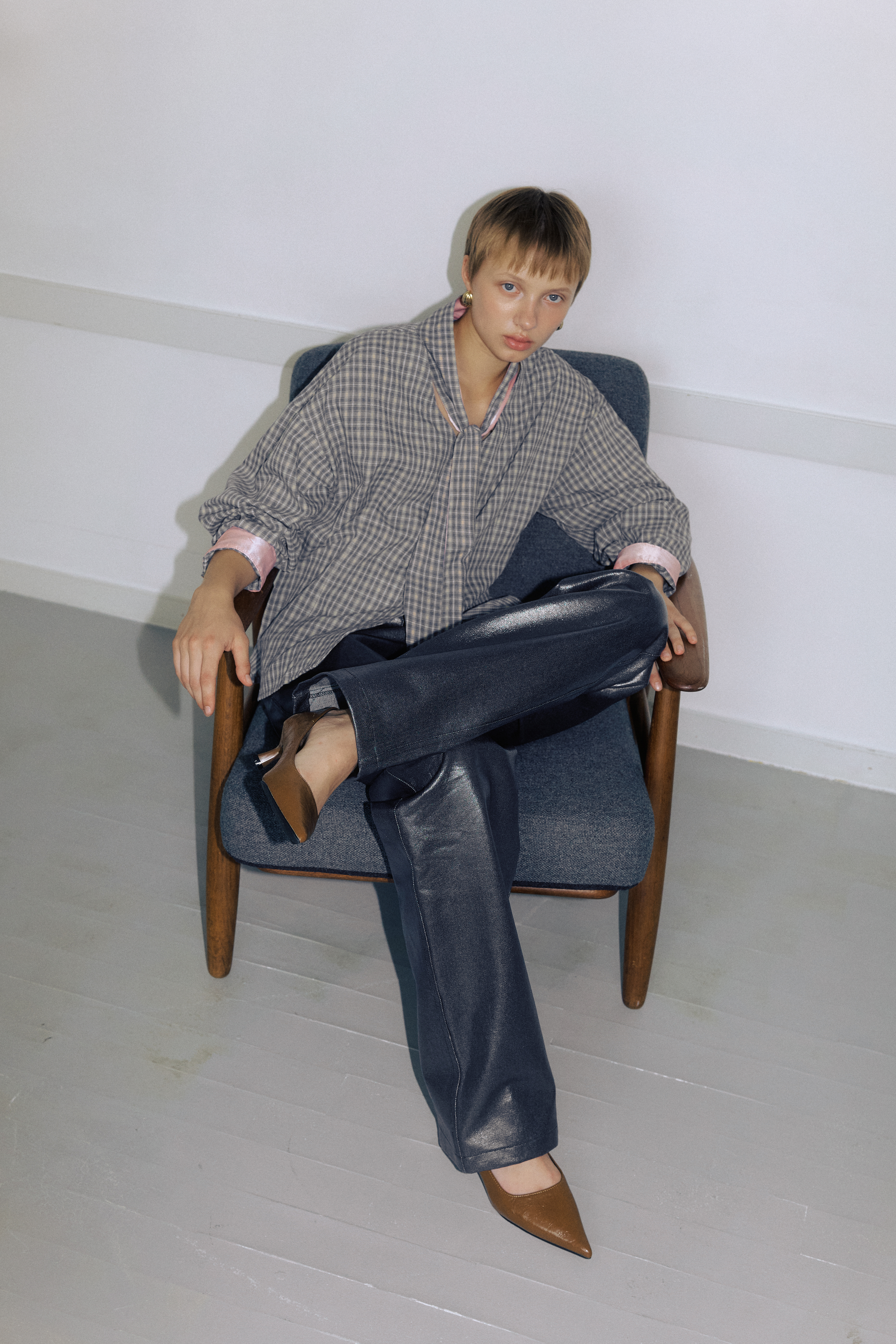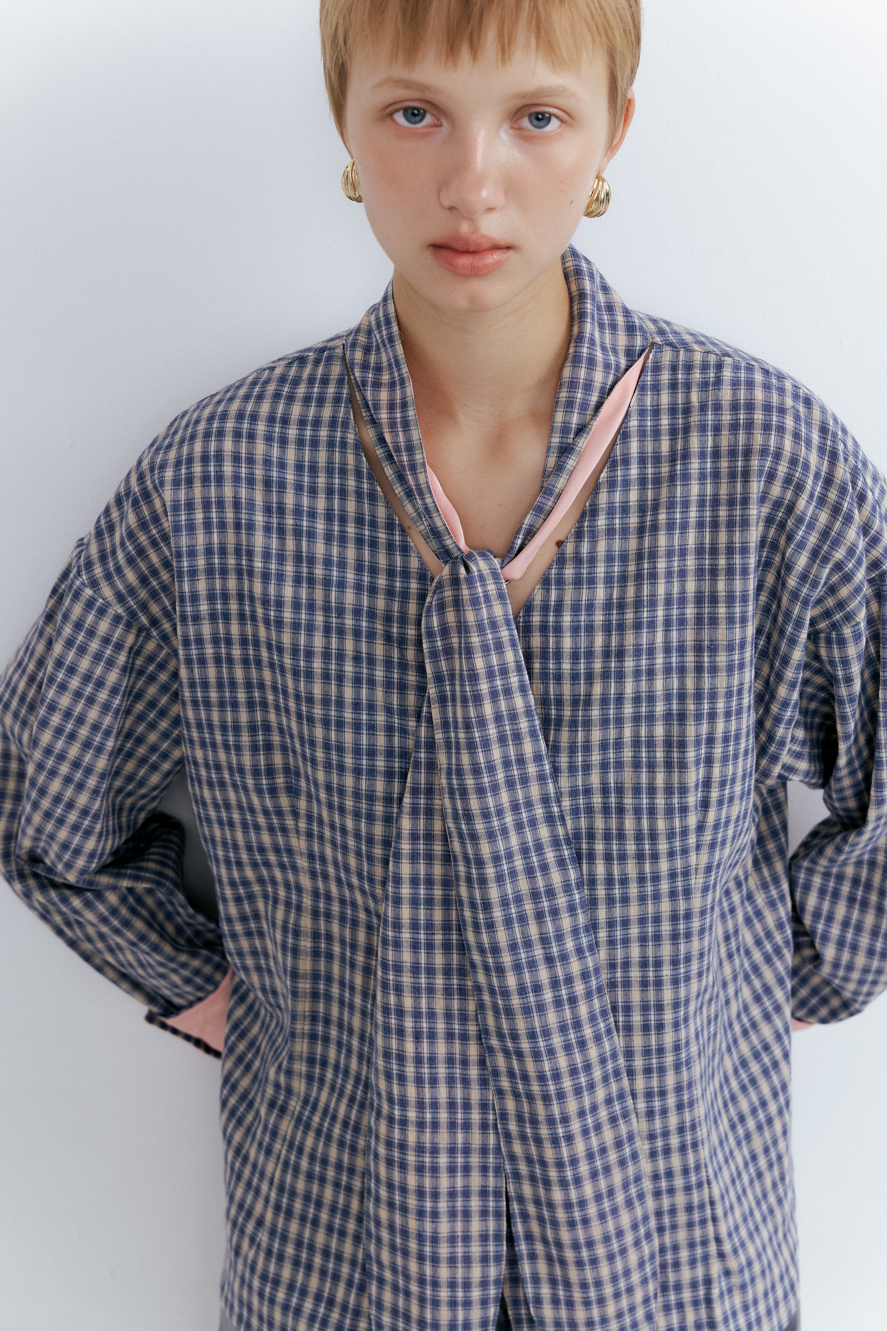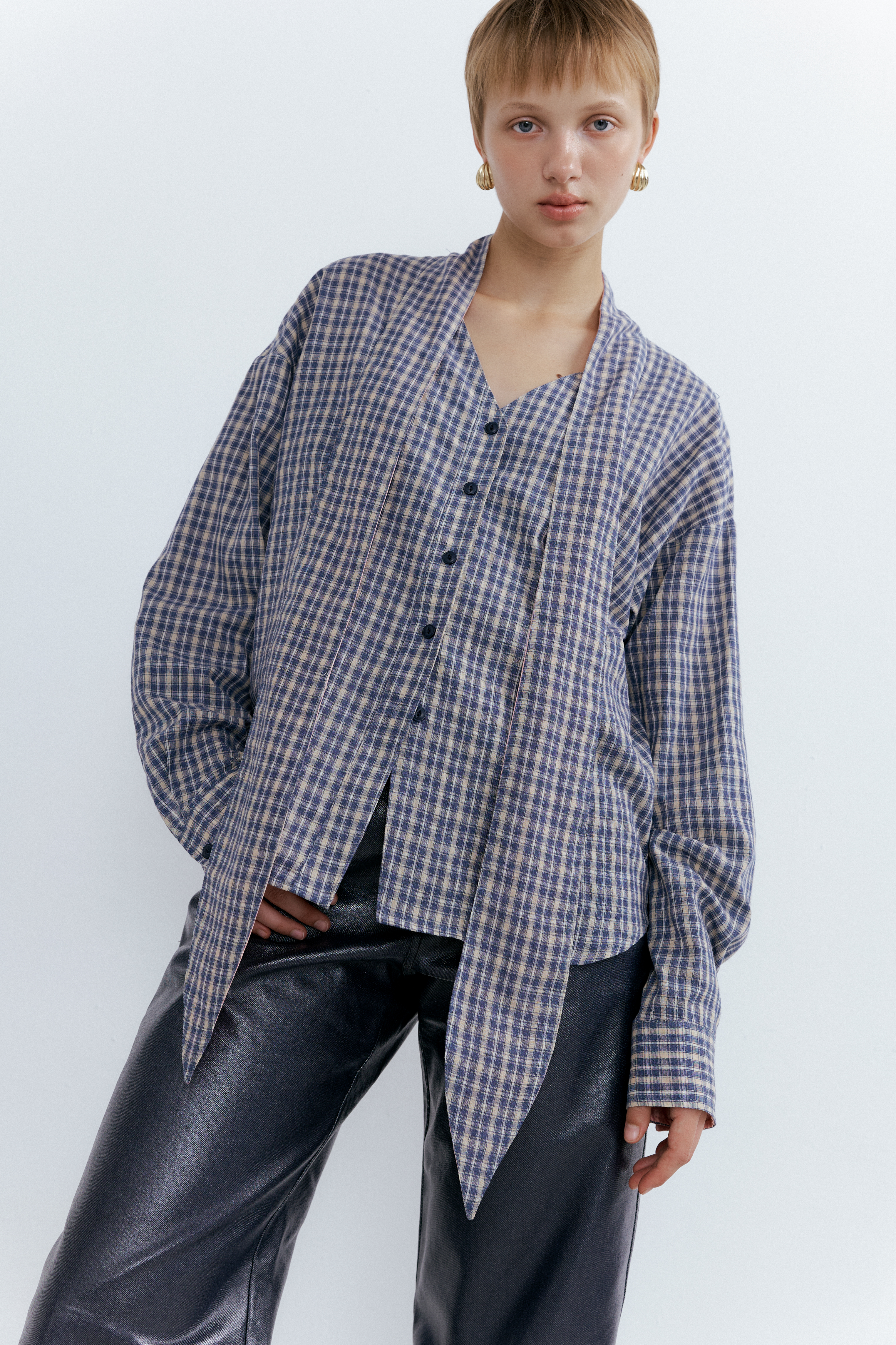Heritage Check Tie Blouse_Faded Navy