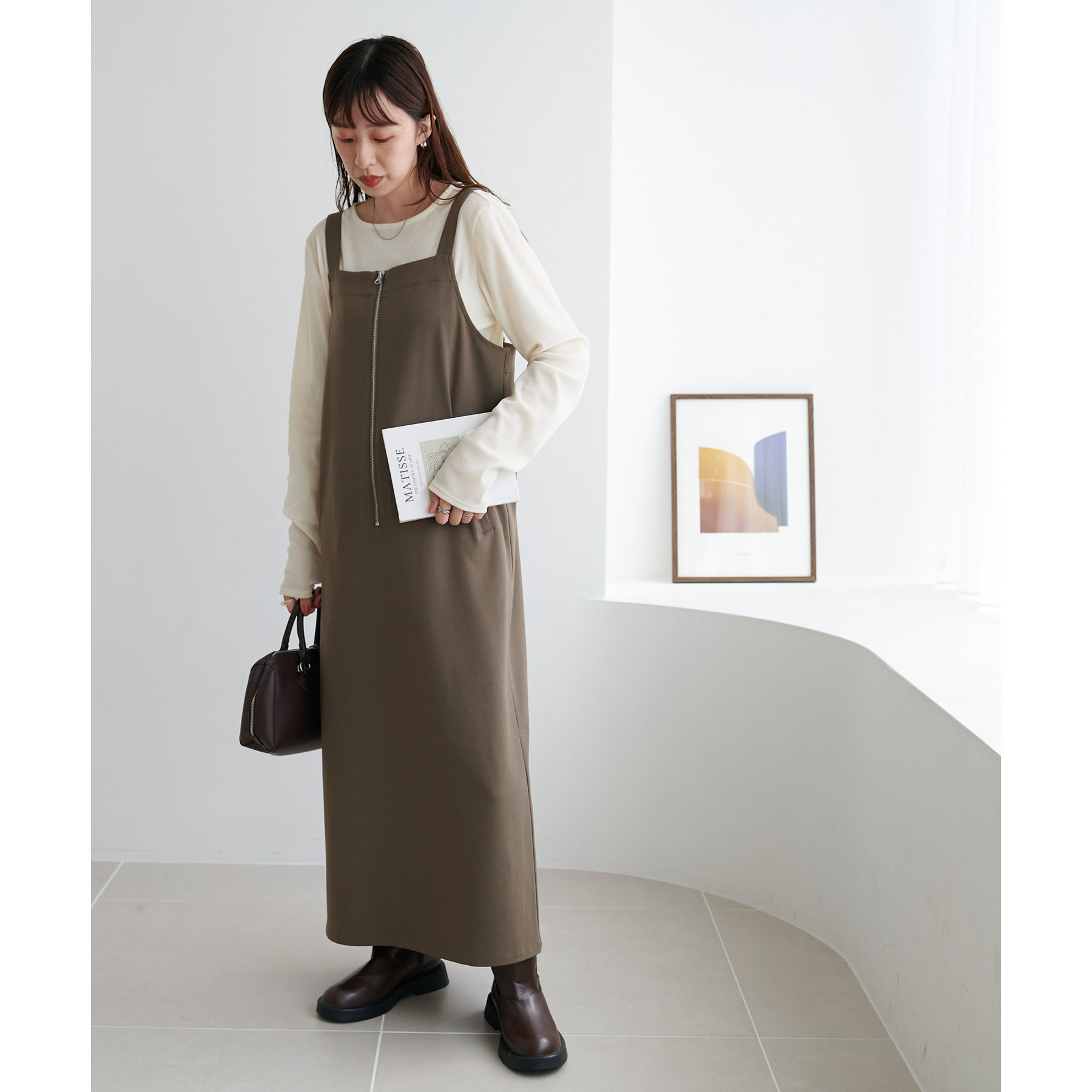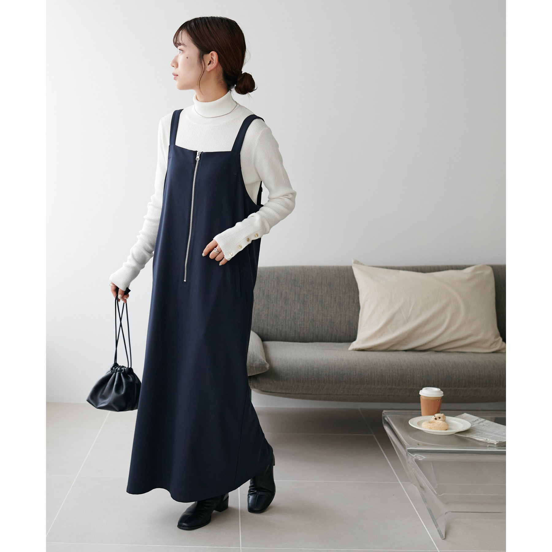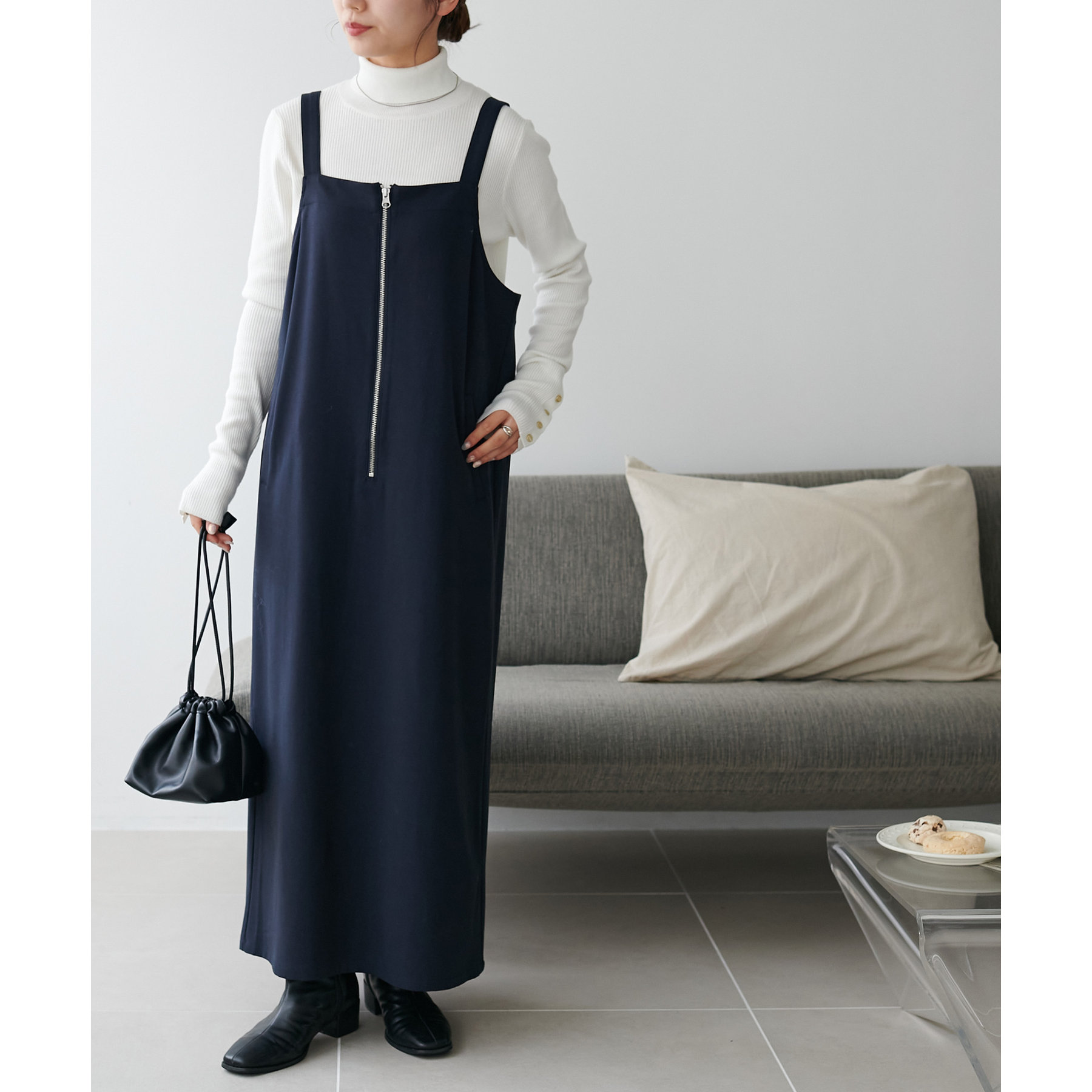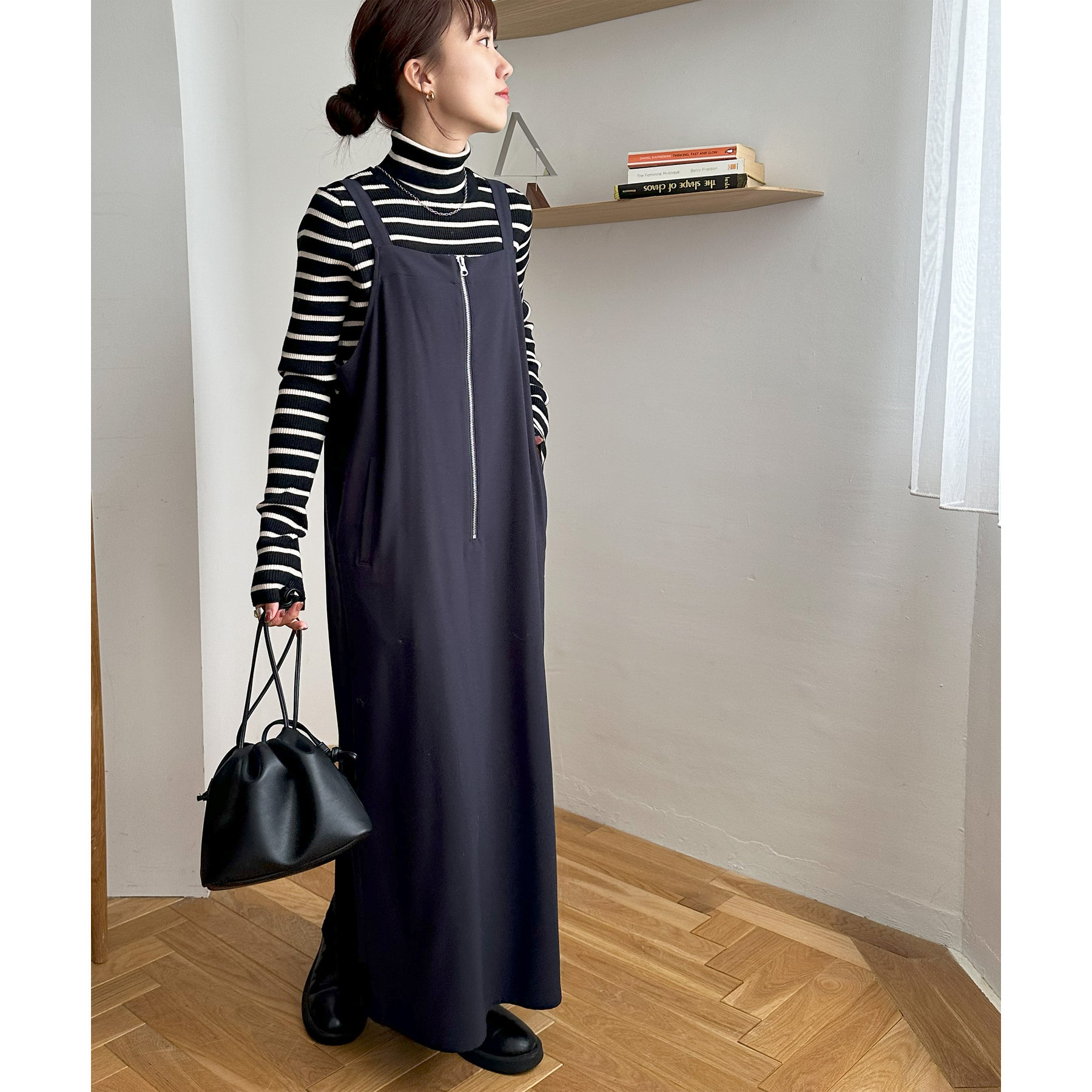 162cmスタッフ:高身長も着やすい着丈のワンピースは、フロントがジップ仕様なので、着脱がしやすいです〇