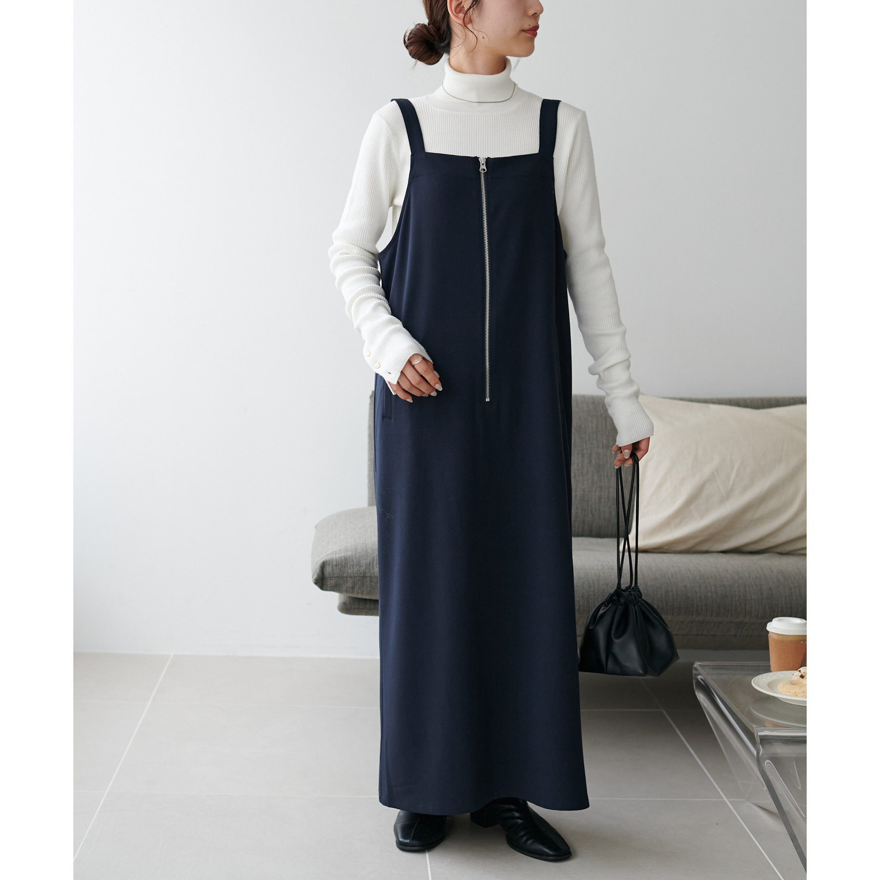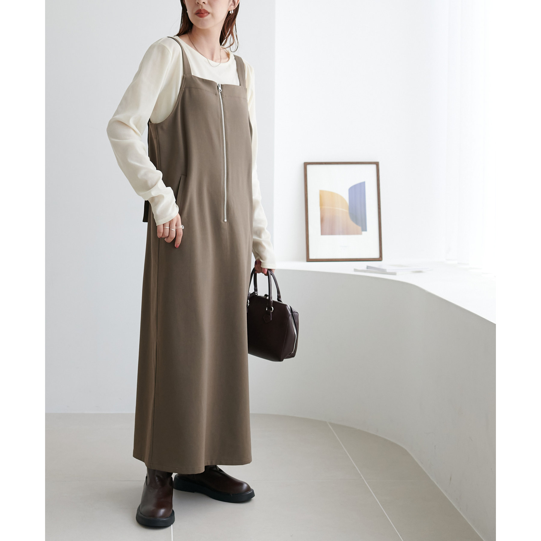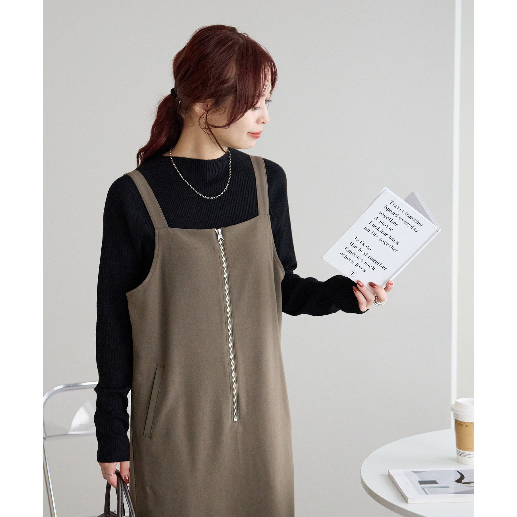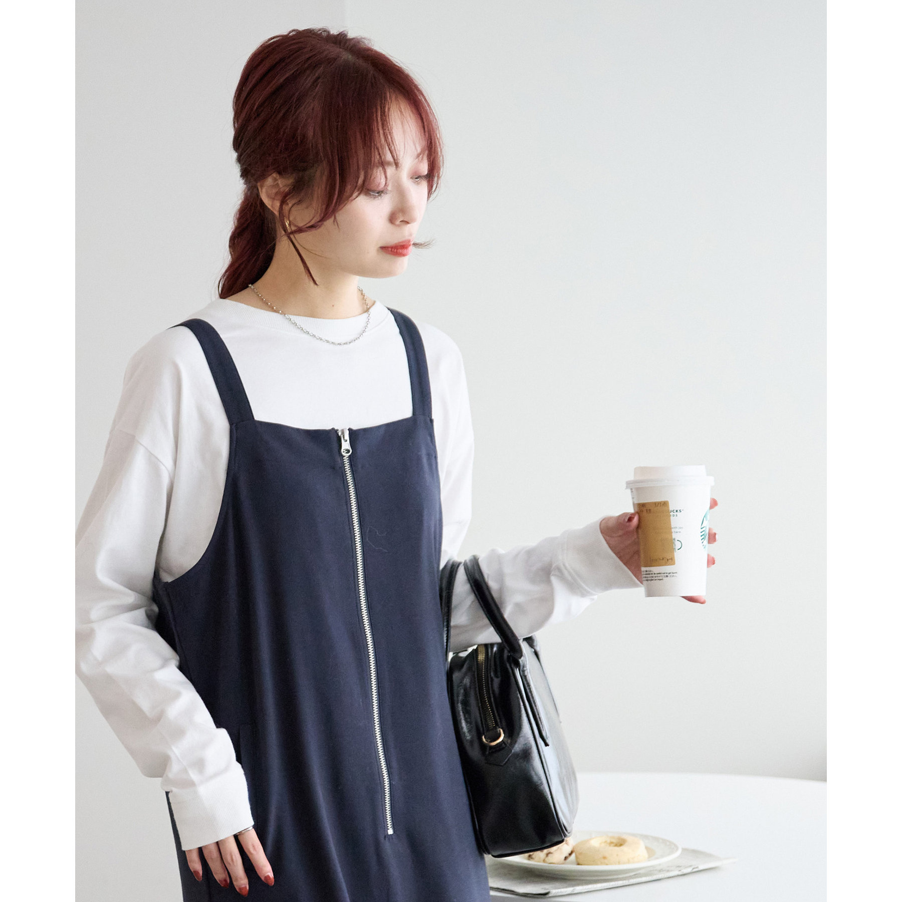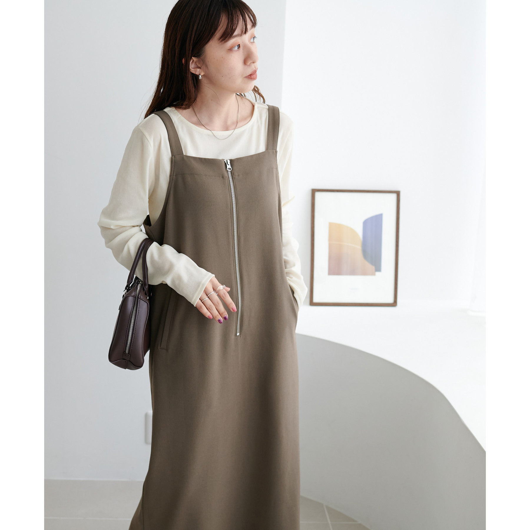 162cmスタッフ:高身長も着やすい着丈のワンピースは、フロントがジップ仕様なので、着脱がしやすいです〇