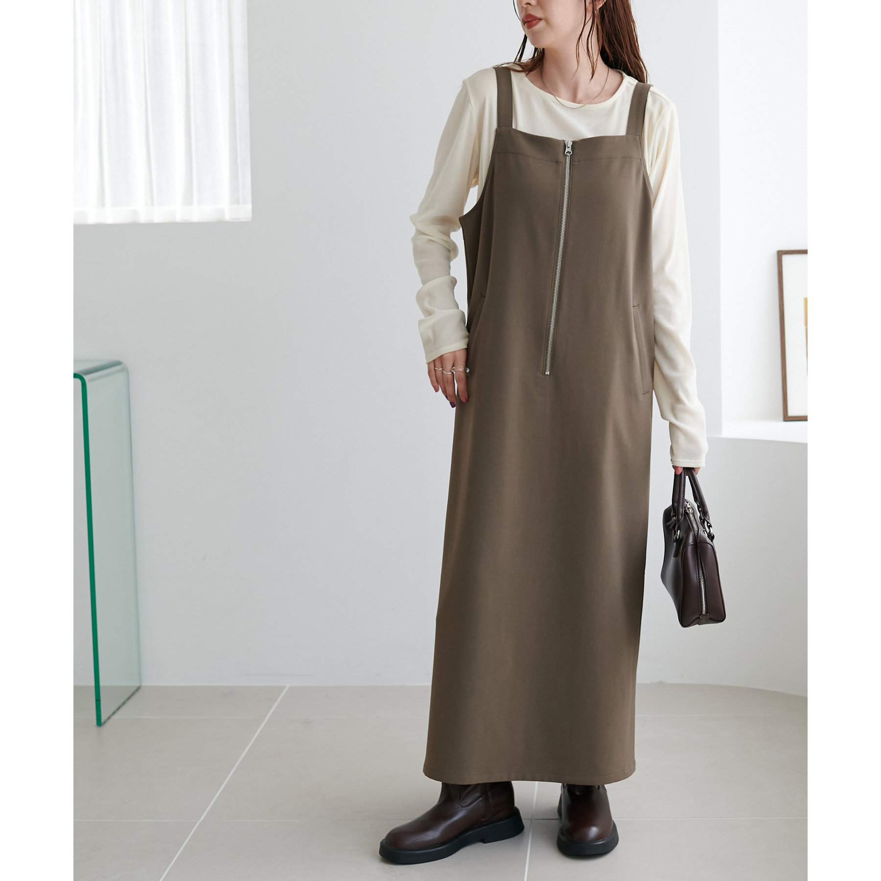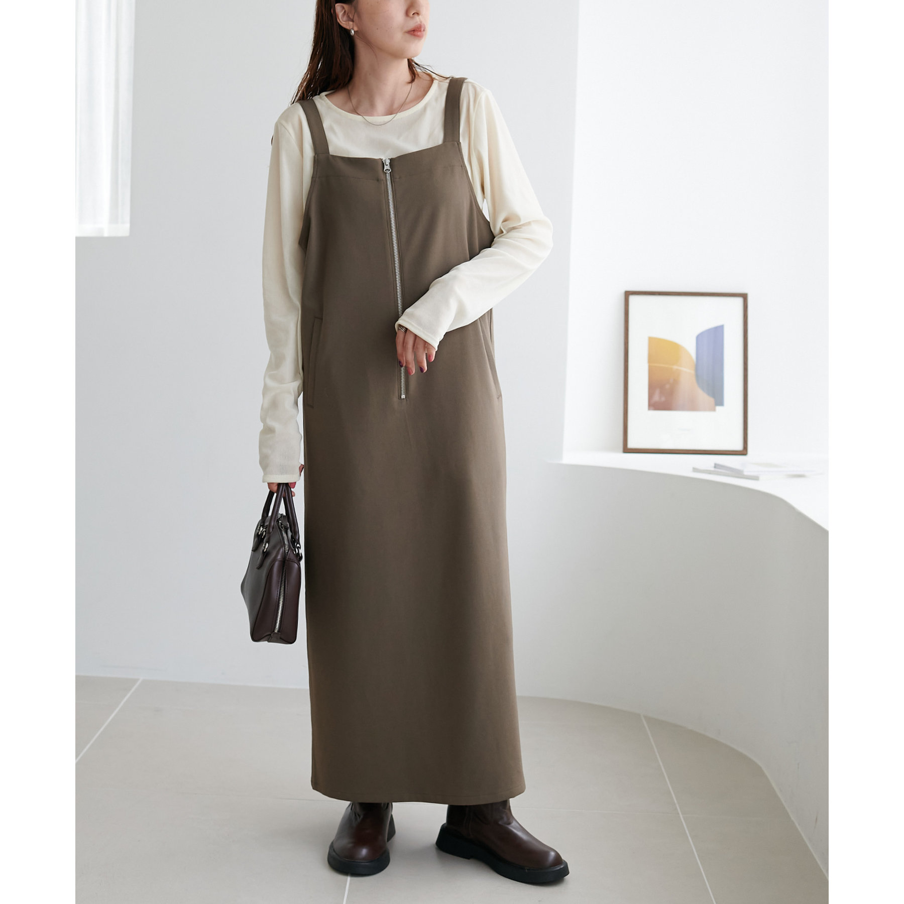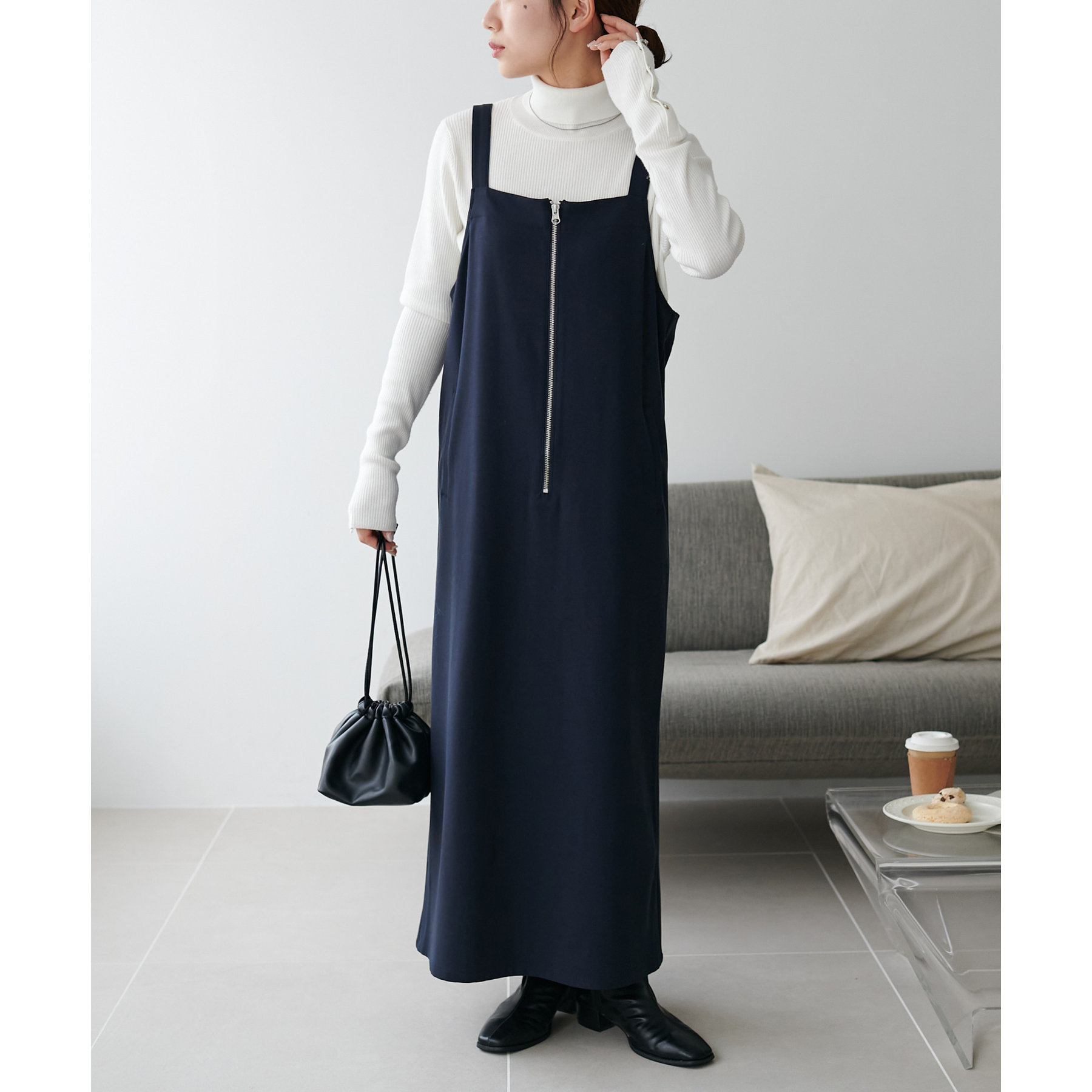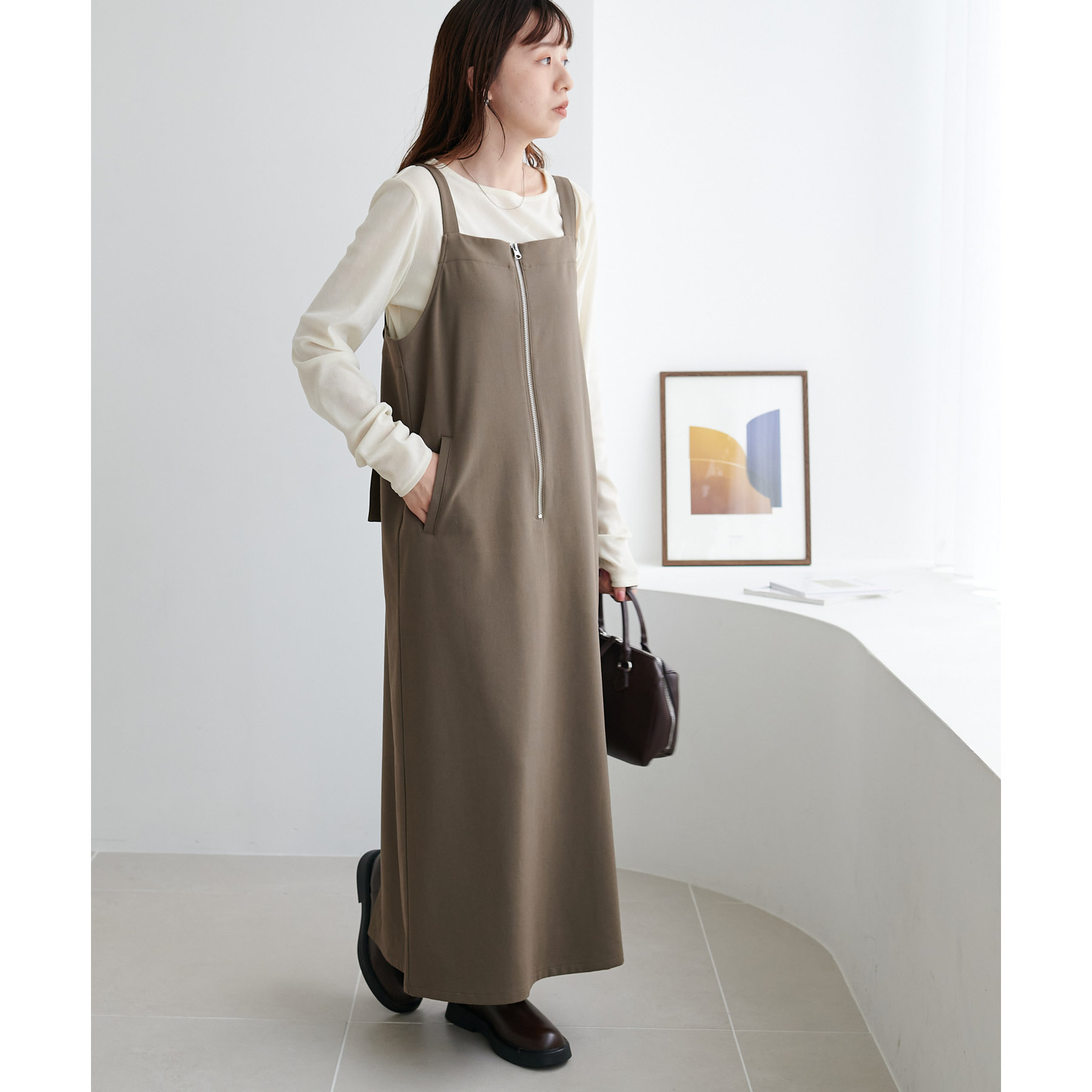 162cmスタッフ:高身長も着やすい着丈のワンピースは、フロントがジップ仕様なので、着脱がしやすいです〇