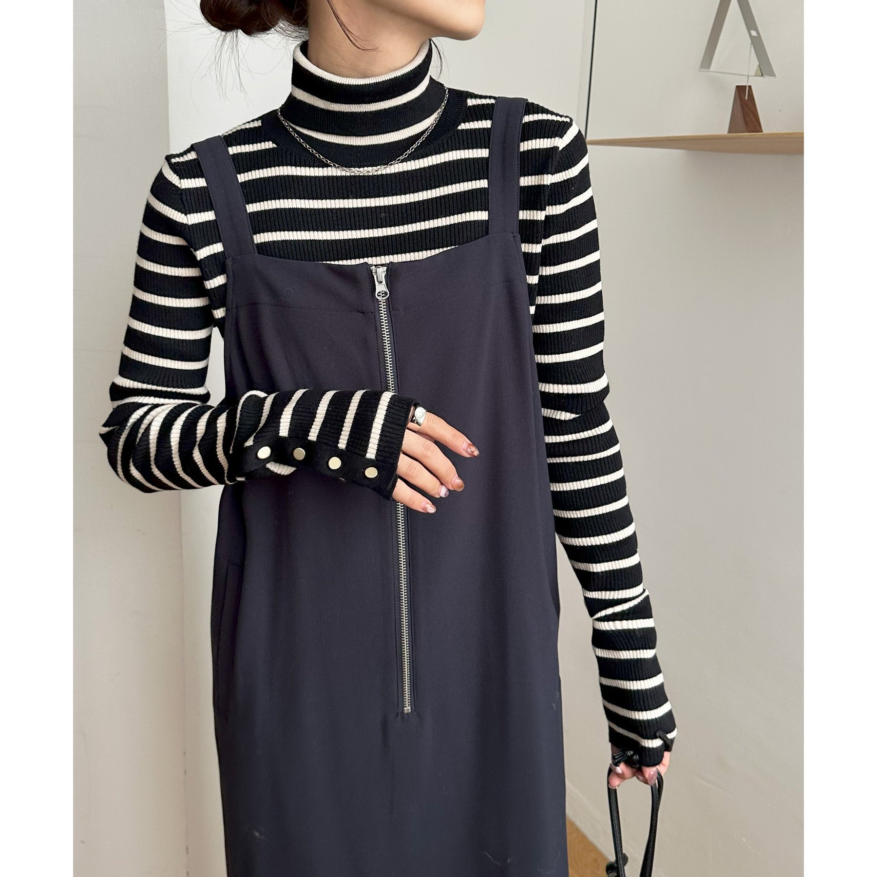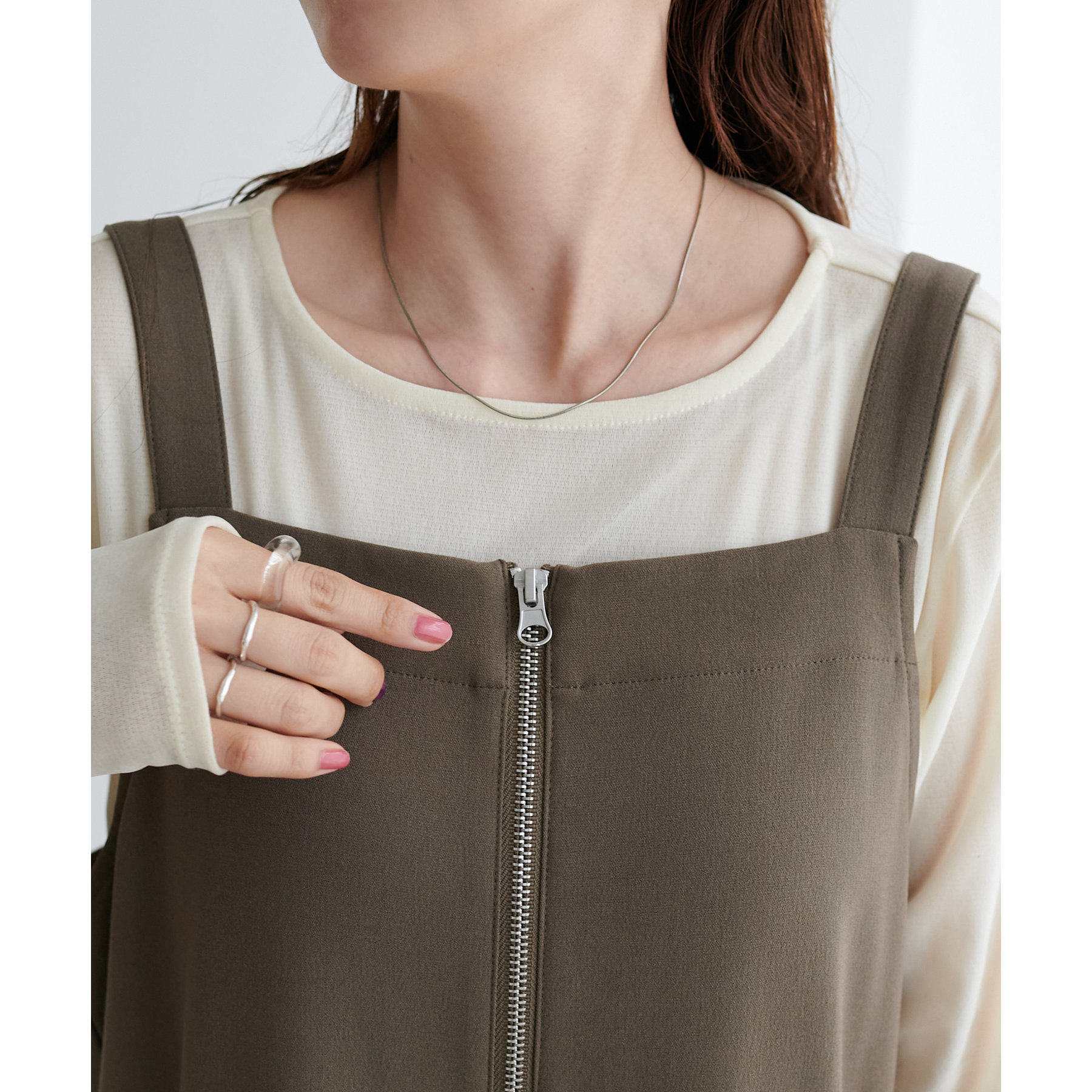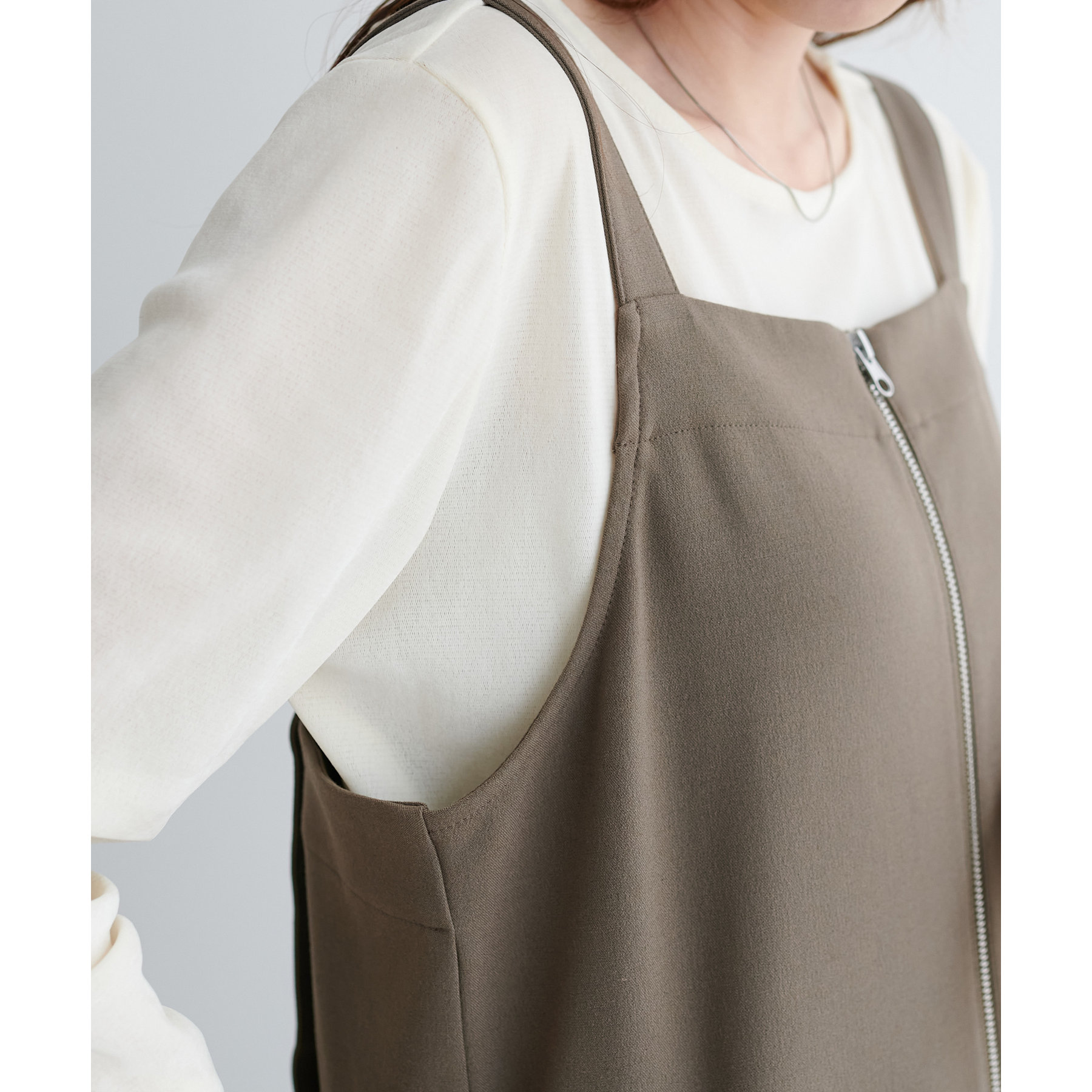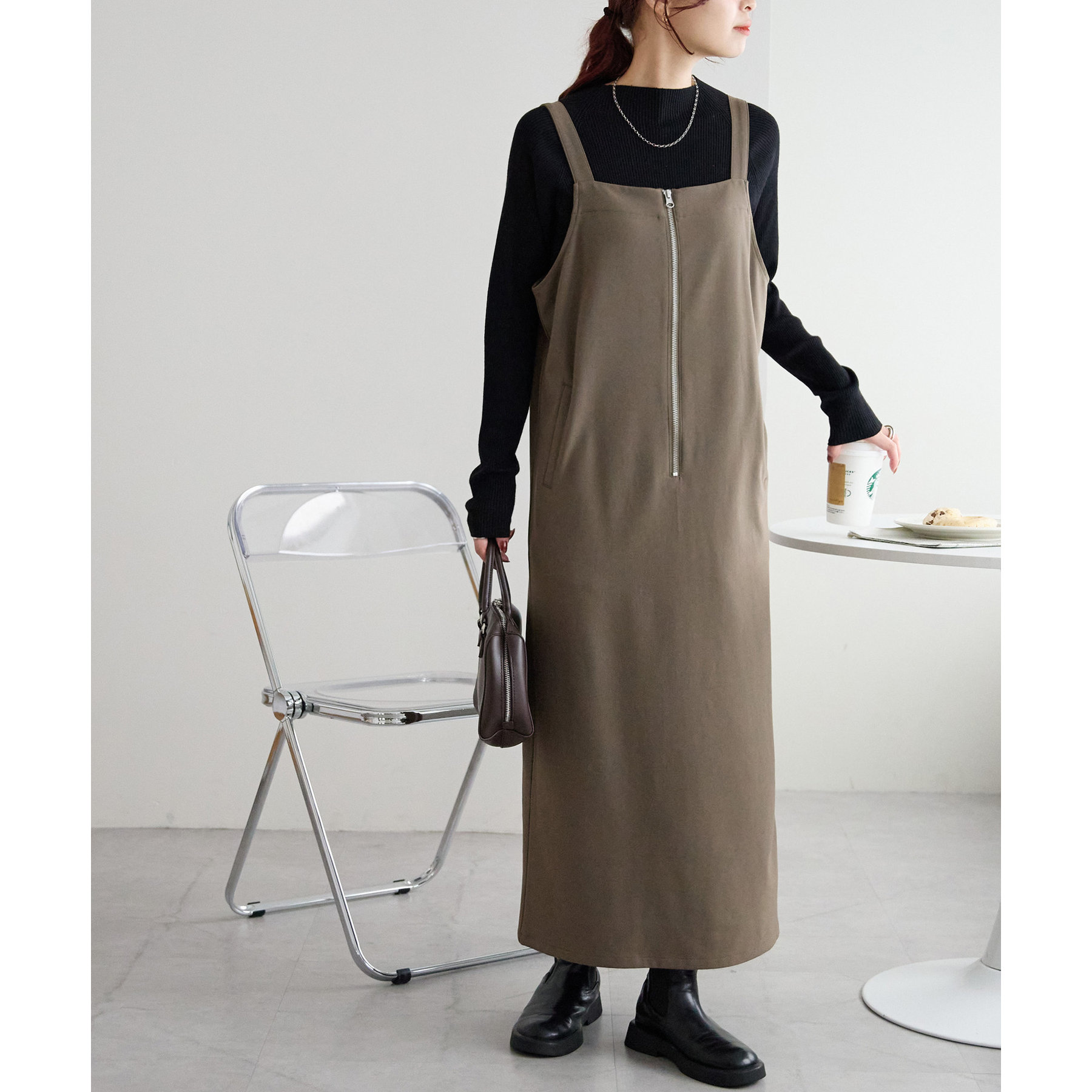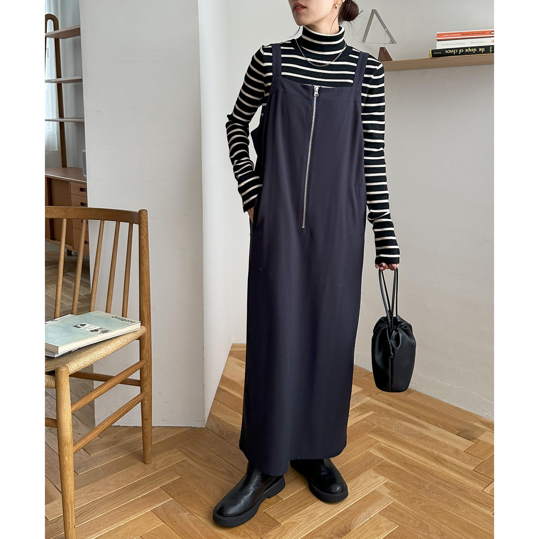 162cmスタッフ:高身長も着やすい着丈のワンピースは、フロントがジップ仕様なので、着脱がしやすいです〇
