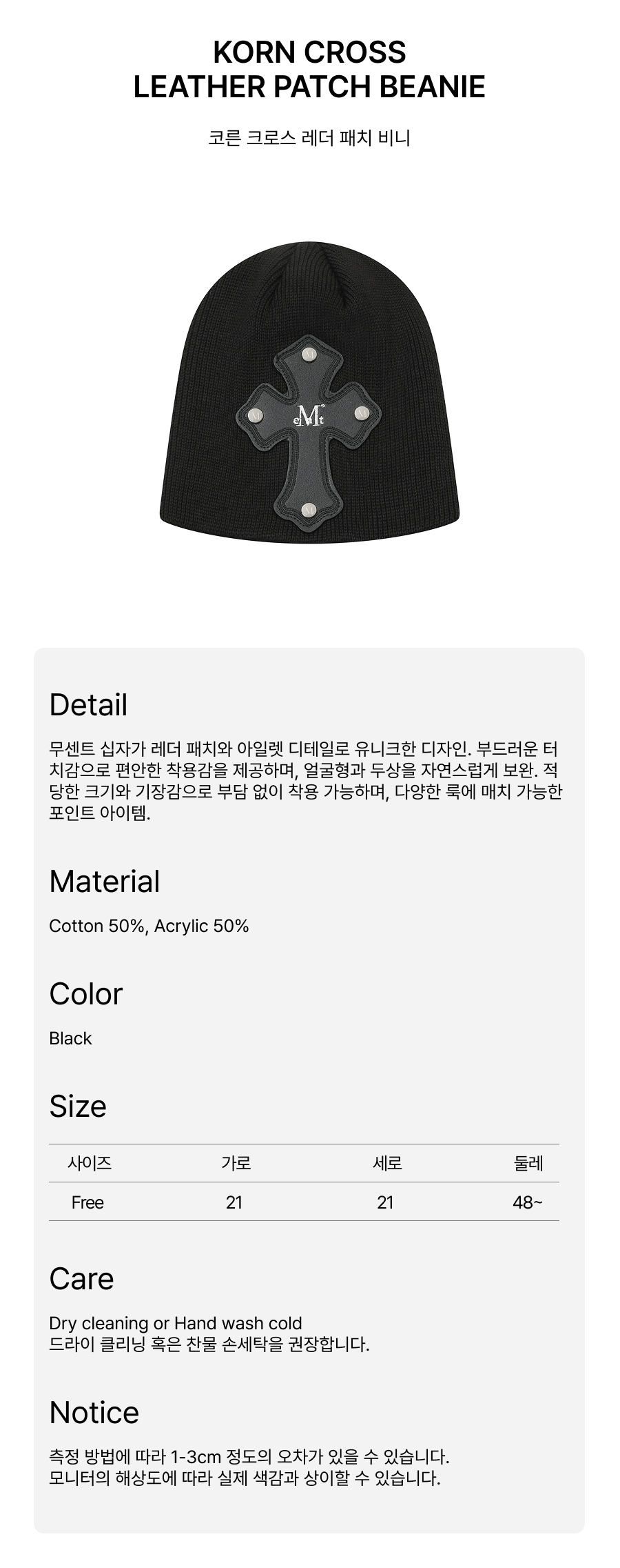 | 소재 | 면 50%, 아크릴 50% |