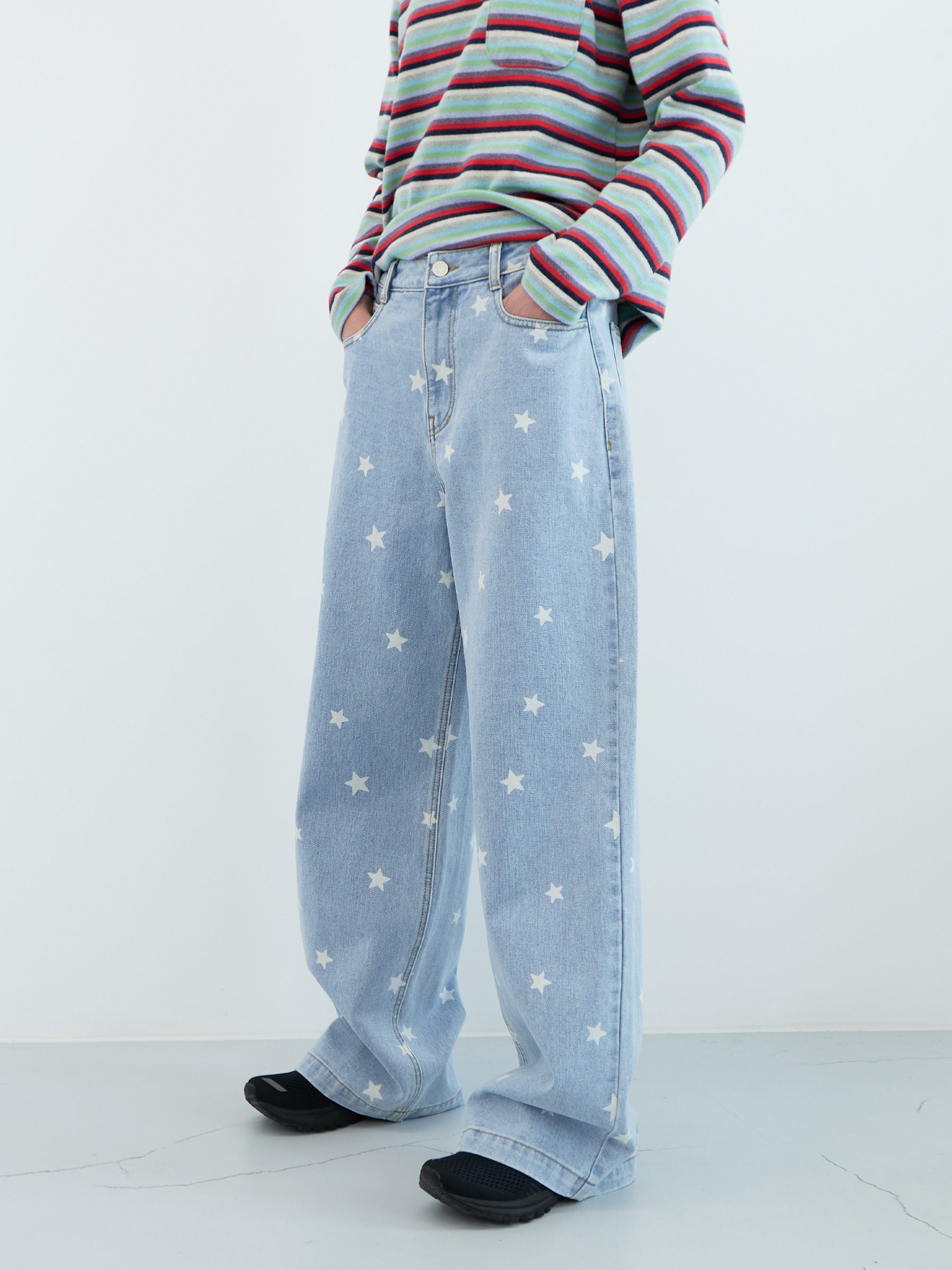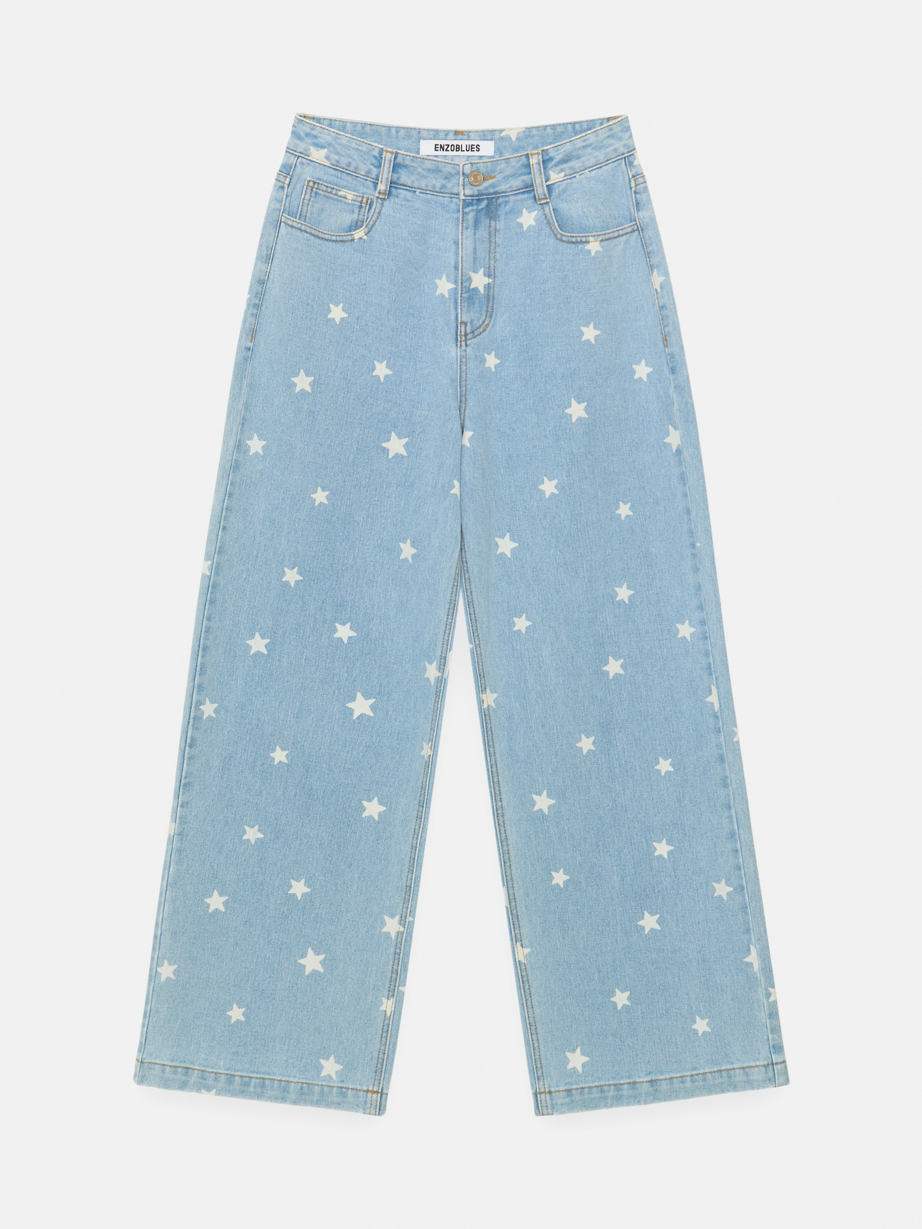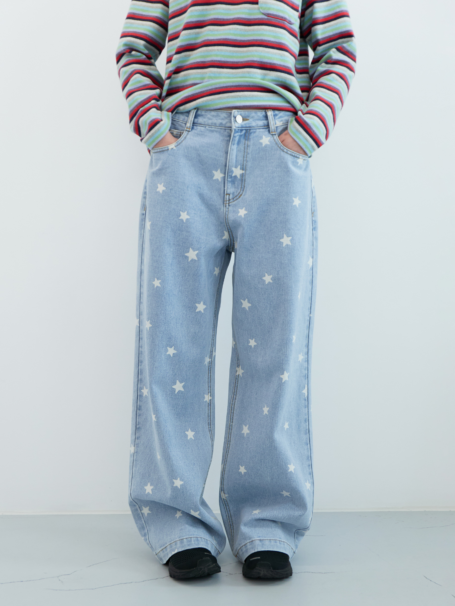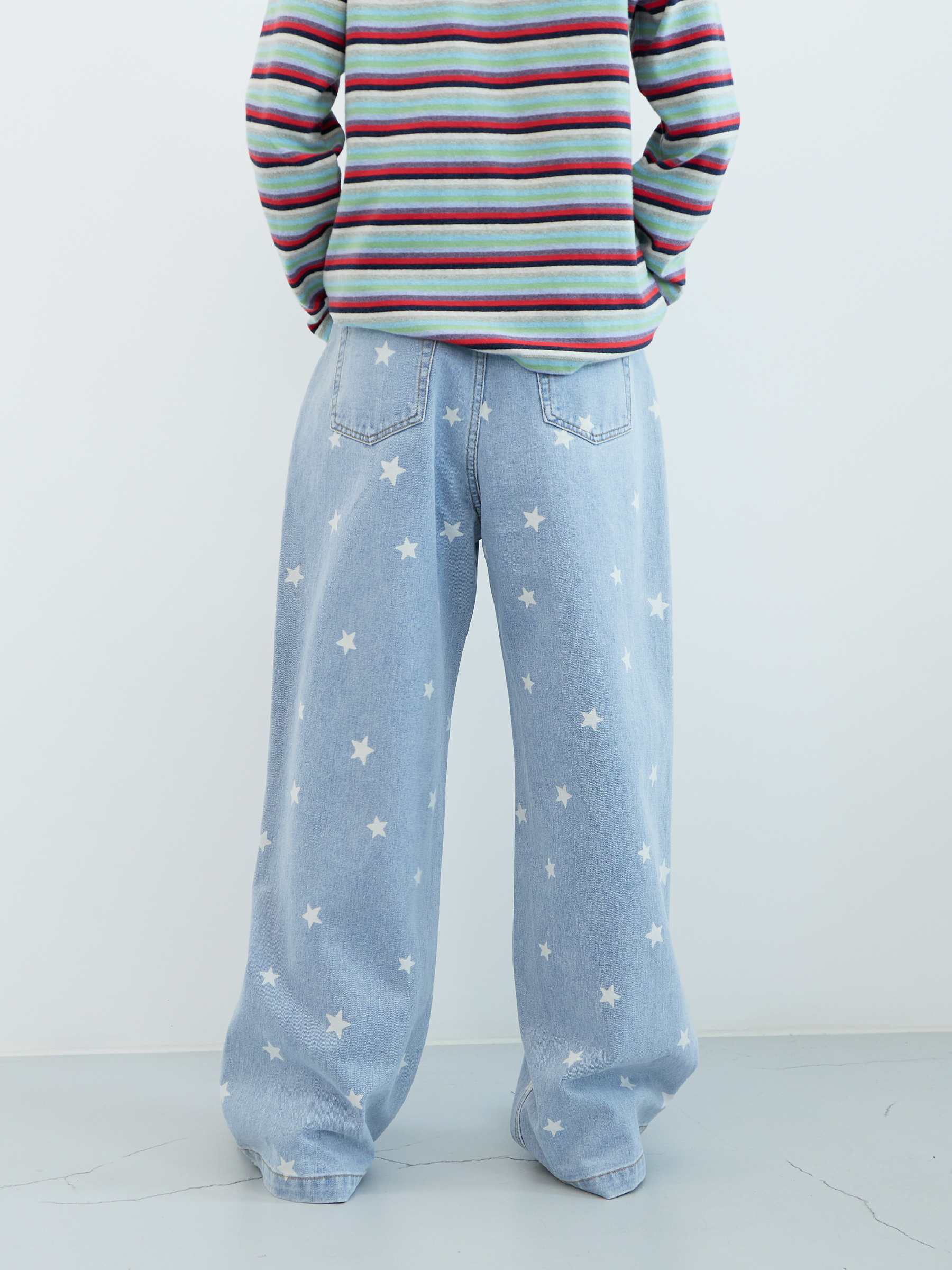 Star Wide Denim Pants (Light Blue)