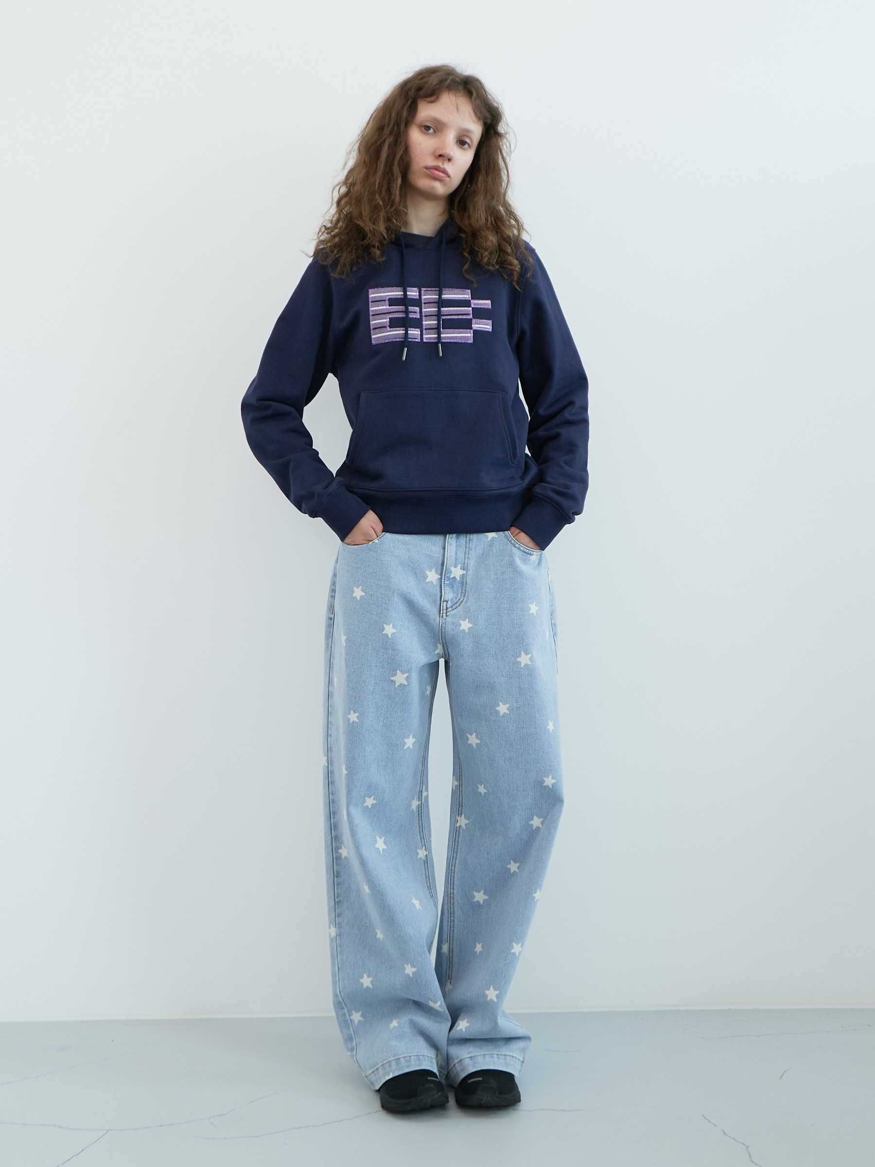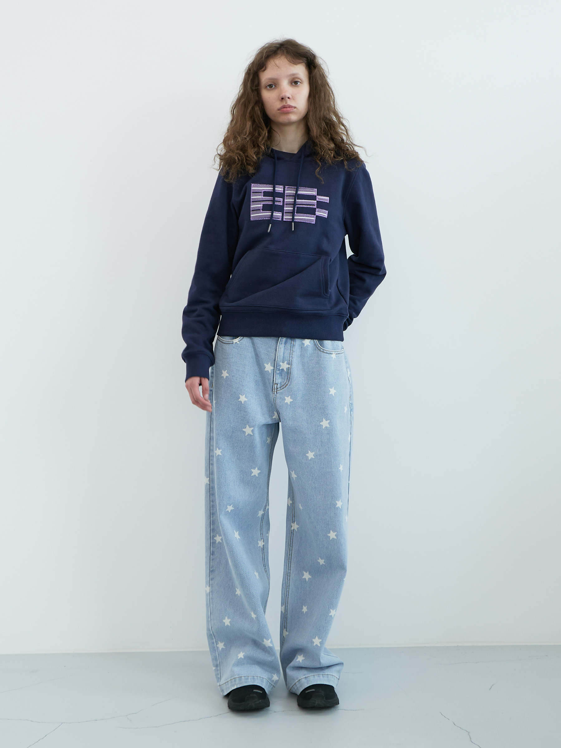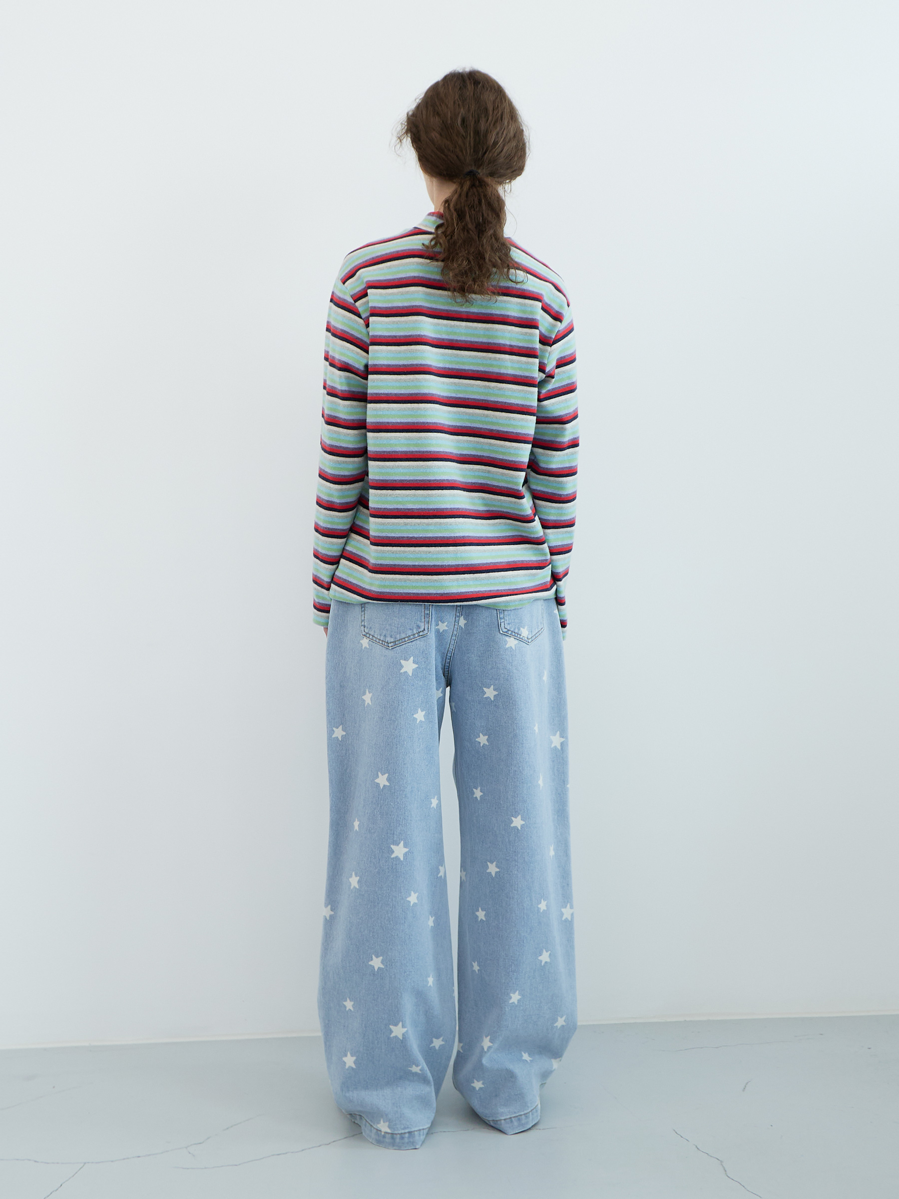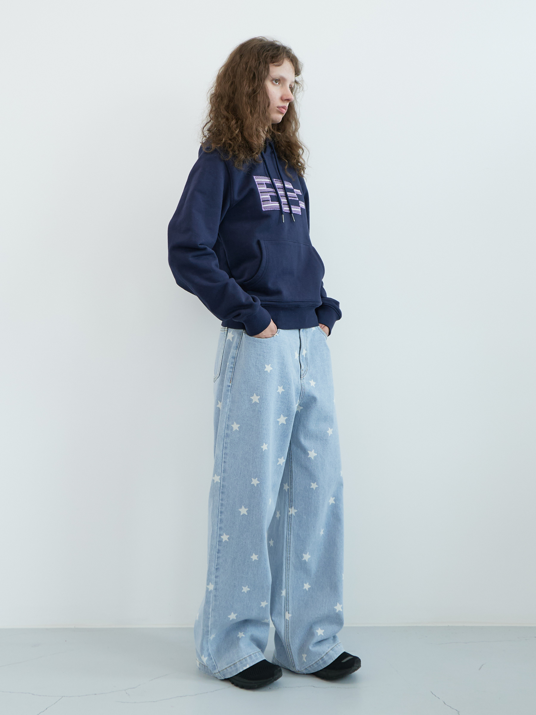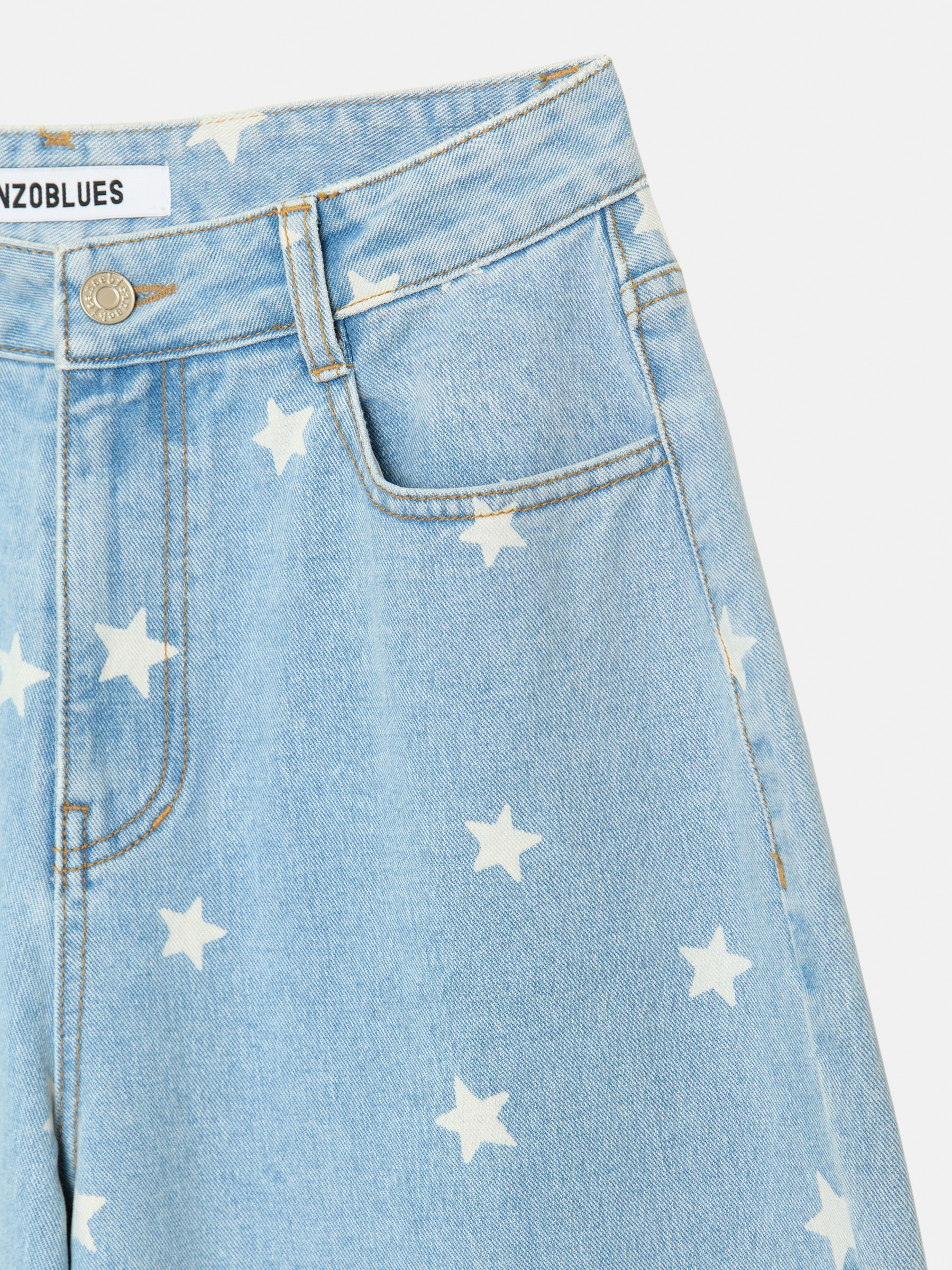 Star Wide Denim Pants (Light Blue)