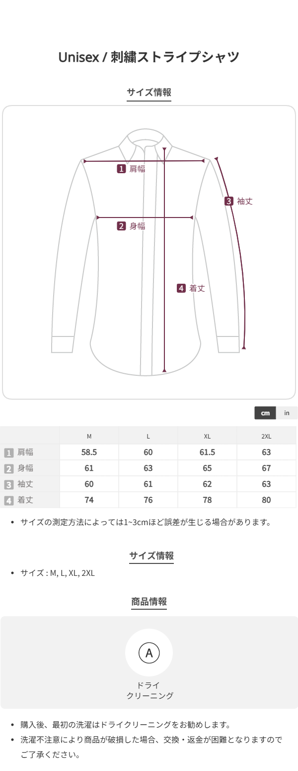 着丈 M:74cm L:76cm XL:78cm XXL:80cm
